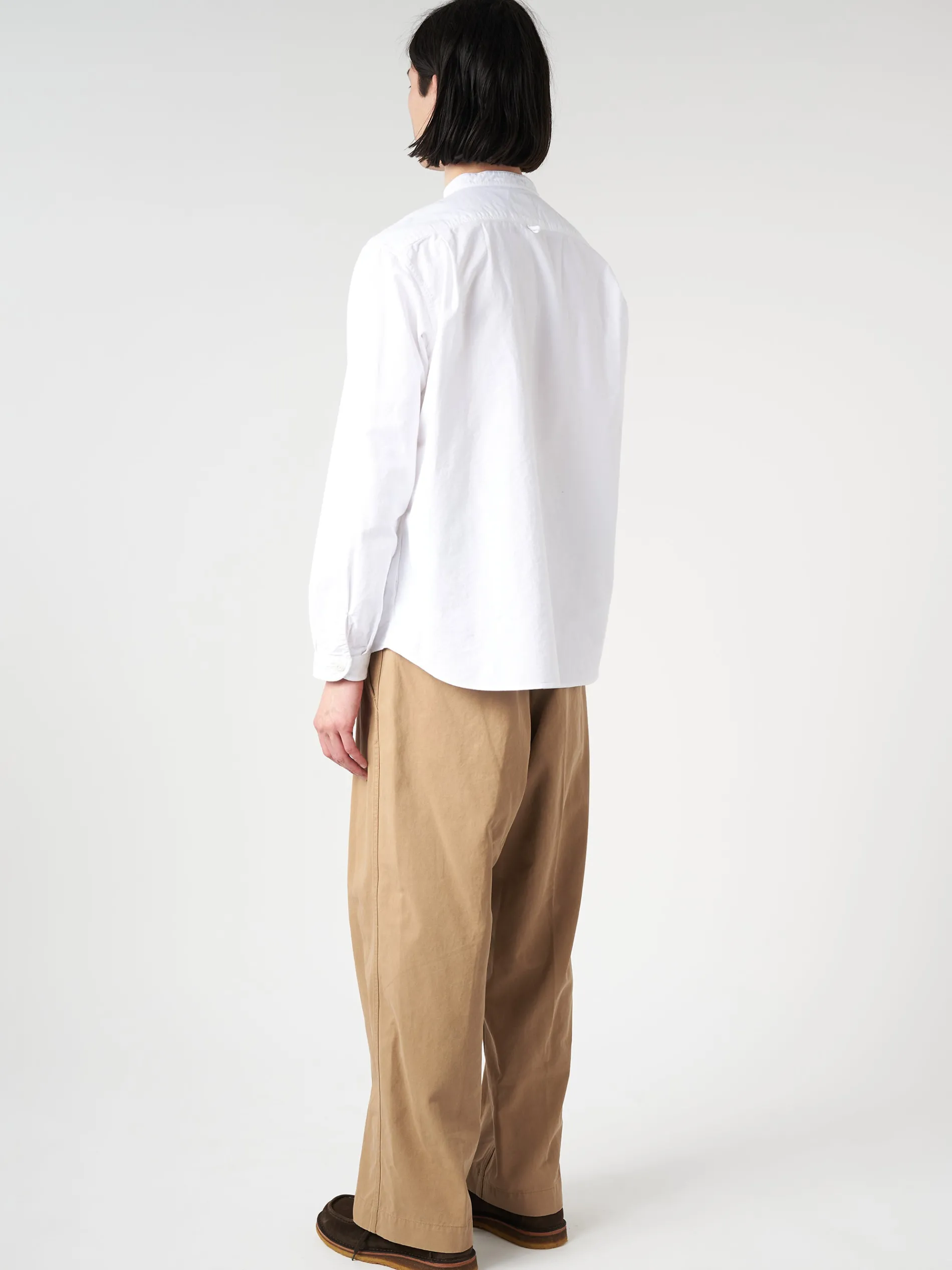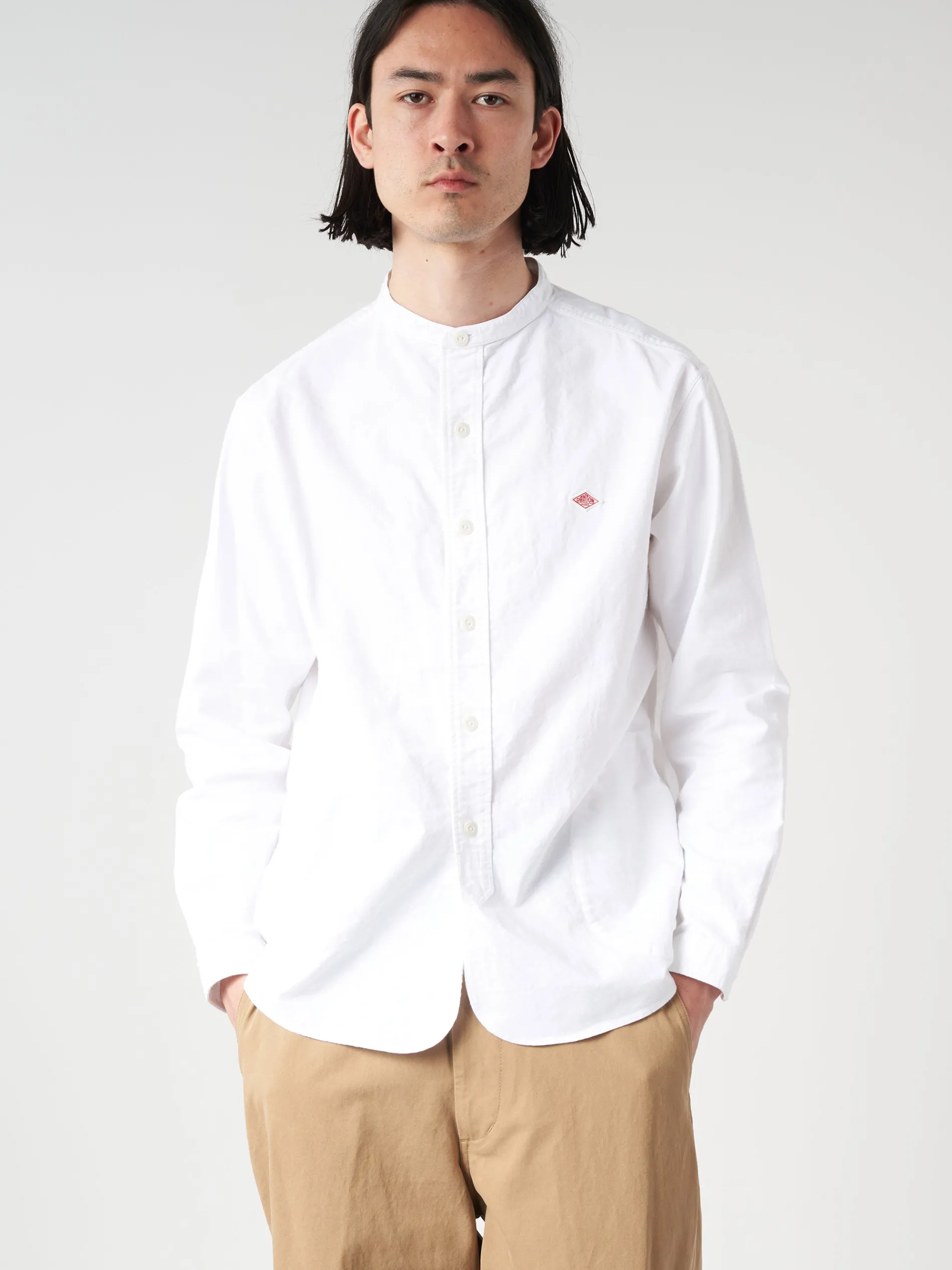Danton band collar shirt cut from cotton oxford. A classic piece with a touch of the brand’s original functionality.