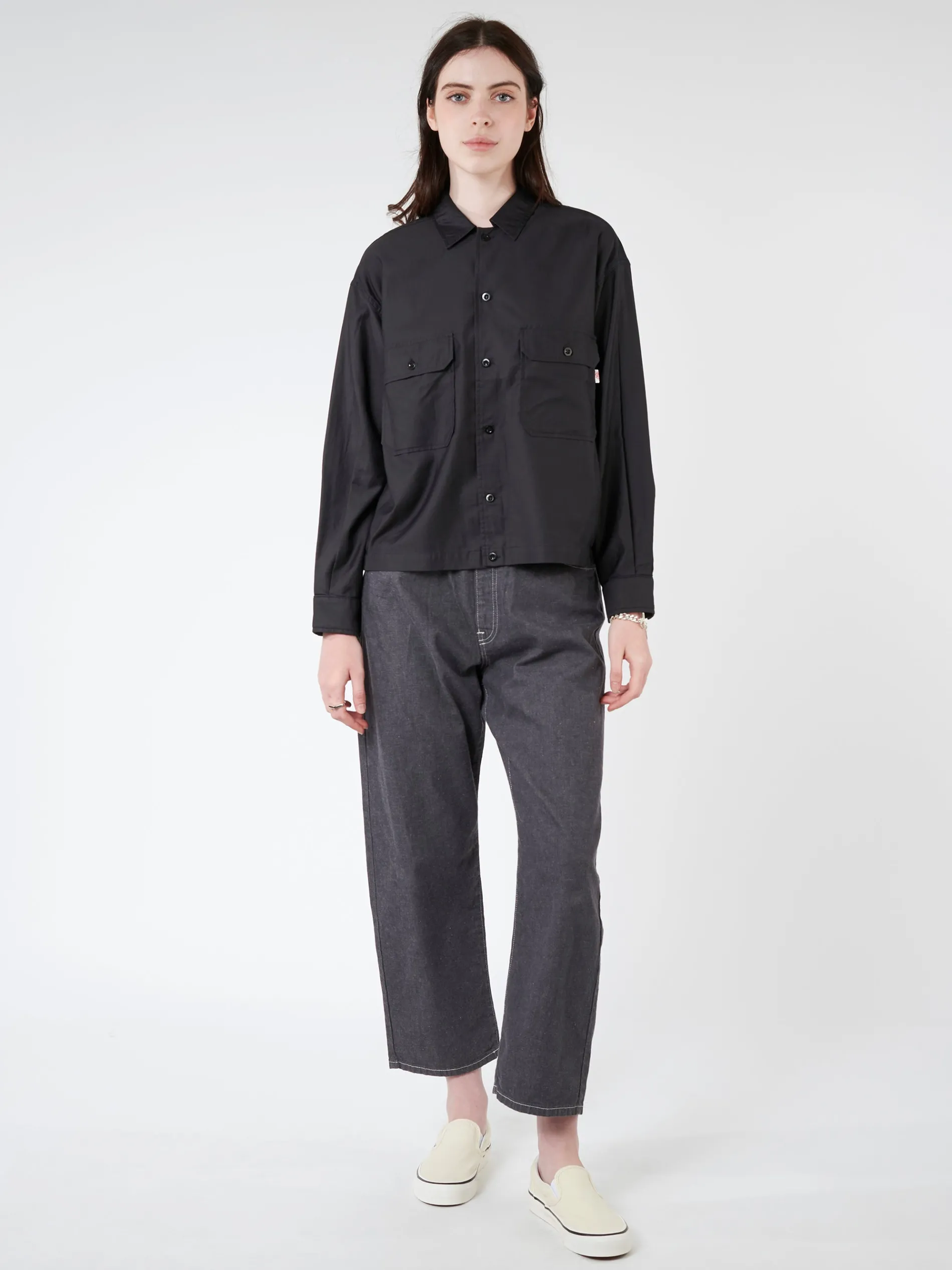 Danton shirt short jacket made from pure cotton with a subtly glossy feel. Finished with a boxy silhouette and a cropped length.