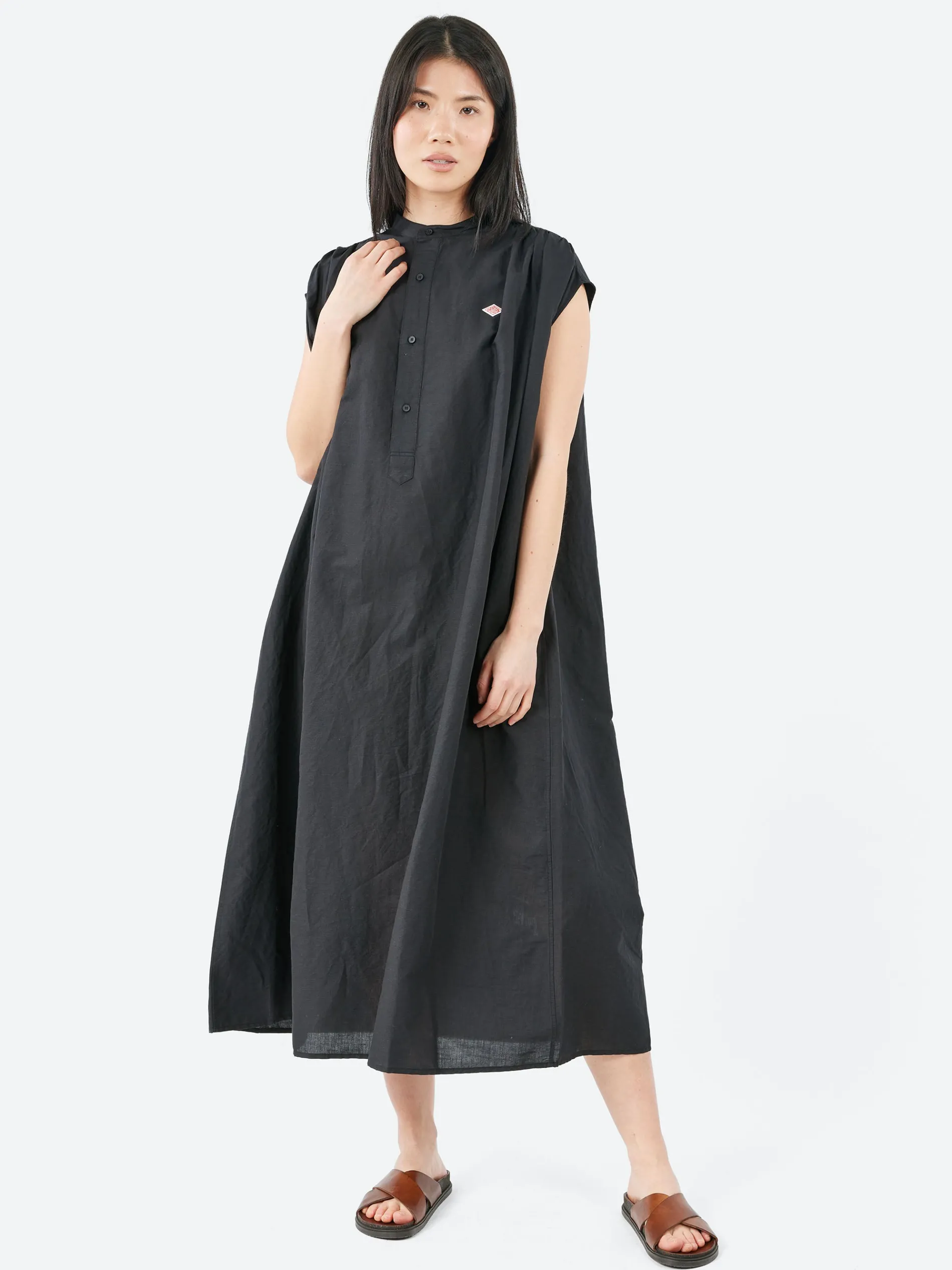 This Danton sleeveless dress is crafted from cool, cotton-linen with a relaxed, A-line silhouette. It features plenty of gathers at the front and back yoke, creating a flattering, flowy effect. Dual side seam pockets provide functionality, making this dress both stylish and practical for everyday wear.