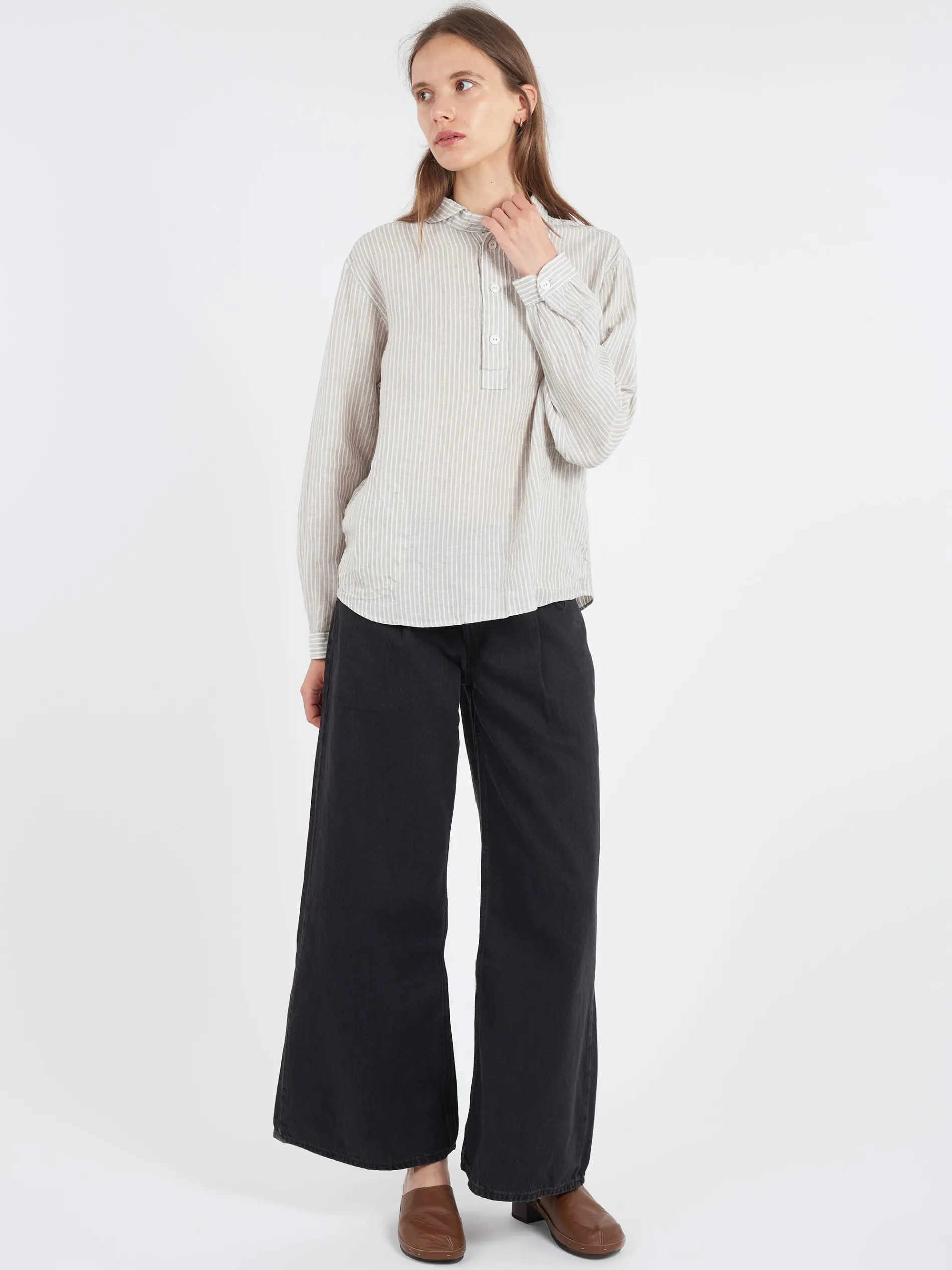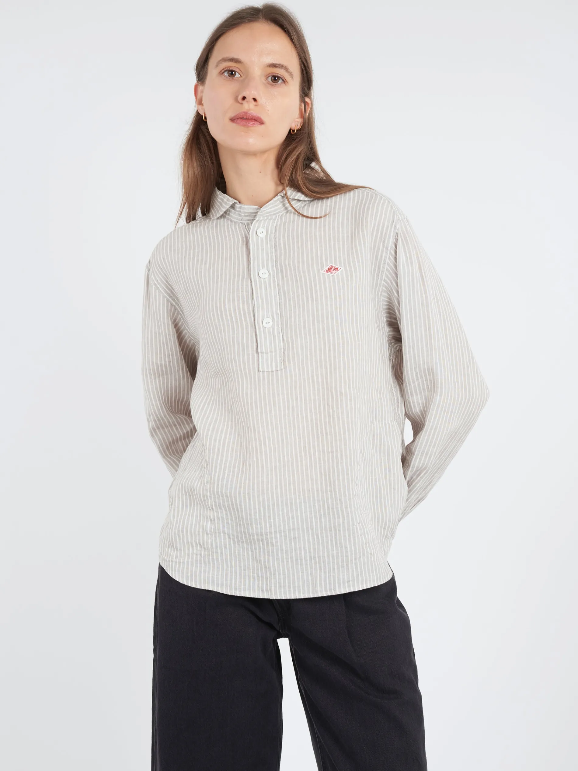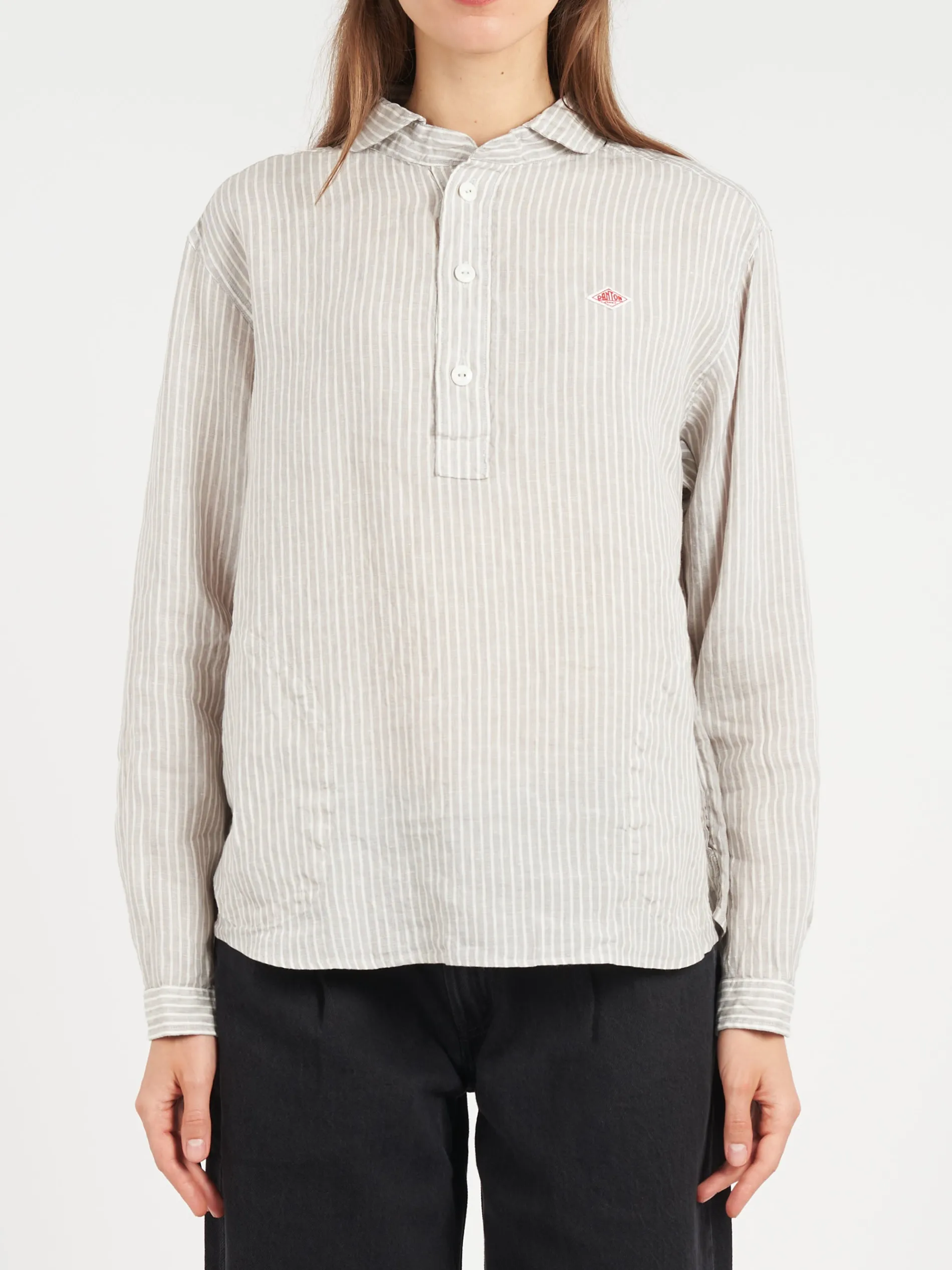 Danton signature round collar made with Japanese fabric woven with high quality linen, which is known as extra-fine quality and texture.