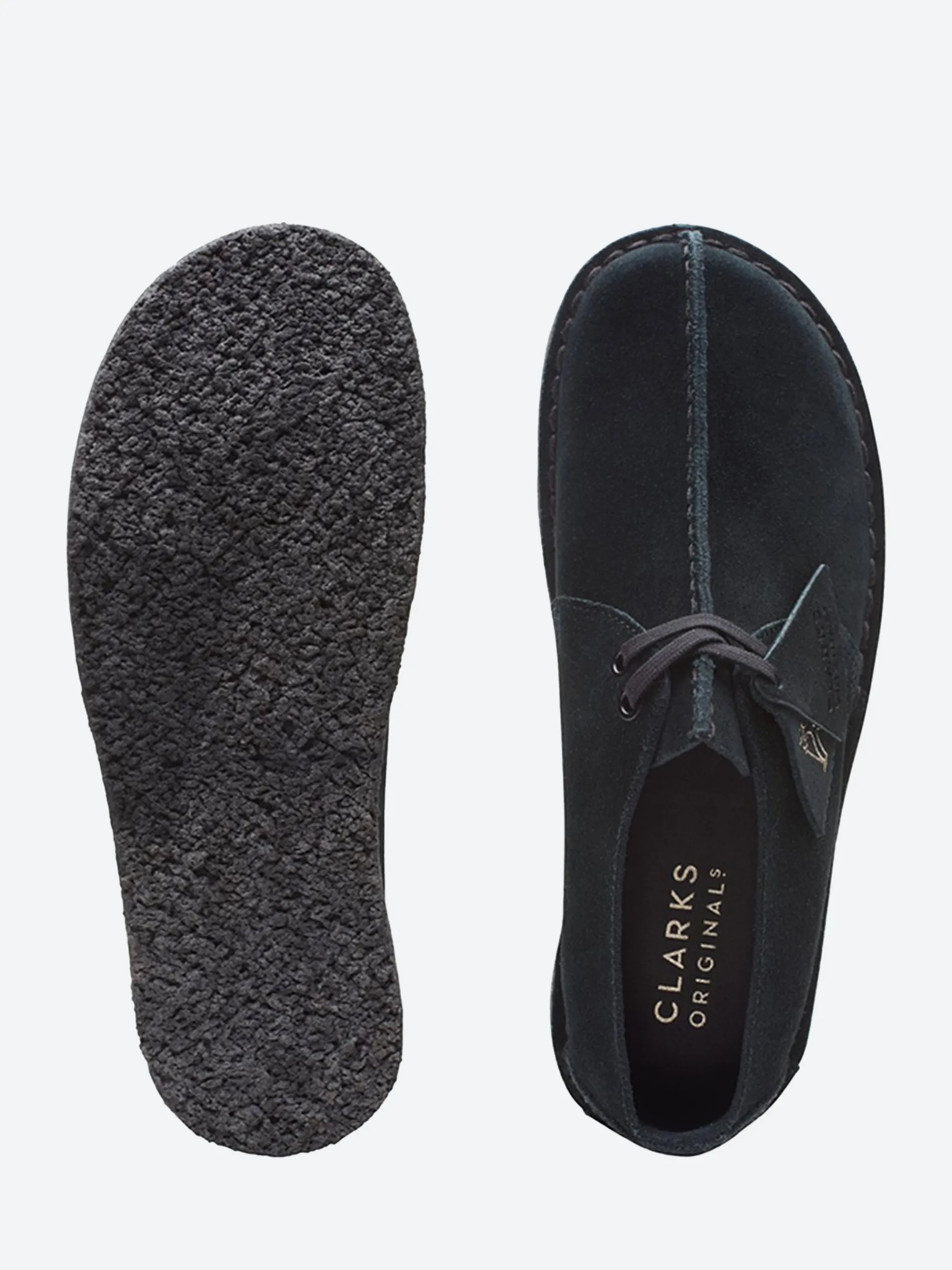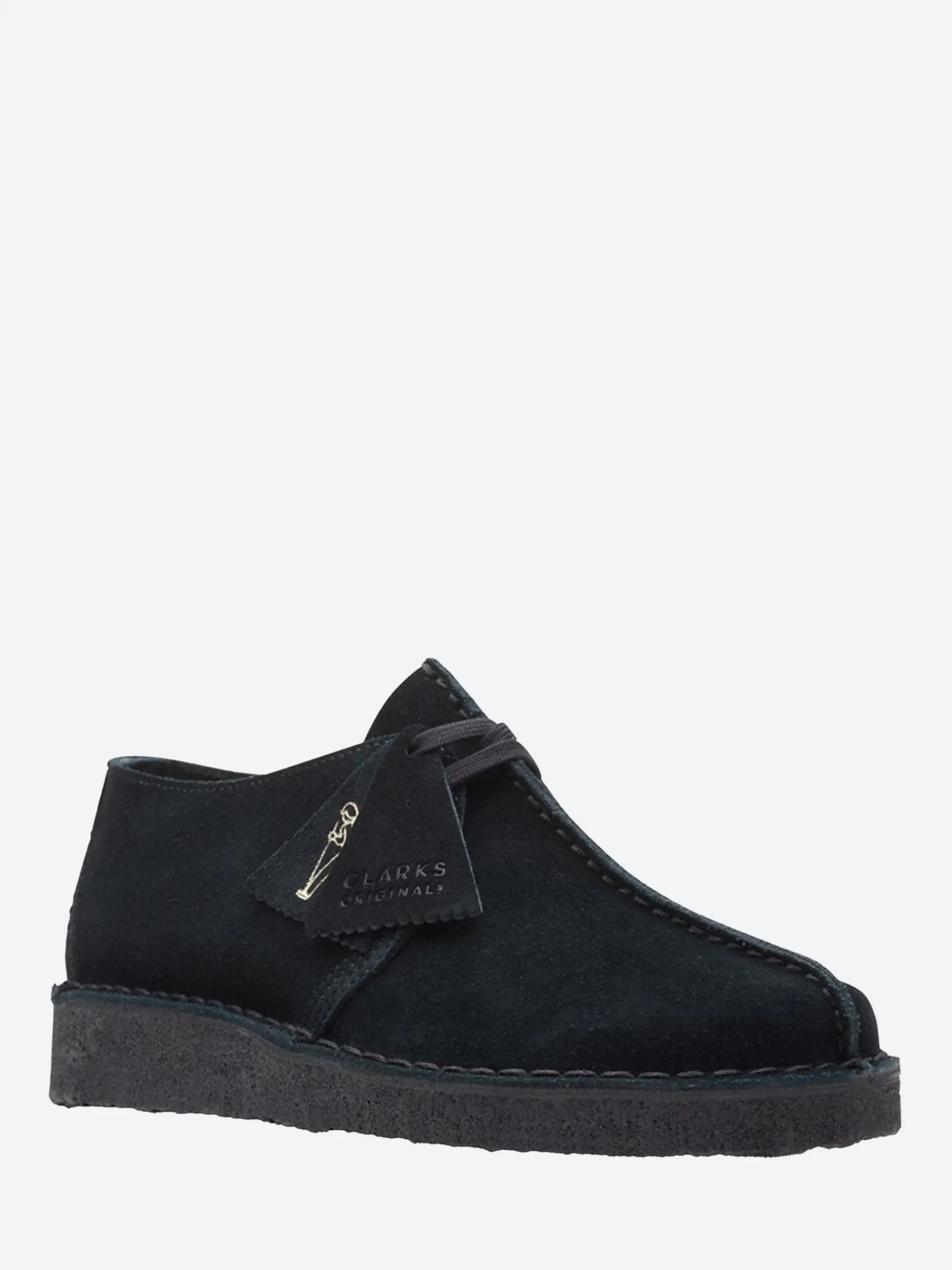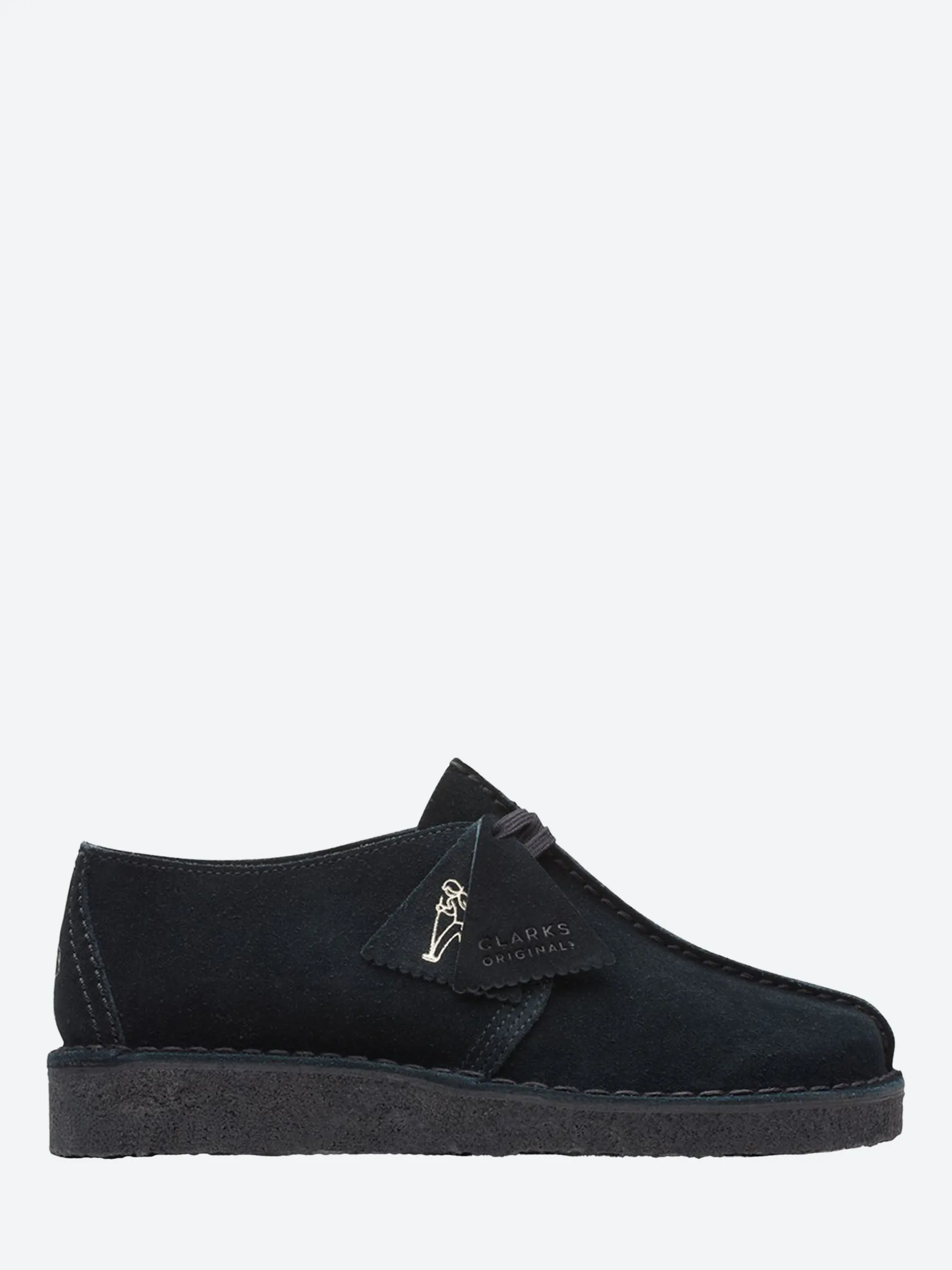 First introduced in the 1970s, this Clarks Originals lace-up is designed on a unique comfort shape last. The black suede upper features a leather heel piece with the Trek man emblem.
