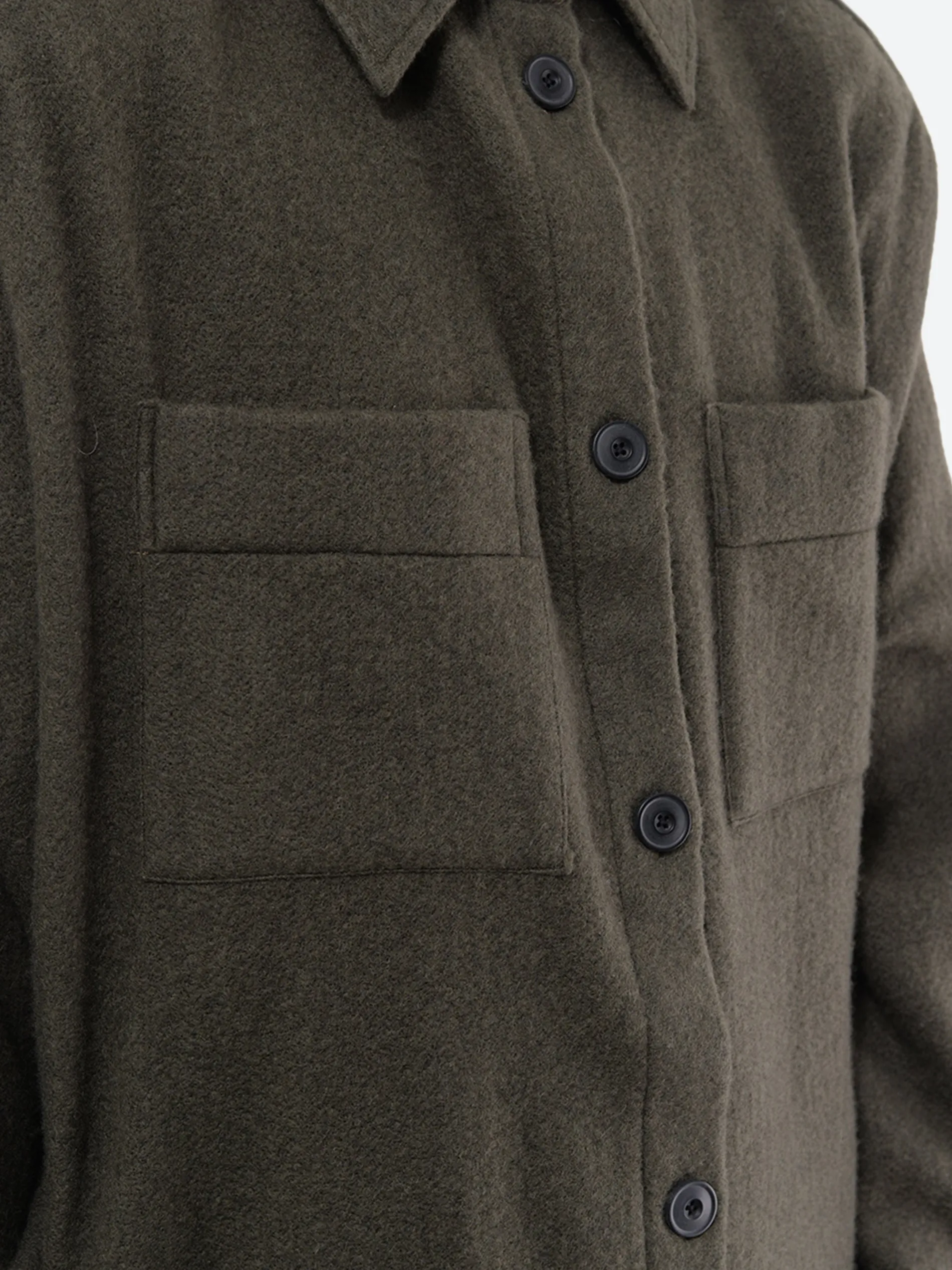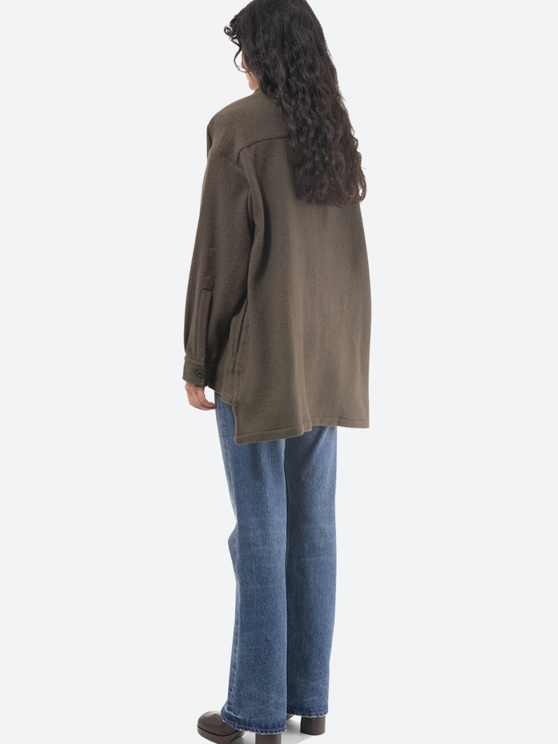 Shirt jacket cut with an oversized fit, slightly longer at the back. Made from a warm, sustainable cashmere and wool-blend fabric.