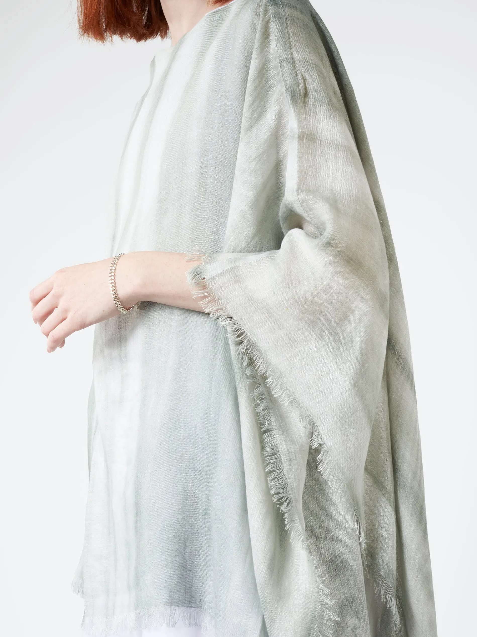 Linen scarf with tie-dyed multicolor print.