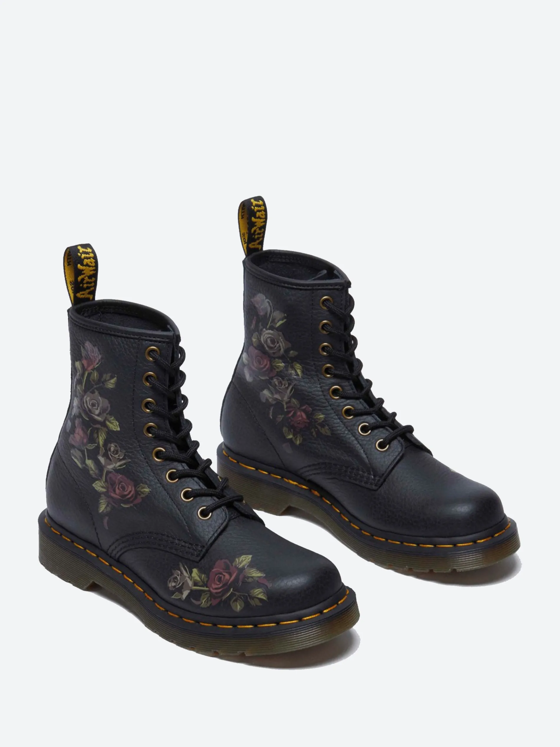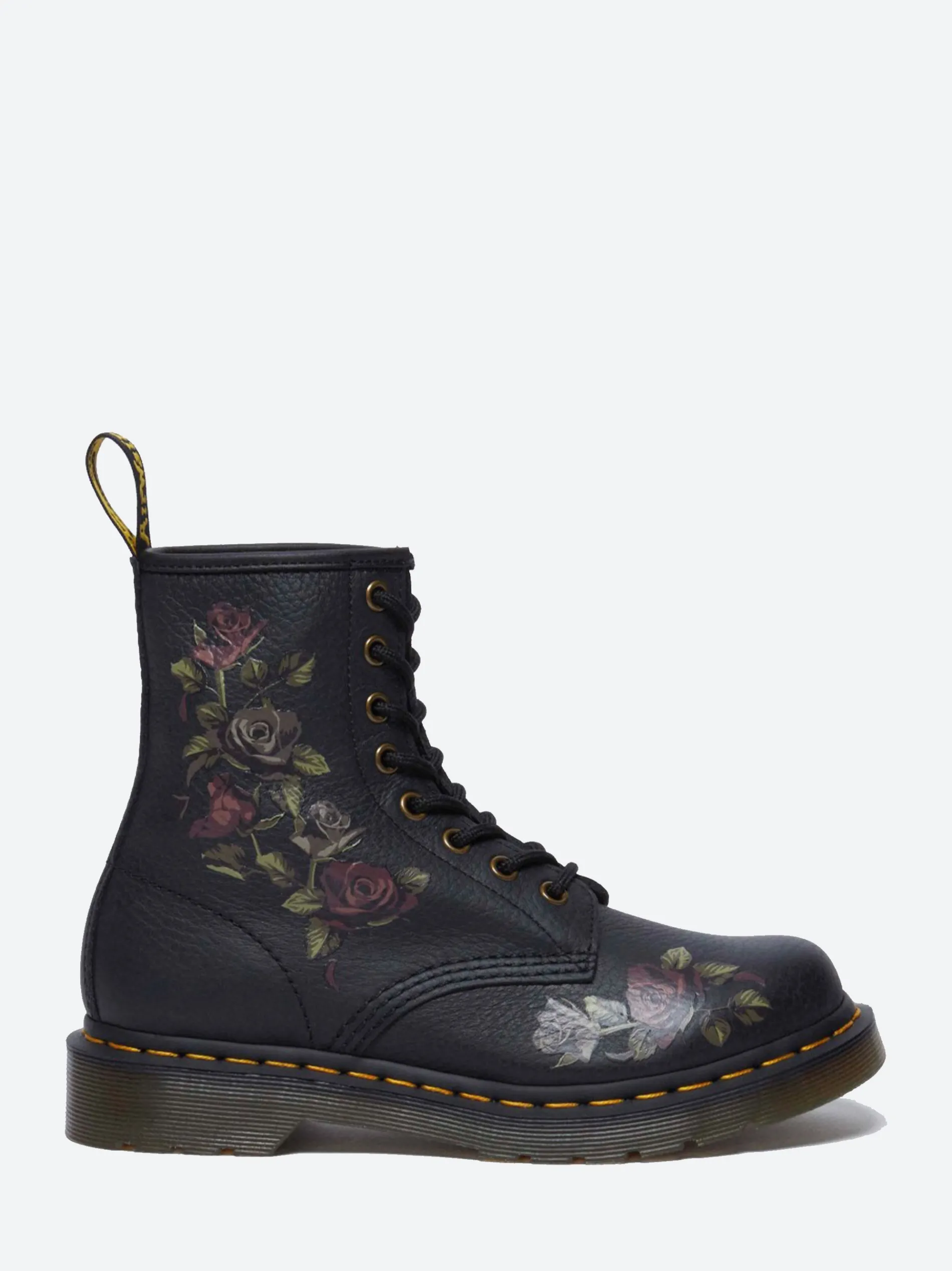Dr. Martens’ latest rework is a collision of decayed roses and textured Classic Tumbled Nappa leather. Kitted out with Indian antique brass hardware to enhance the vintage feel, this 1460 8-eye boot is welted on a DMS sole punched with our unmistakable yellow stitching.