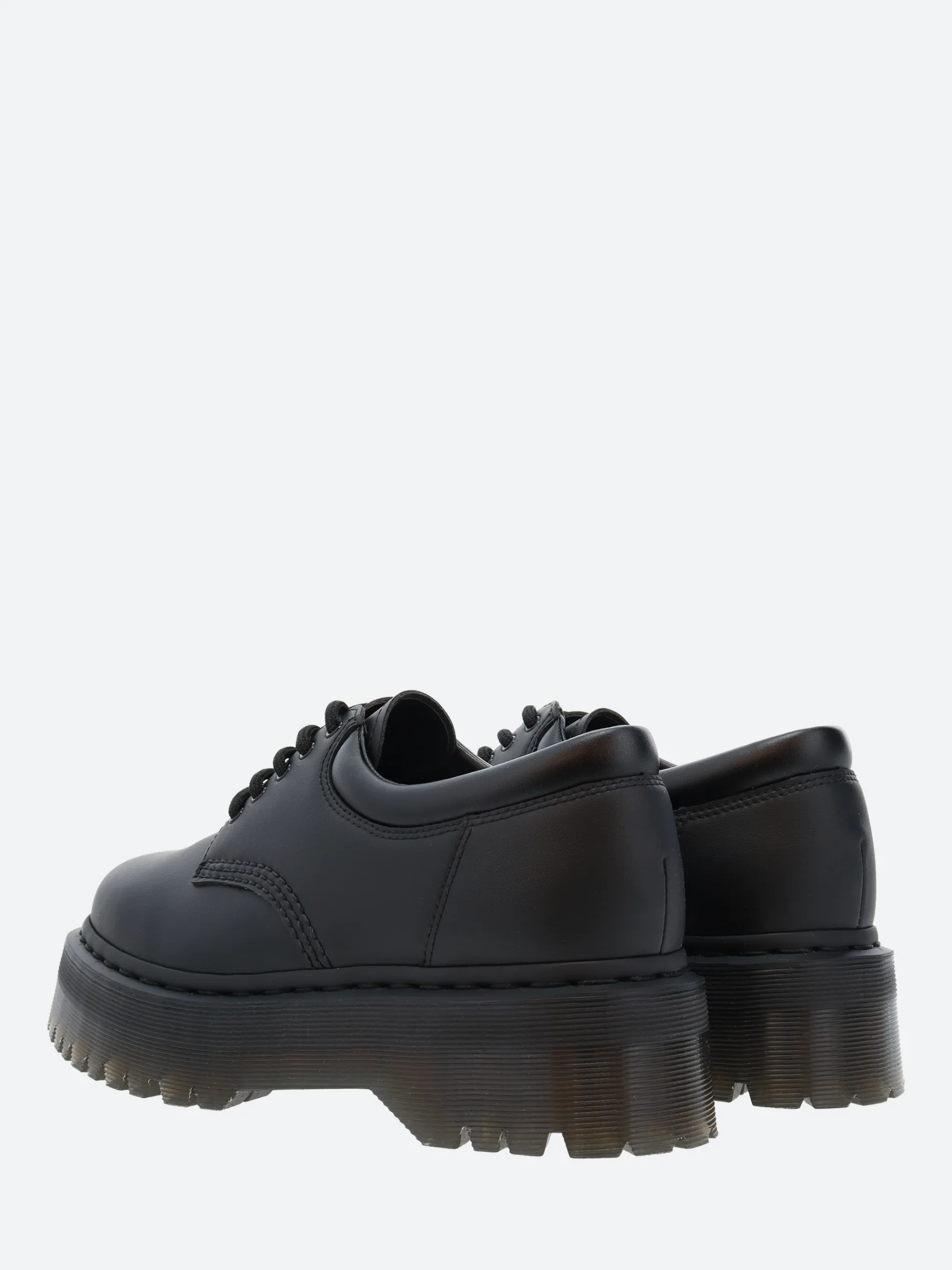 Vegan-friendly silhouette. Unmistakable DM’s attitude. This all-black rework of their 8053 5-eye shoe is built from Felix Rub Off — a supple synthetic material. The shoe is fitted with a comfortable ankle collar and stacked on DM’s formidable Quad sole, secured with monochromatic black welt stitching.