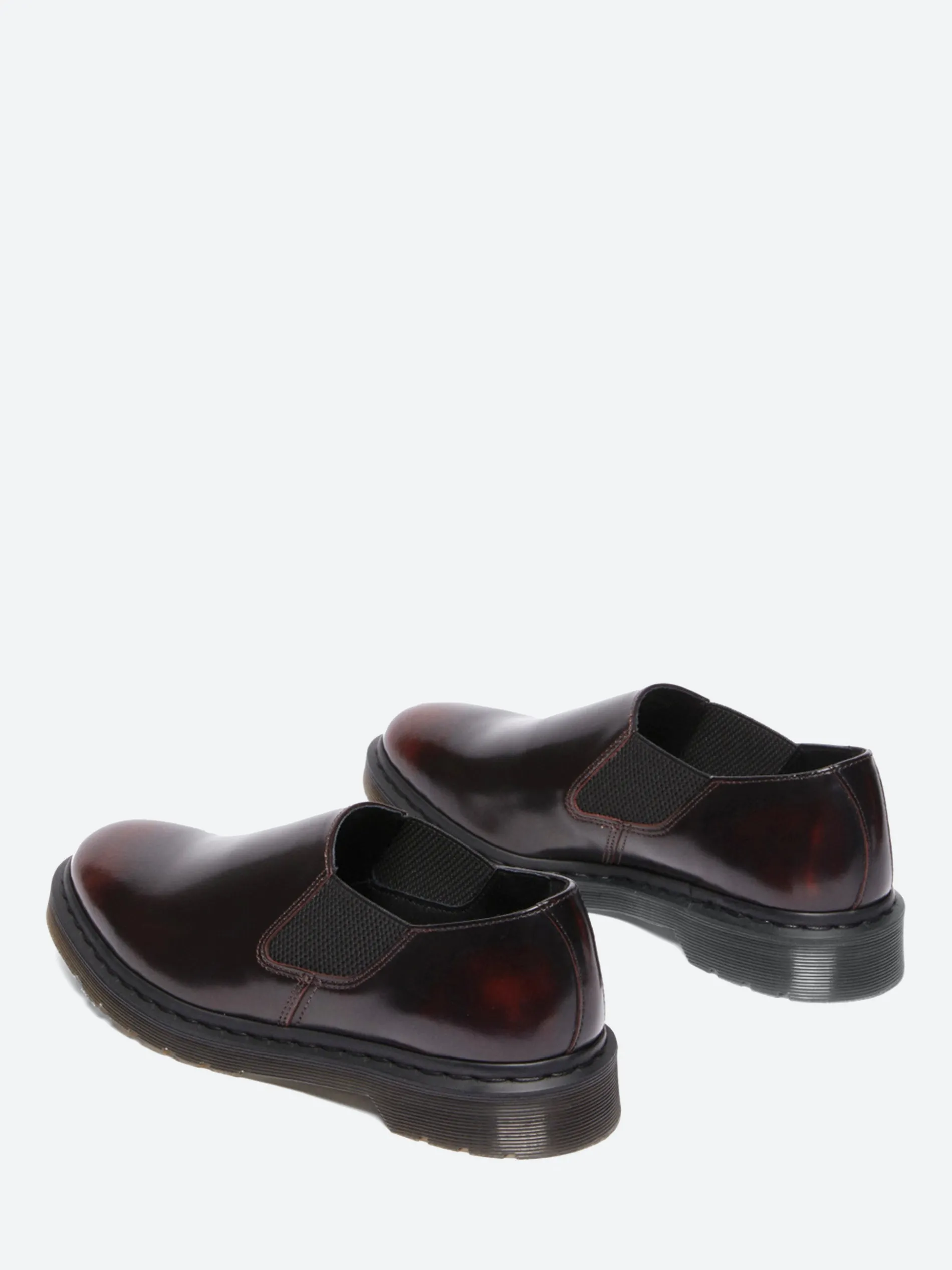 The Louis shoe is a slimline silhouette built on a tapered last to create a sharper profile. Fitted with elasticated gussets to make slipping on and off simple. This version of the shoe is made from two-tone cherry red Arcadia leather, which rubs off over time to reveal a contrasting base color.