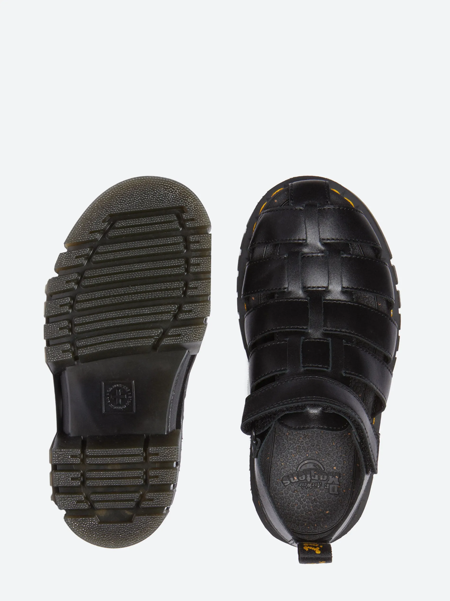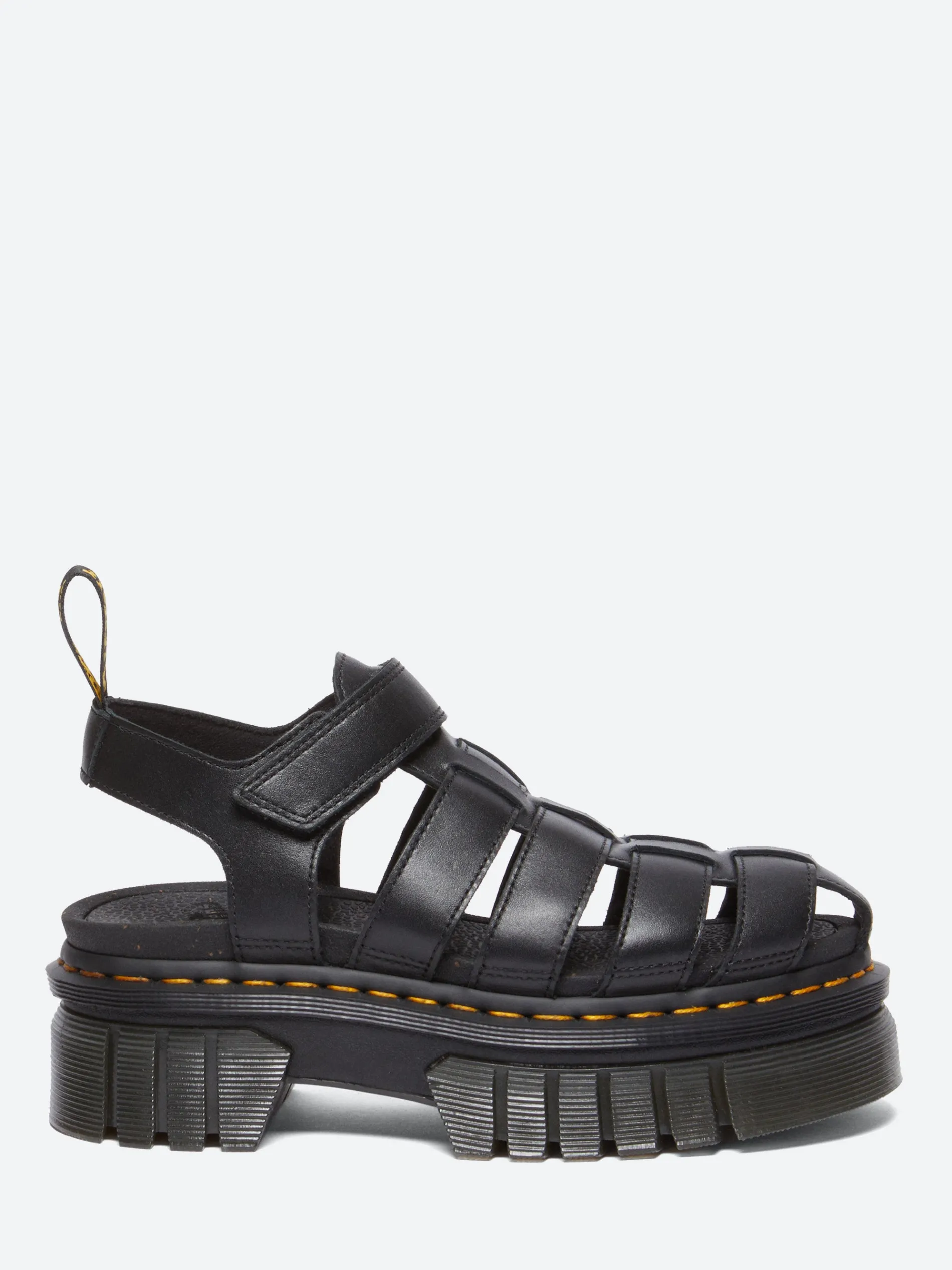 The Dr. Martens Ricki fisherman sandal is set on a two-part Quad Neoteric platform with a lightweight construction, deep cleats and an exaggerated side profile.