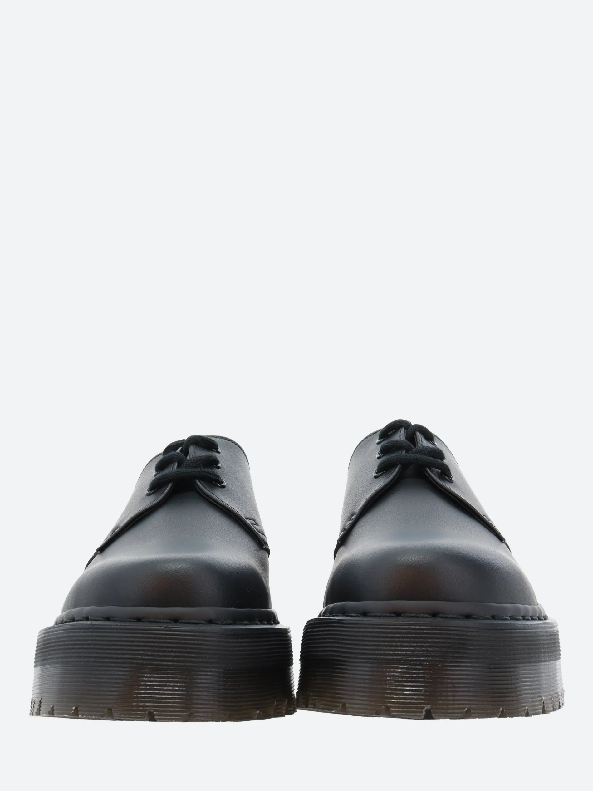 The new Vegan 1461 Quad Mono is a towering version of Docs classic 3-eye shoe, stacked on an all-black Quad Retro sole for a heel-to-toe monochrome statement.