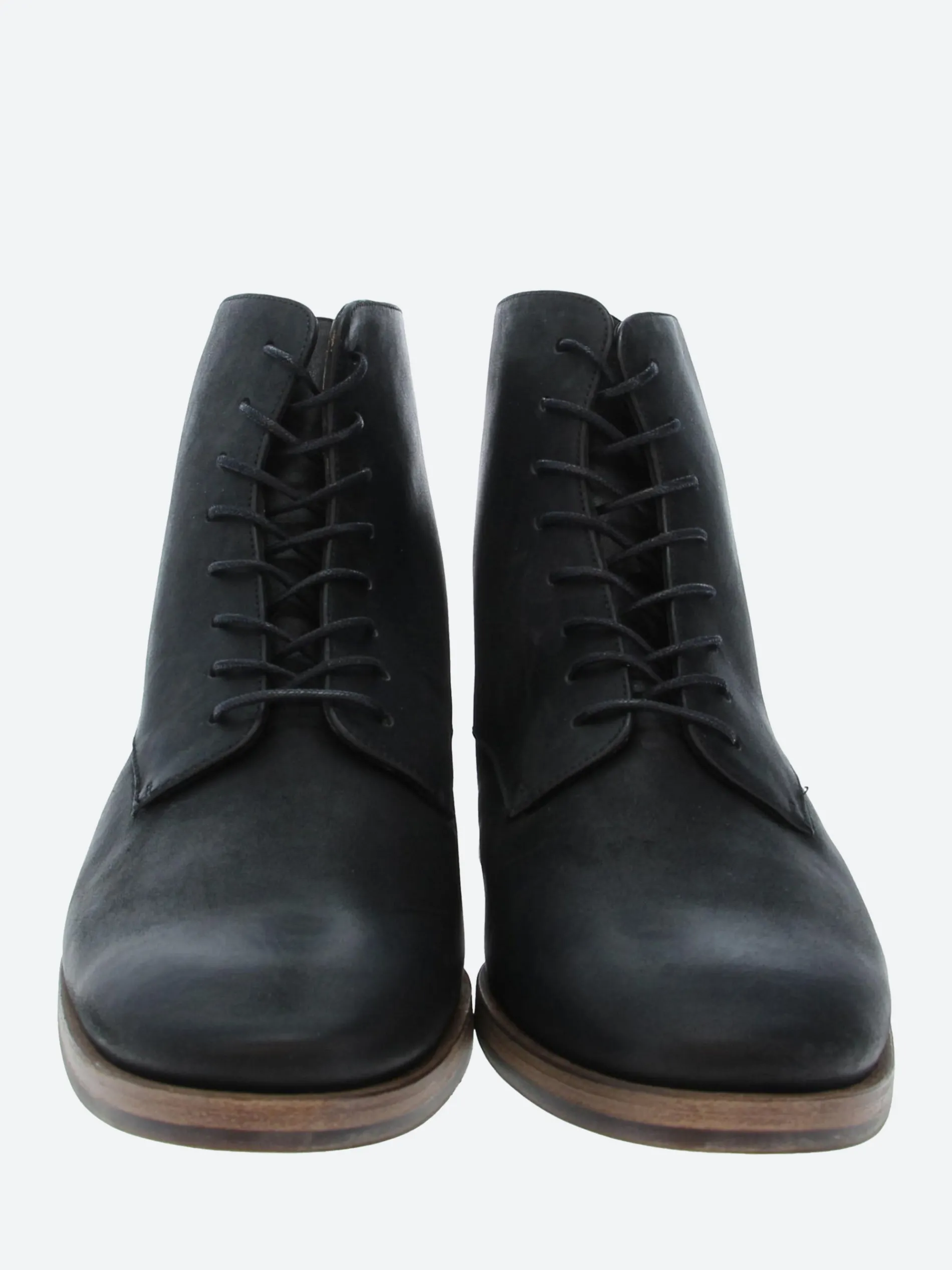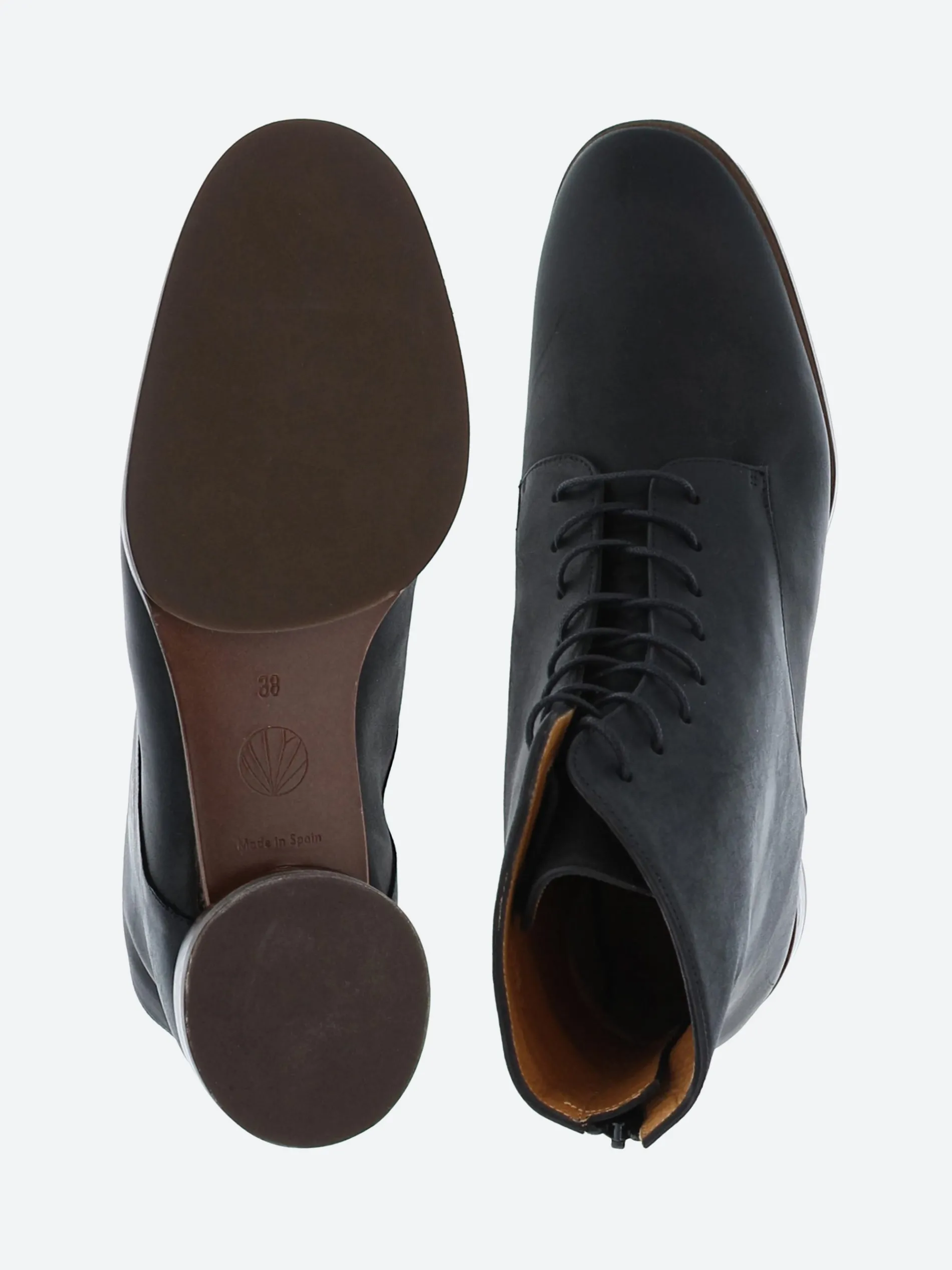 Coclico adds modern details to a classic style. The Eclair lace-up boot has a distinctive flat round heel and patch sole.