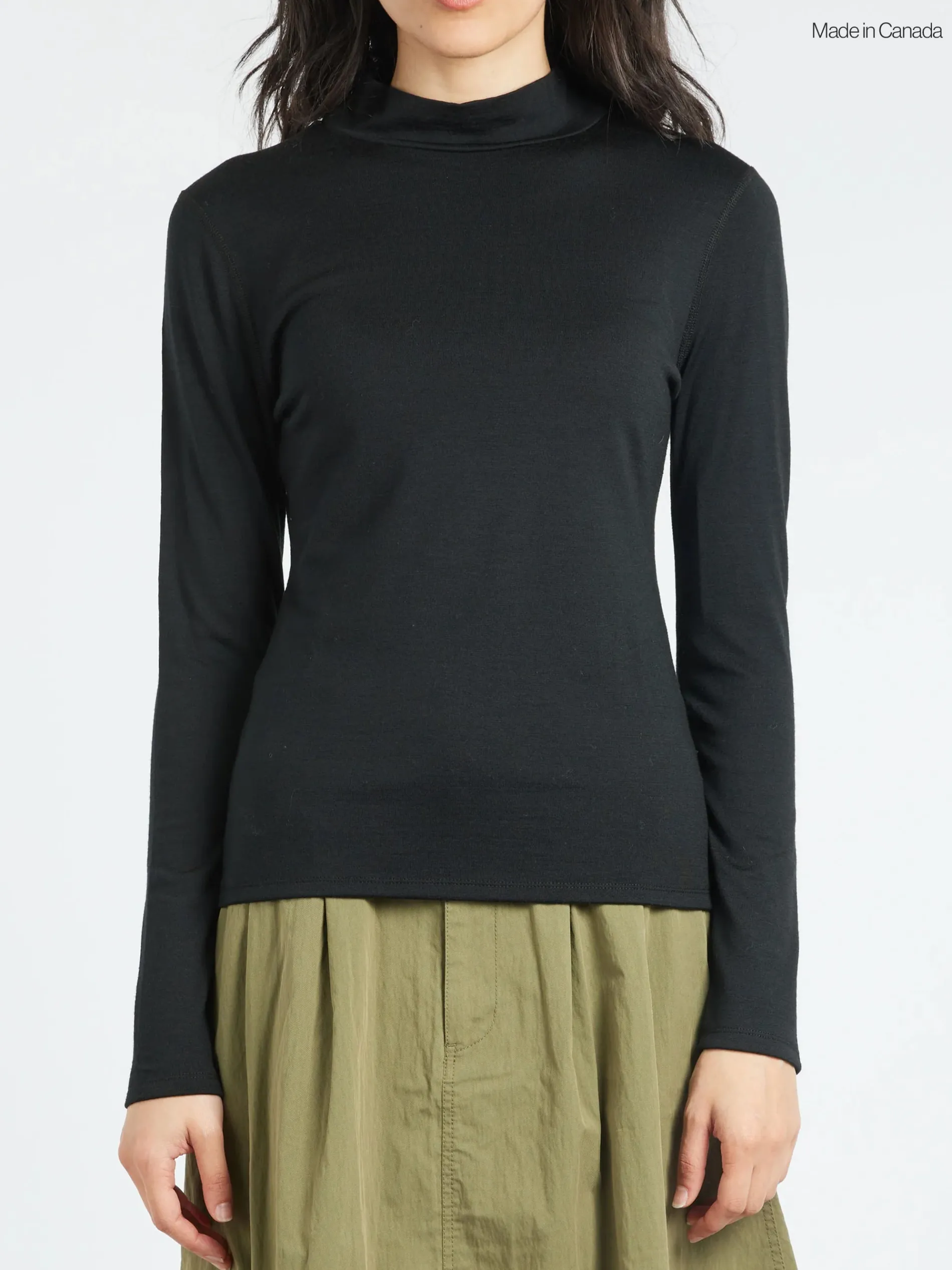 The 195 Merino Mockneck is a closet staple — double lined and versatile for all year-round. The close to skin fitted design and soft texture of merino jersey accentuates the female form. This everyday essential is a classic long sleeve with the technical functionality of merino.