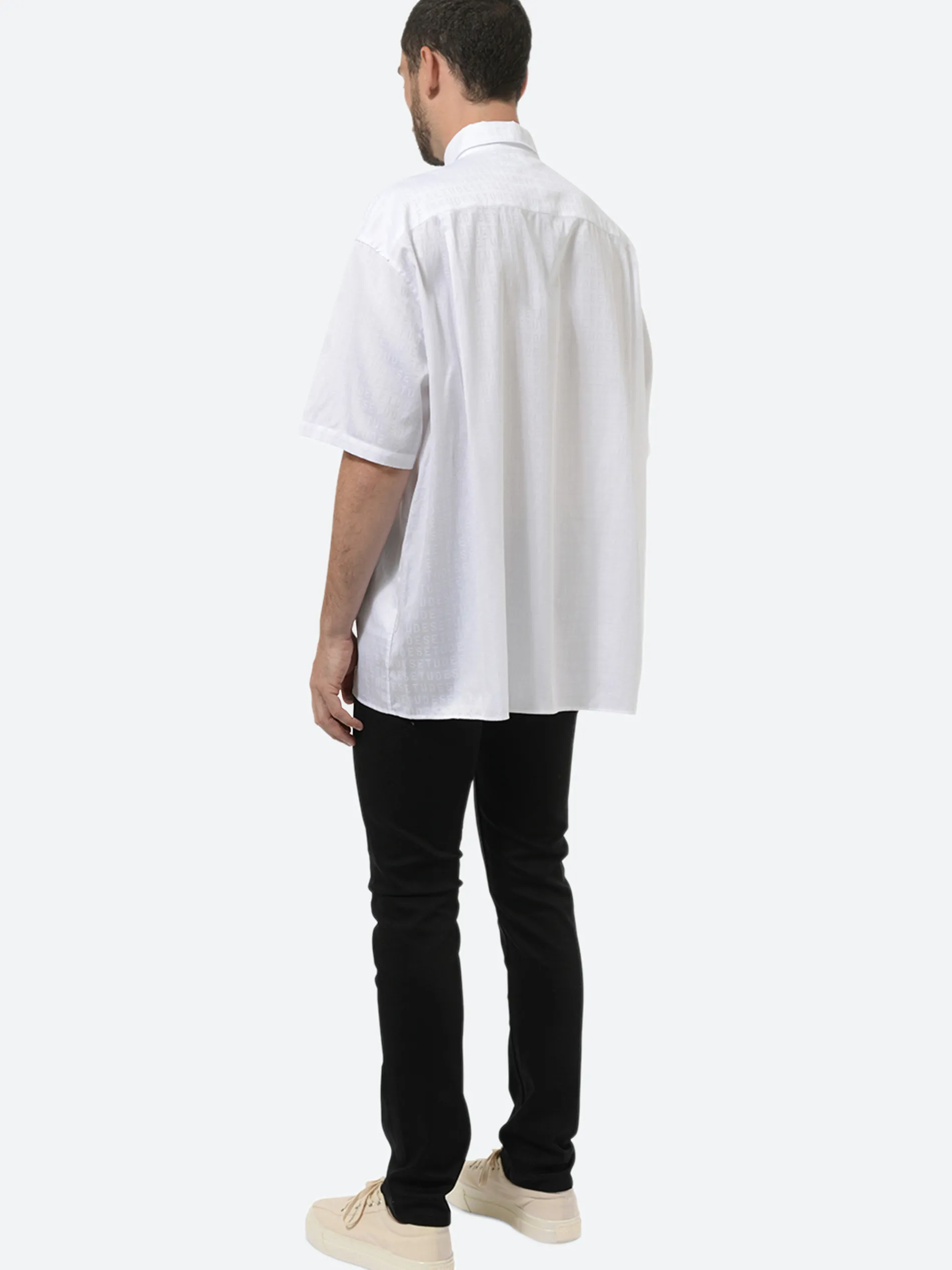 The Illusion SS Monogram Stencil White is an oversized cotton shirt in white.