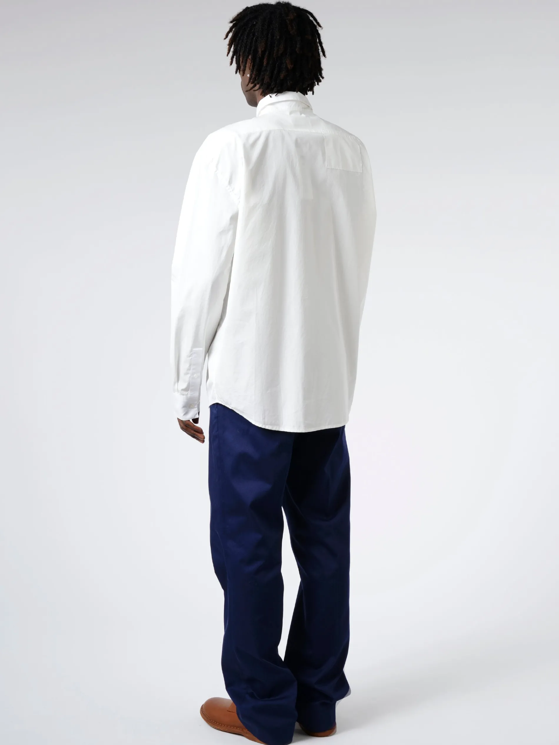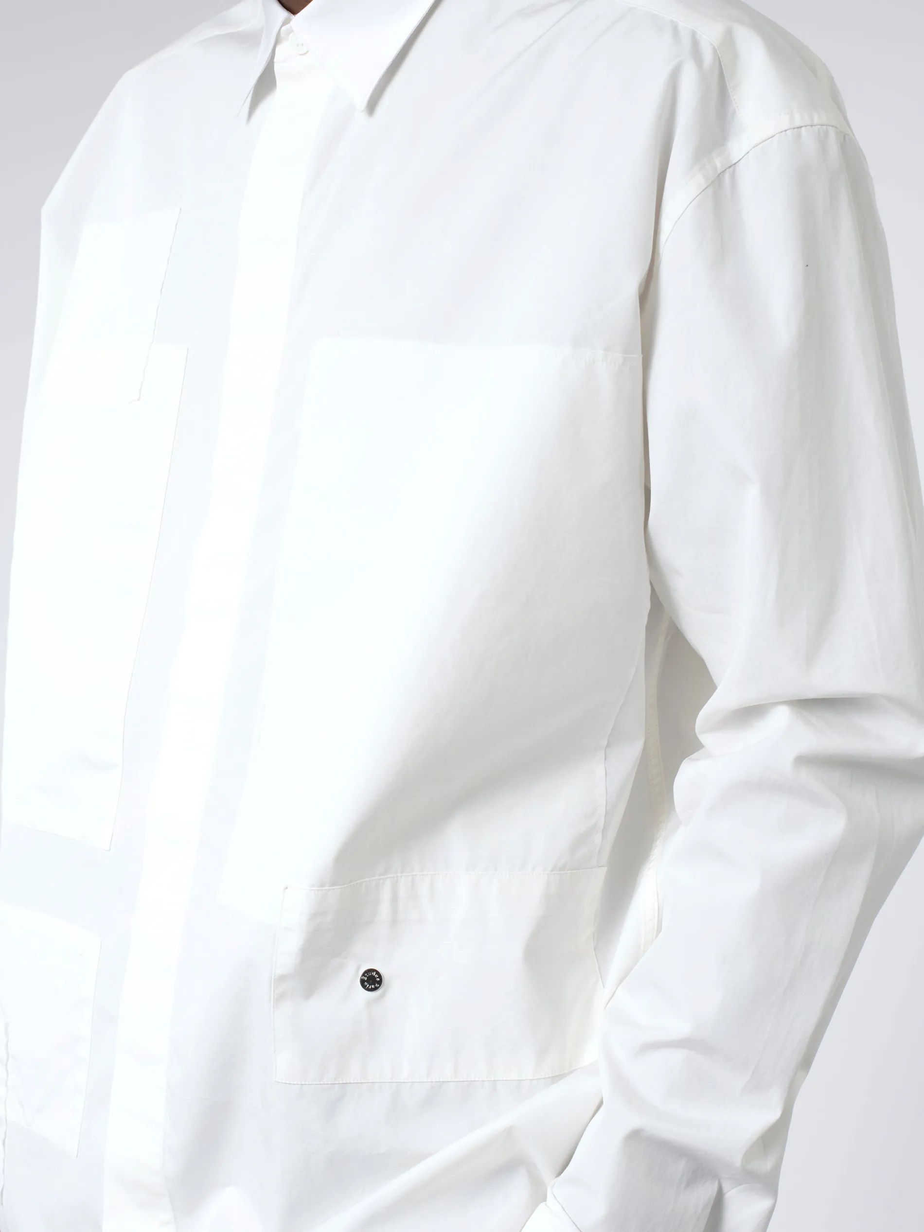 The Paysage is a long sleeve oversized cotton shirt. This shirt is composed of a hidden button placket with button closure, sewn-on patches and an Études rivet on the front.