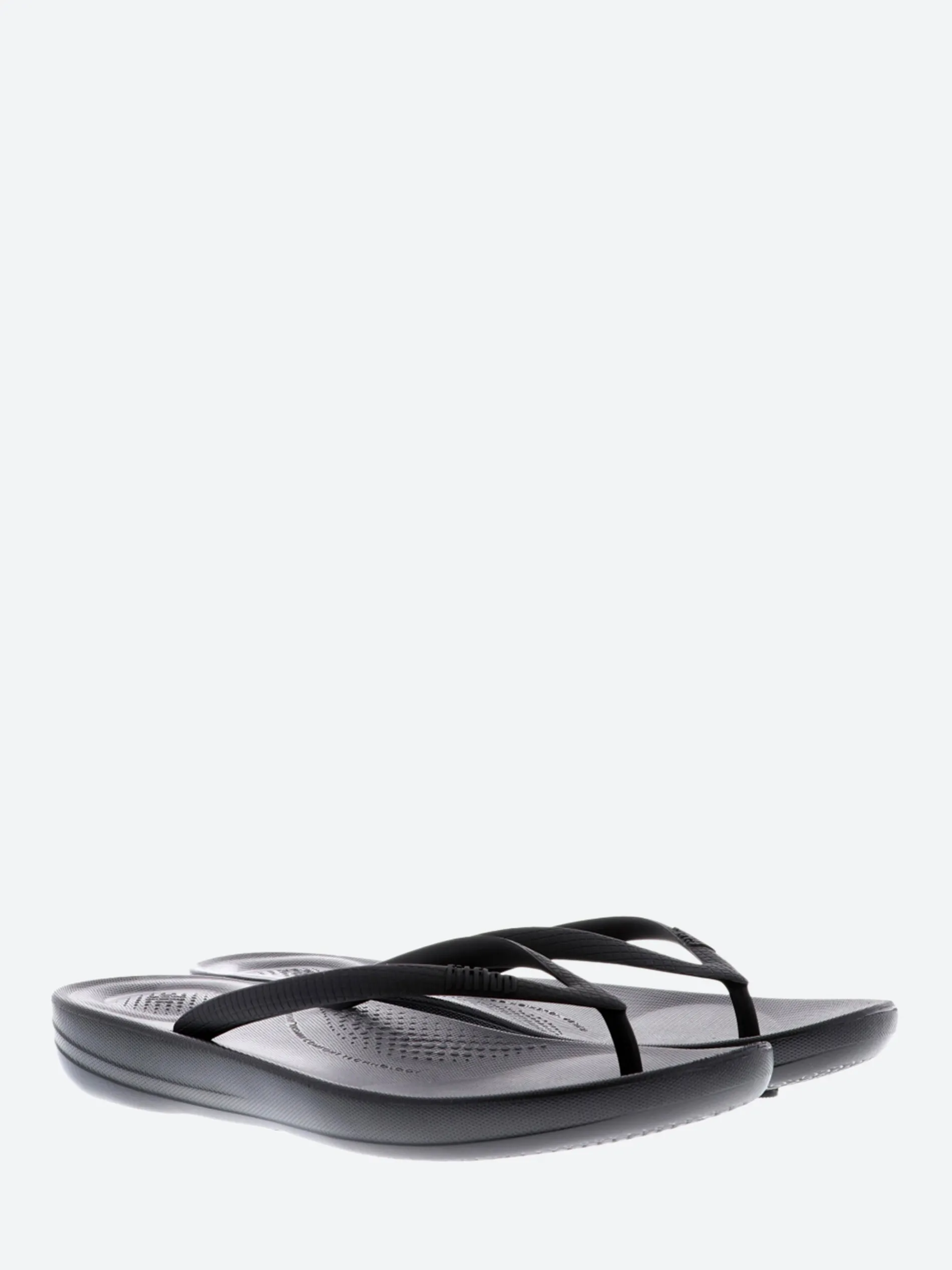 From the top, they look like your typical flip flops. Underneath, they’re engineered with FitFlop’s iQushion air-foam cushioning, with impact pillows at high pressure areas, for non-stop comfort.