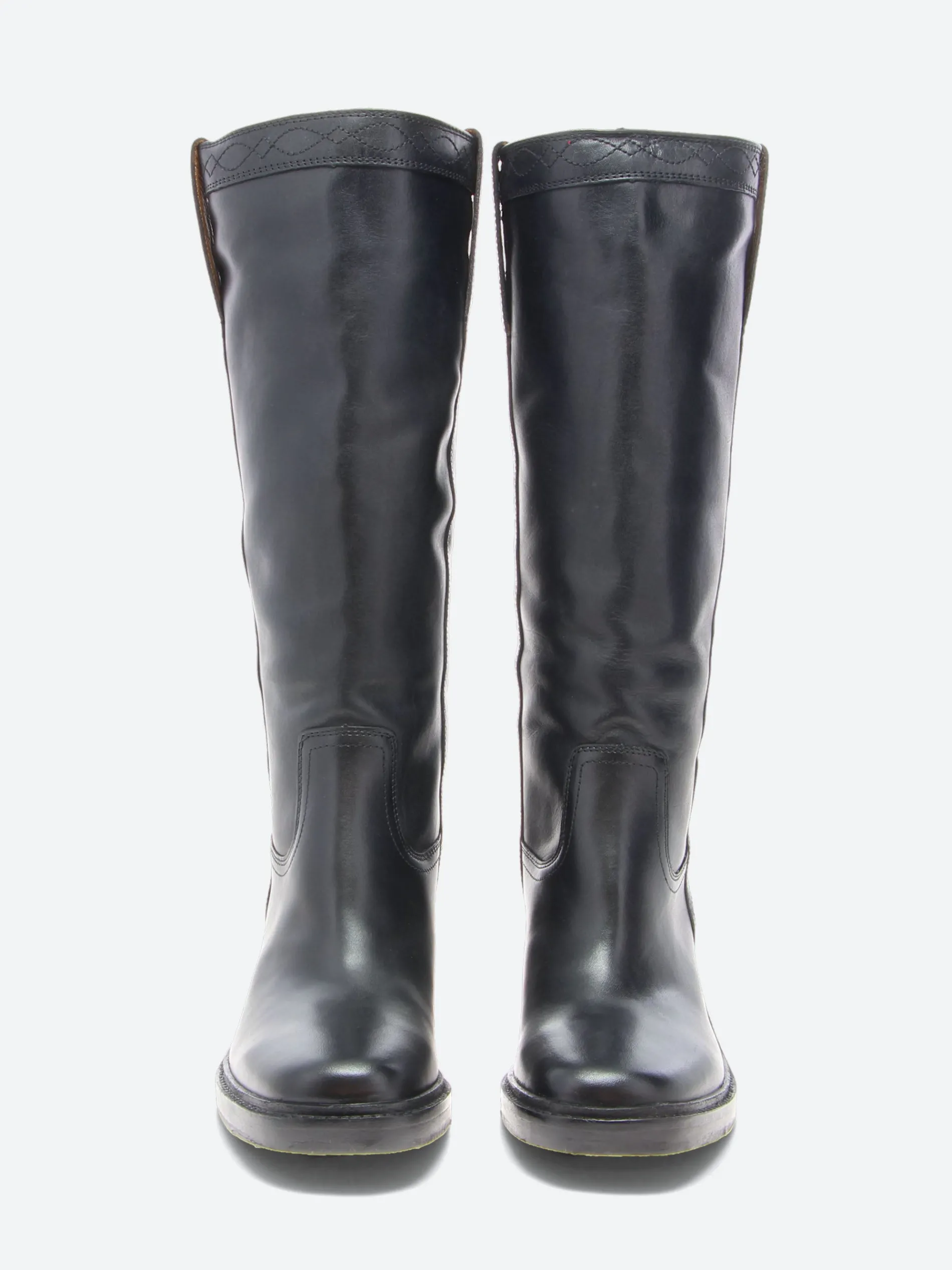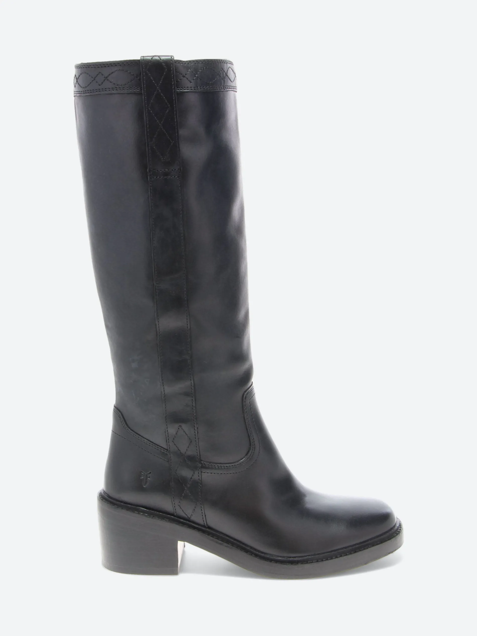 Intricate woodstock stitching detail gives these riding boots an artisanal flair that comes to life on Frye signature leathers. The Kate Pull On has a softer silhouette with its rounded toe and paired with a cushioned footbed and rubber outsole, the versatile 2-inch block heel is easy to walk in, while providing a flattering lift to any look. Pair with above-the-knee skirts or with straight-leg denim for year-round wear.