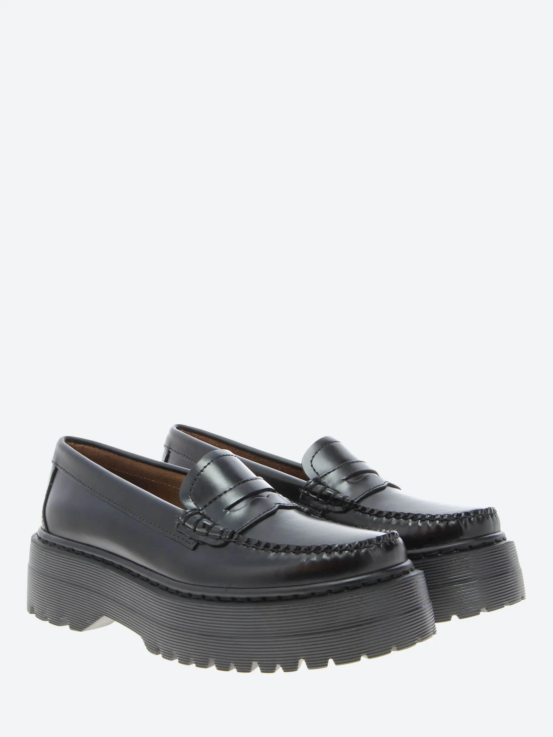 The G.H. Bass Weejun moc toe penny loafer has been given a modern update with a bold, chunky lugged sole. This revamped version blends the classic loafer style with a more rugged, contemporary twist, making it perfect for those who want a mix of traditional and trendy in their footwear.