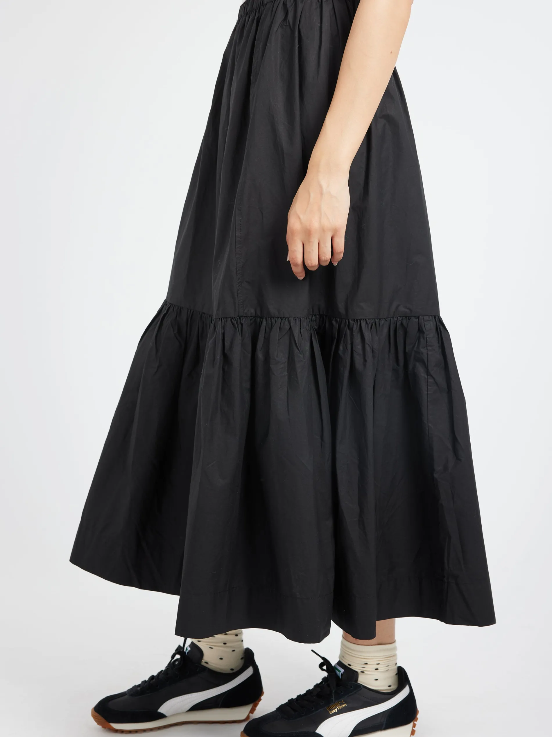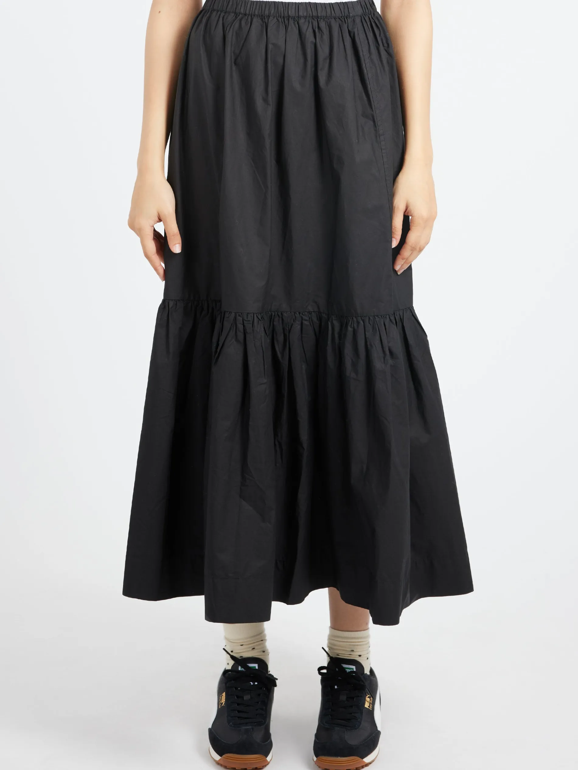This cotton poplin Maxi Flounce Skirt is made from organic cotton. The skirt is designed for a relaxed fit and features an elastic waist and flounce hem.
