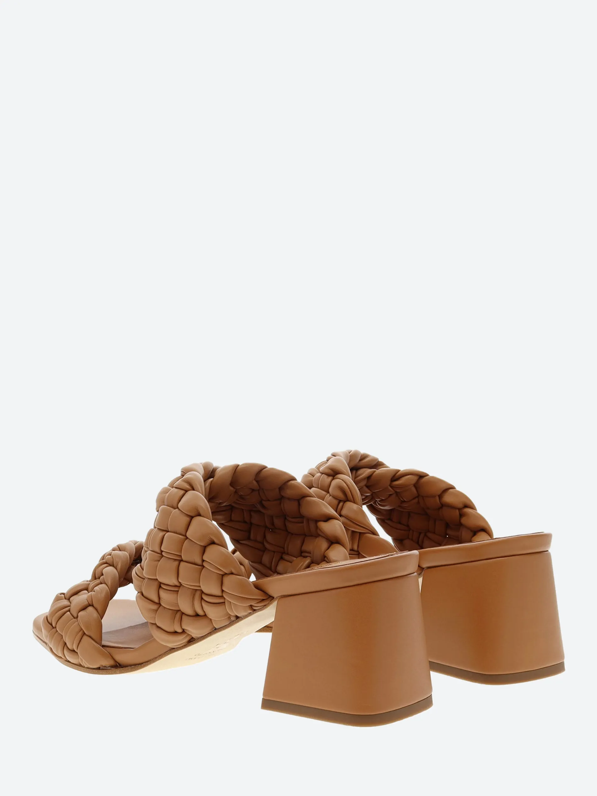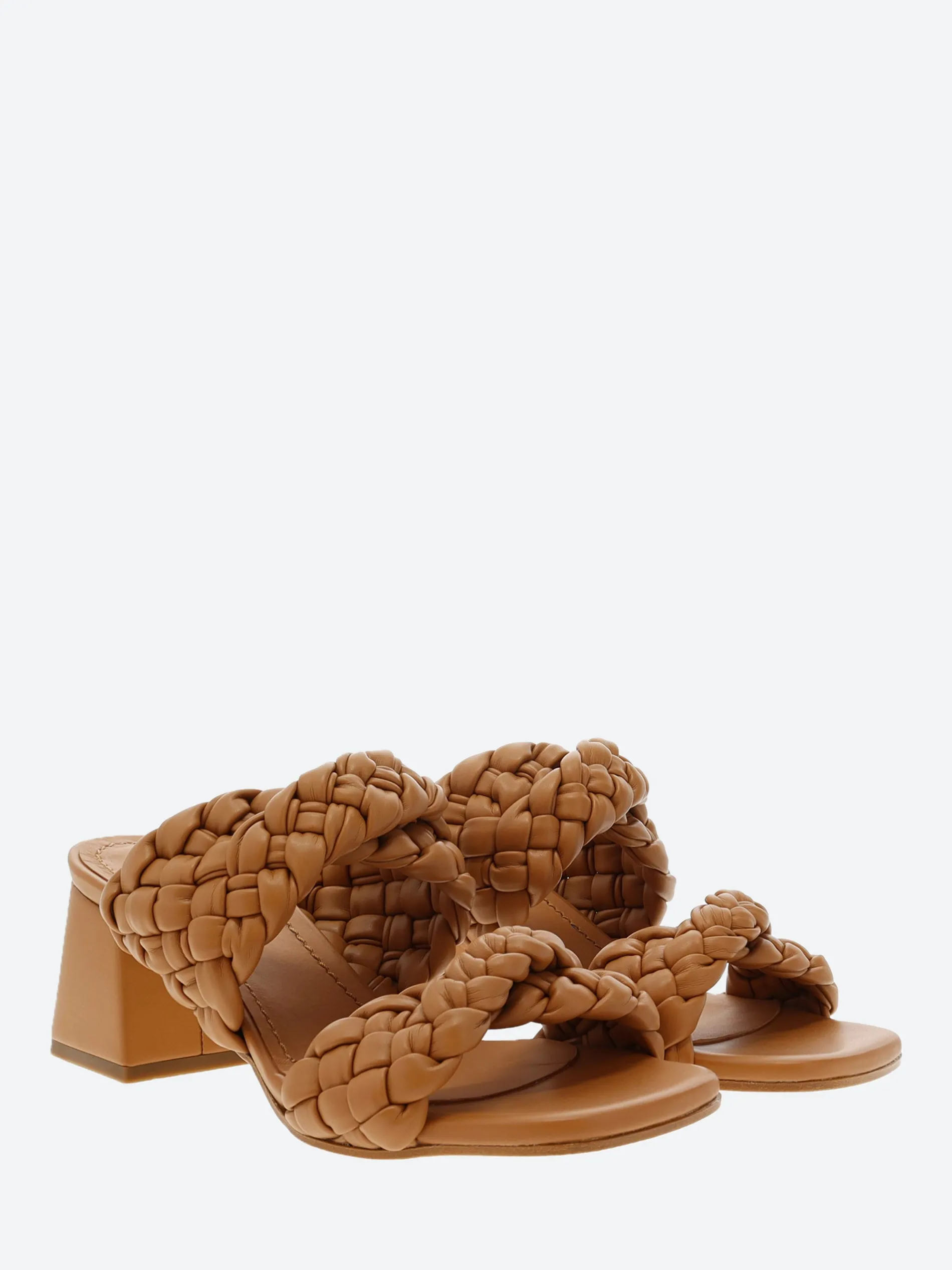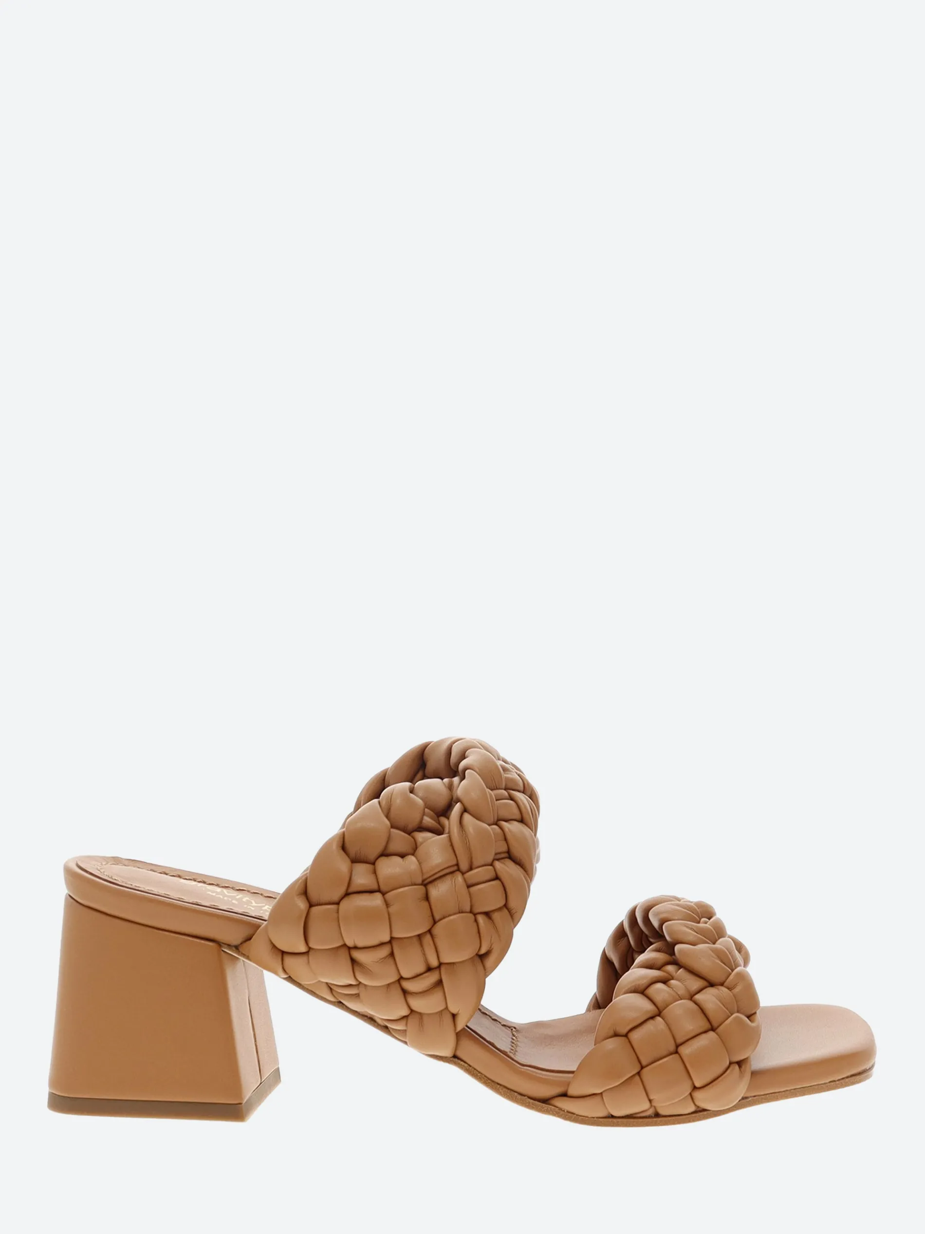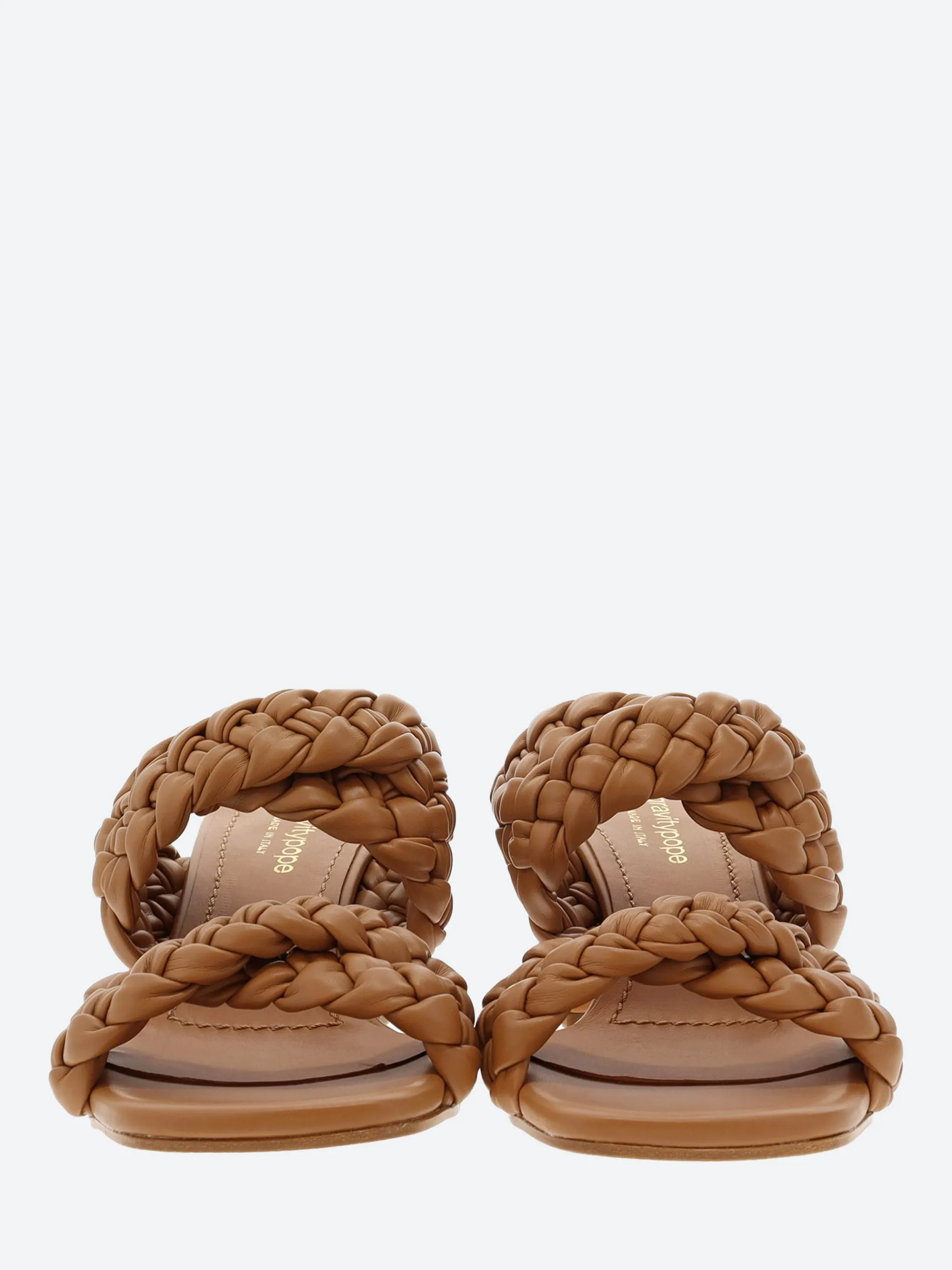 gravitypope Gavi slip-on sandal with woven cross straps, sitting on a chunky block heel.