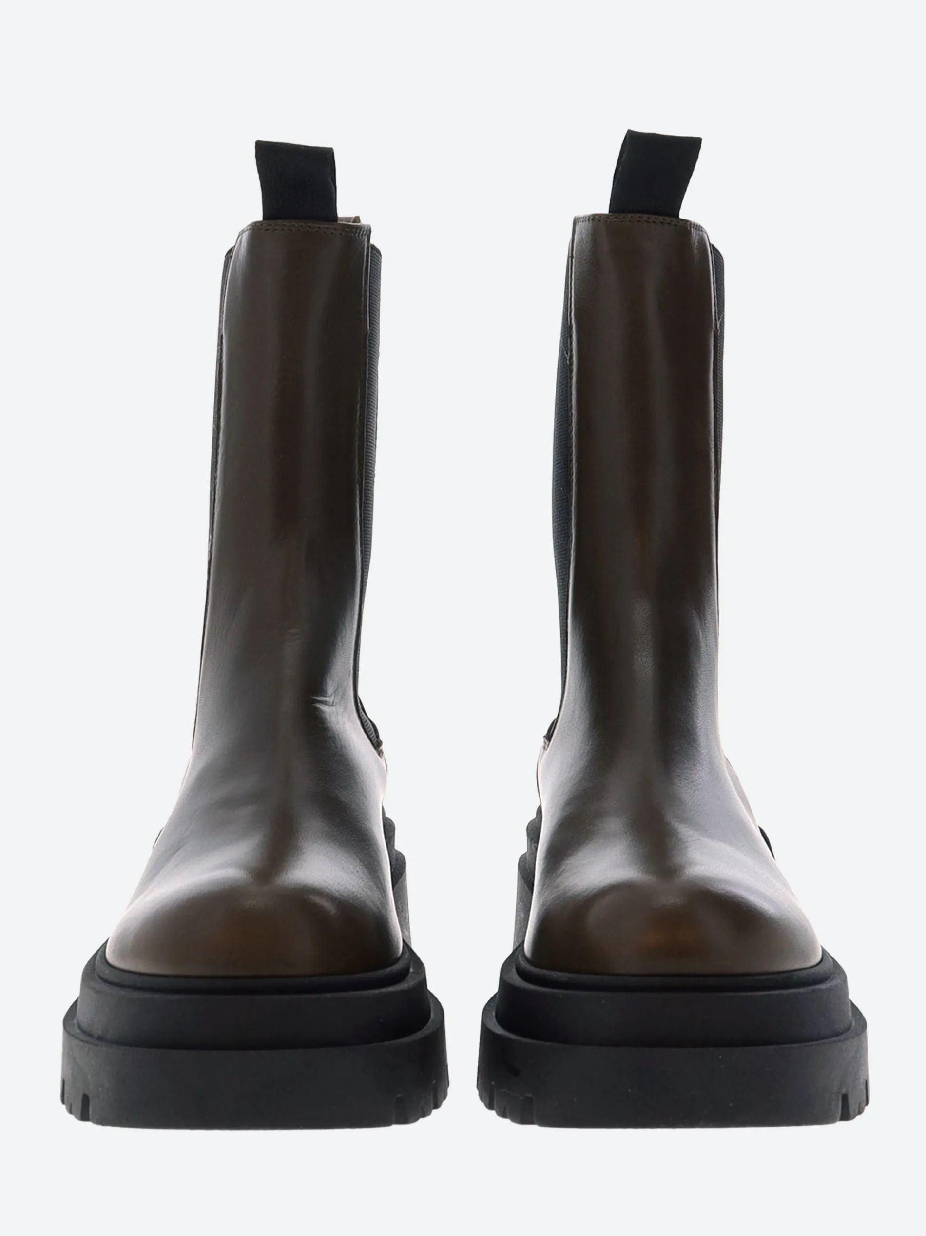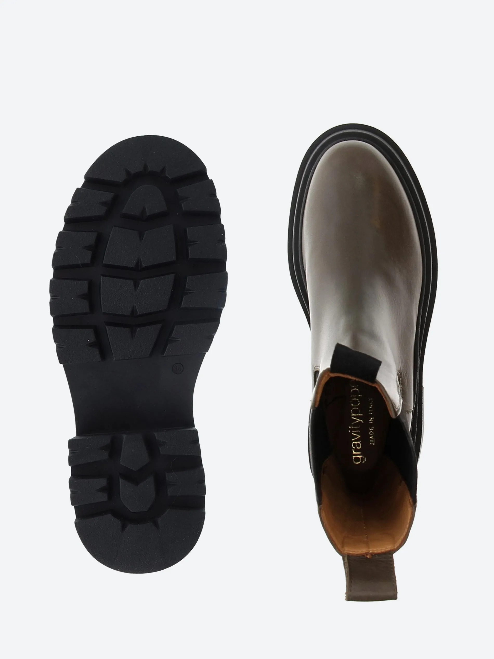 gravitypope Genny Chelsea boot with a tall profile that sits on an edgy lug sole for a grounded, utilitarian look.