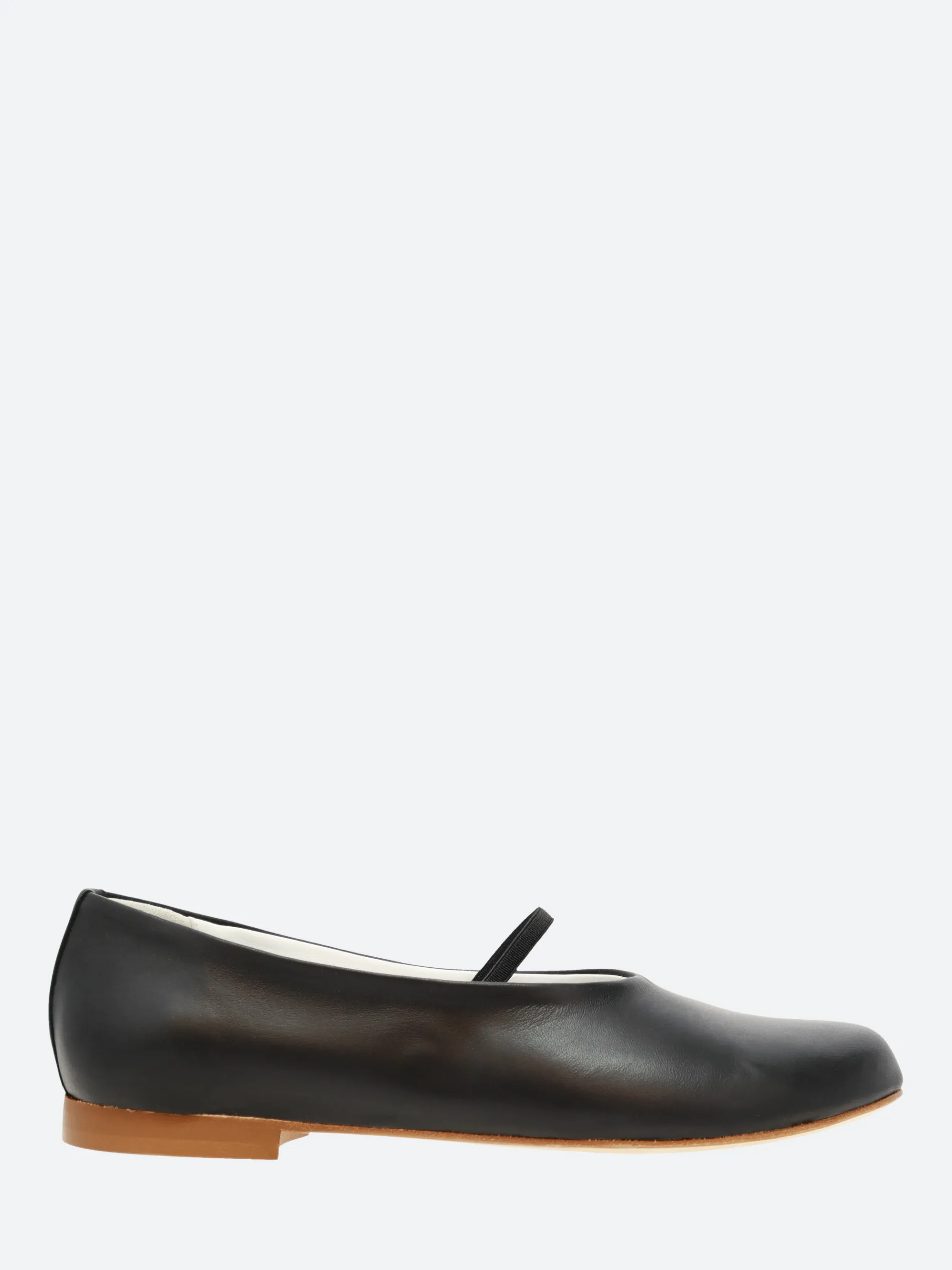 This leather ballet flat with an elastic strap is a comfortable, timeless choice that pairs perfectly with any outfit.