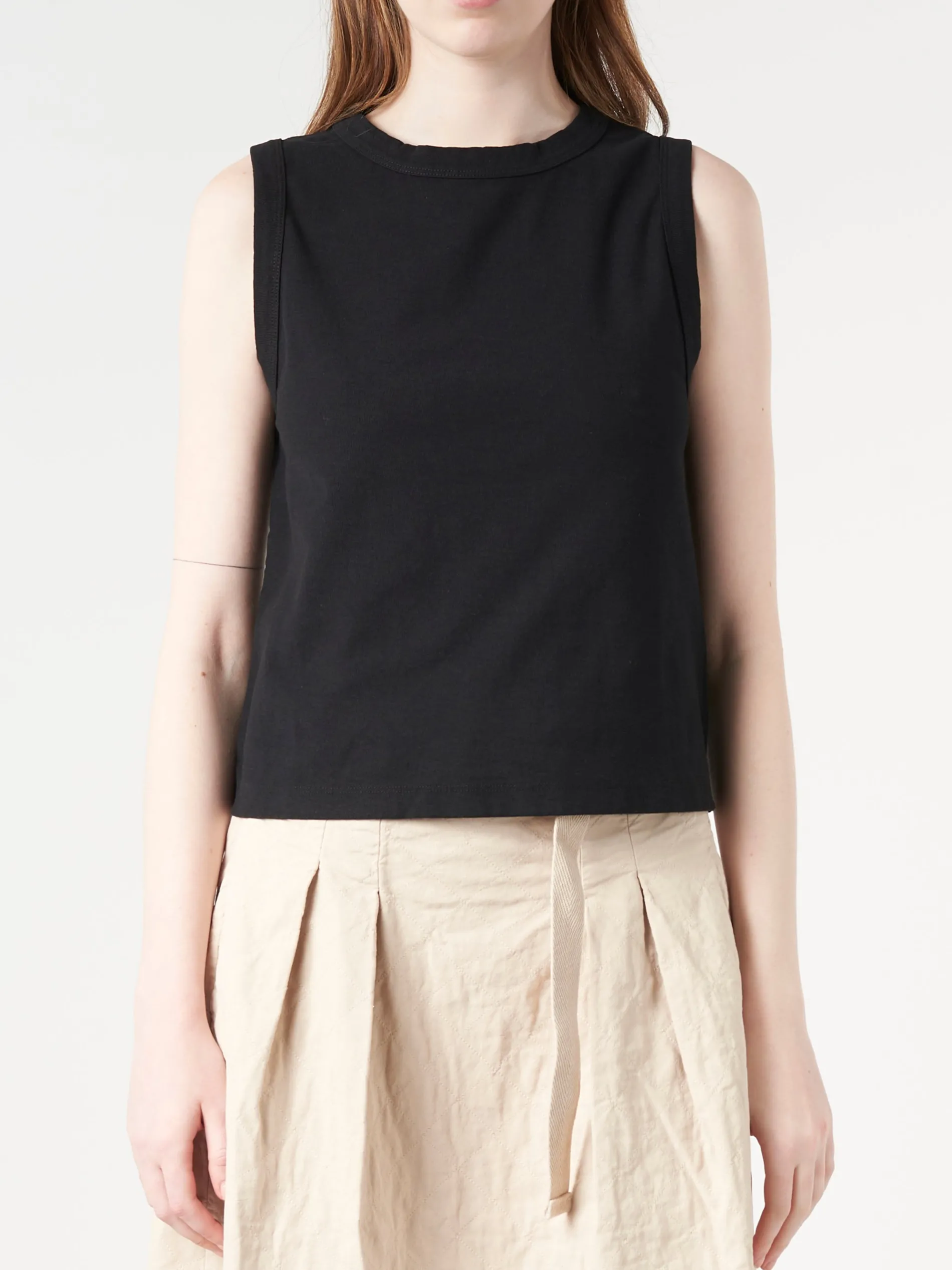 This sleeveless crewneck tank top will always come in handy, whether you’re combining it with denim, shorts or a skirt.