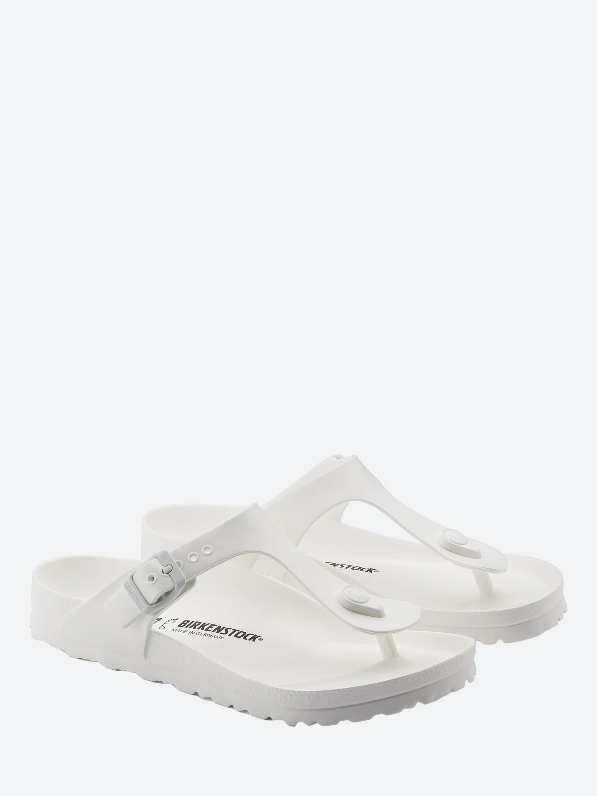 The Birkenstock Gizeh is a genuine classic. Modeled on the original, this version is made from ultra light and highly flexible EVA. Ultra lightweight, highly elasticated, shock-absorbent and waterproof.