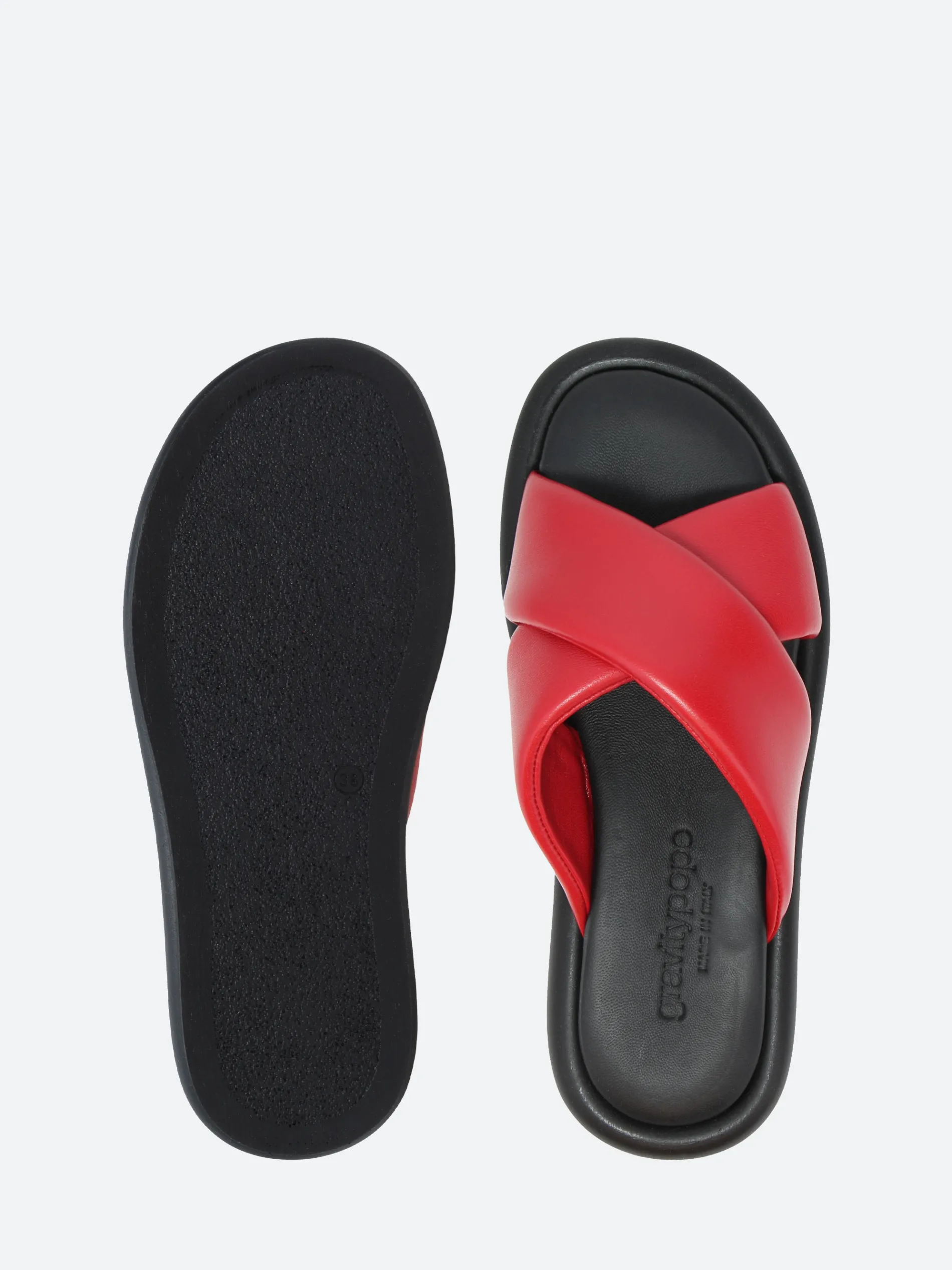 gravitypope wide crisscross straps at the vamp with a cushioned leather footbed for added comfort.