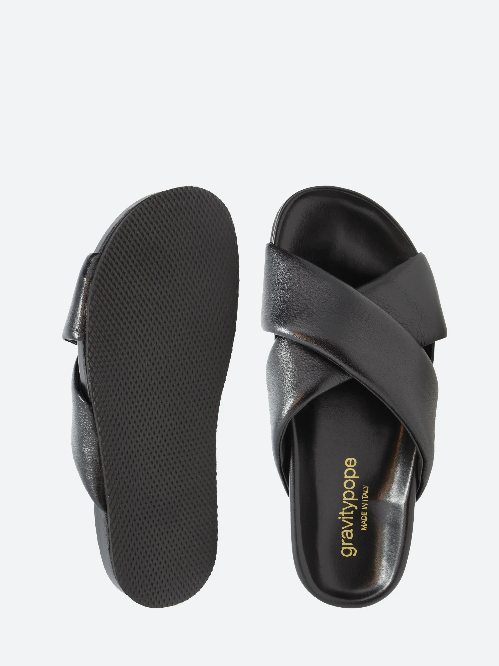 gravitypope Joysell is a classic slide sandal crafted from smooth leather and sits on a tonal fussbett outsole.