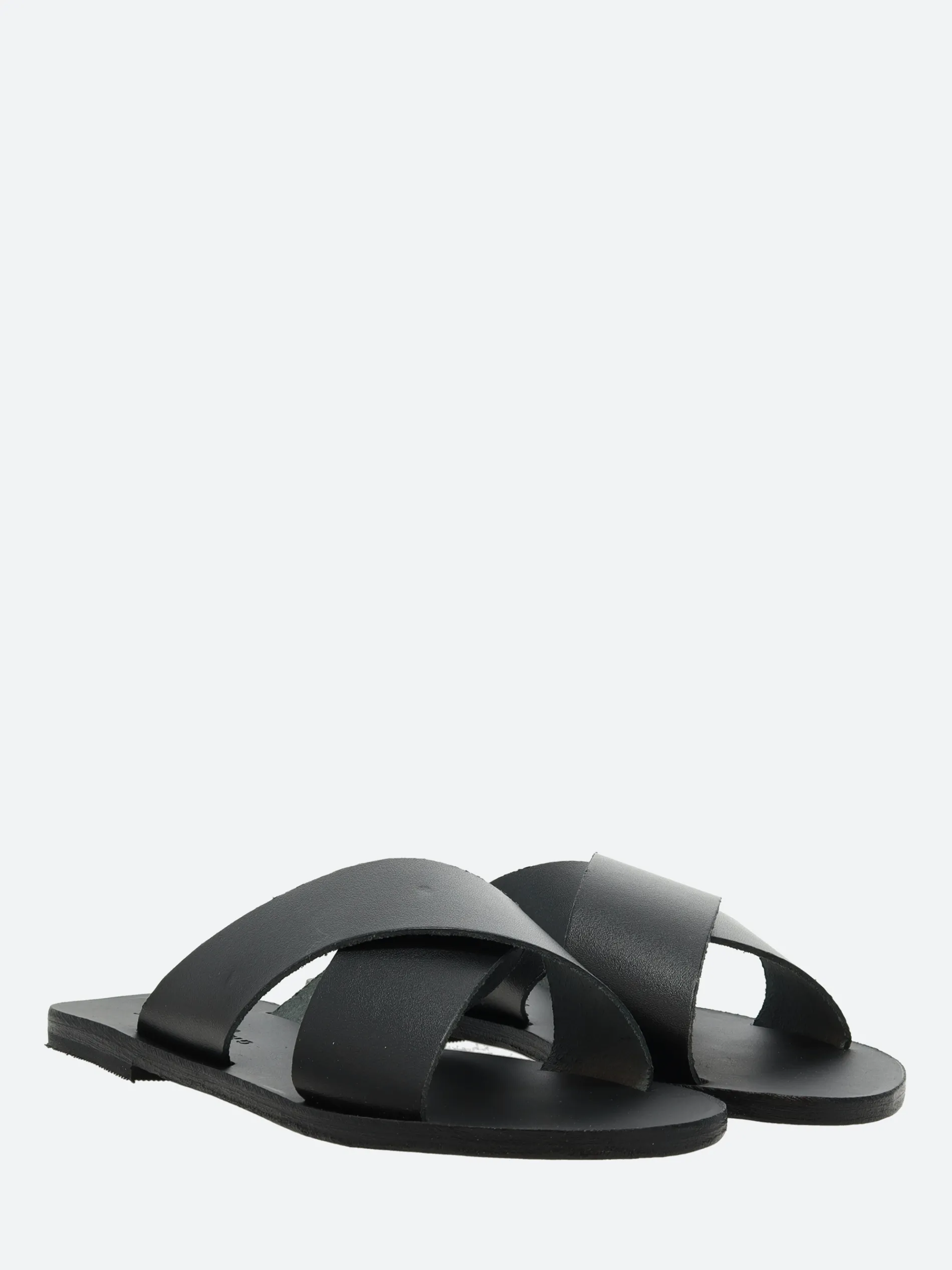 A timeless, minimal cross-strap slide sandal, made from an elegant smooth leather.