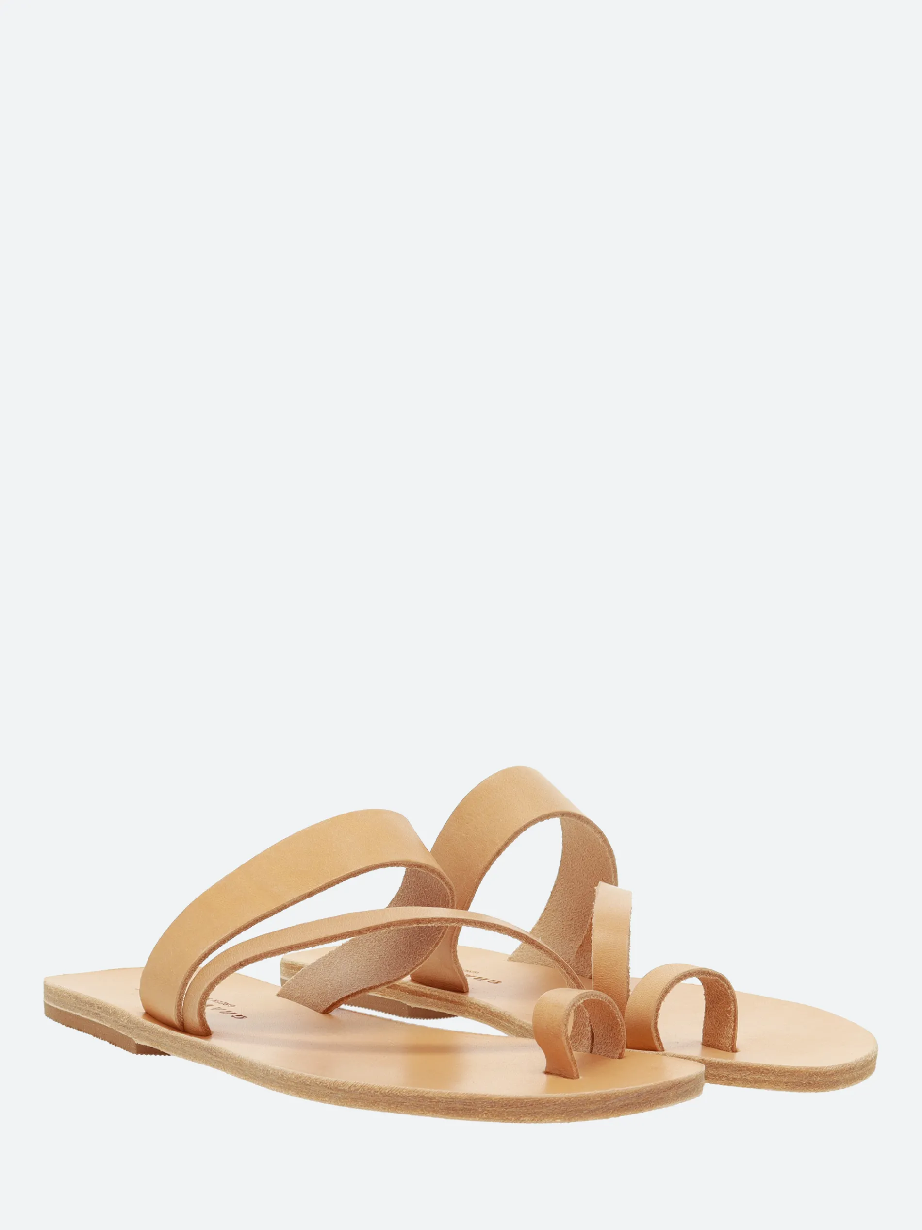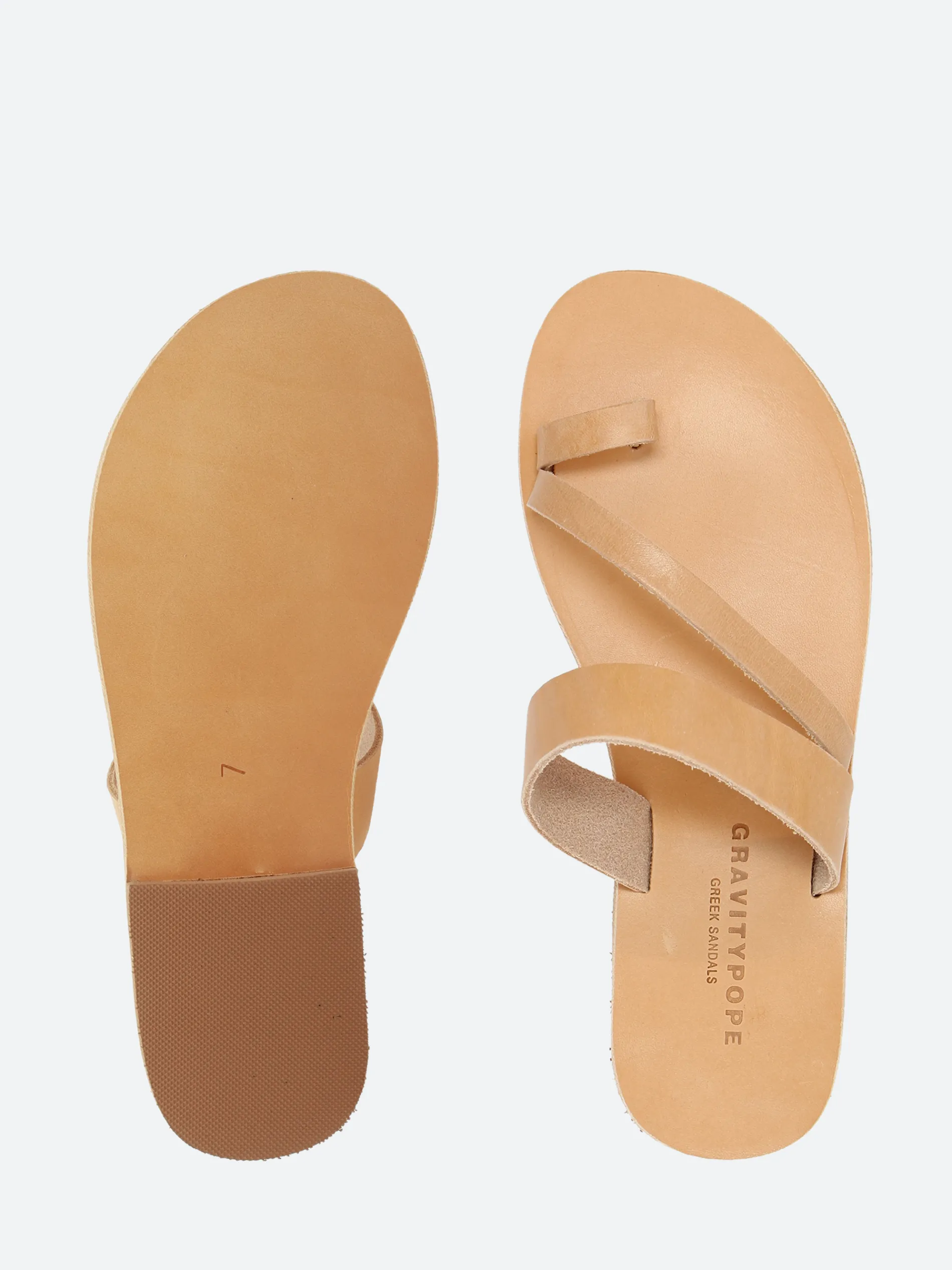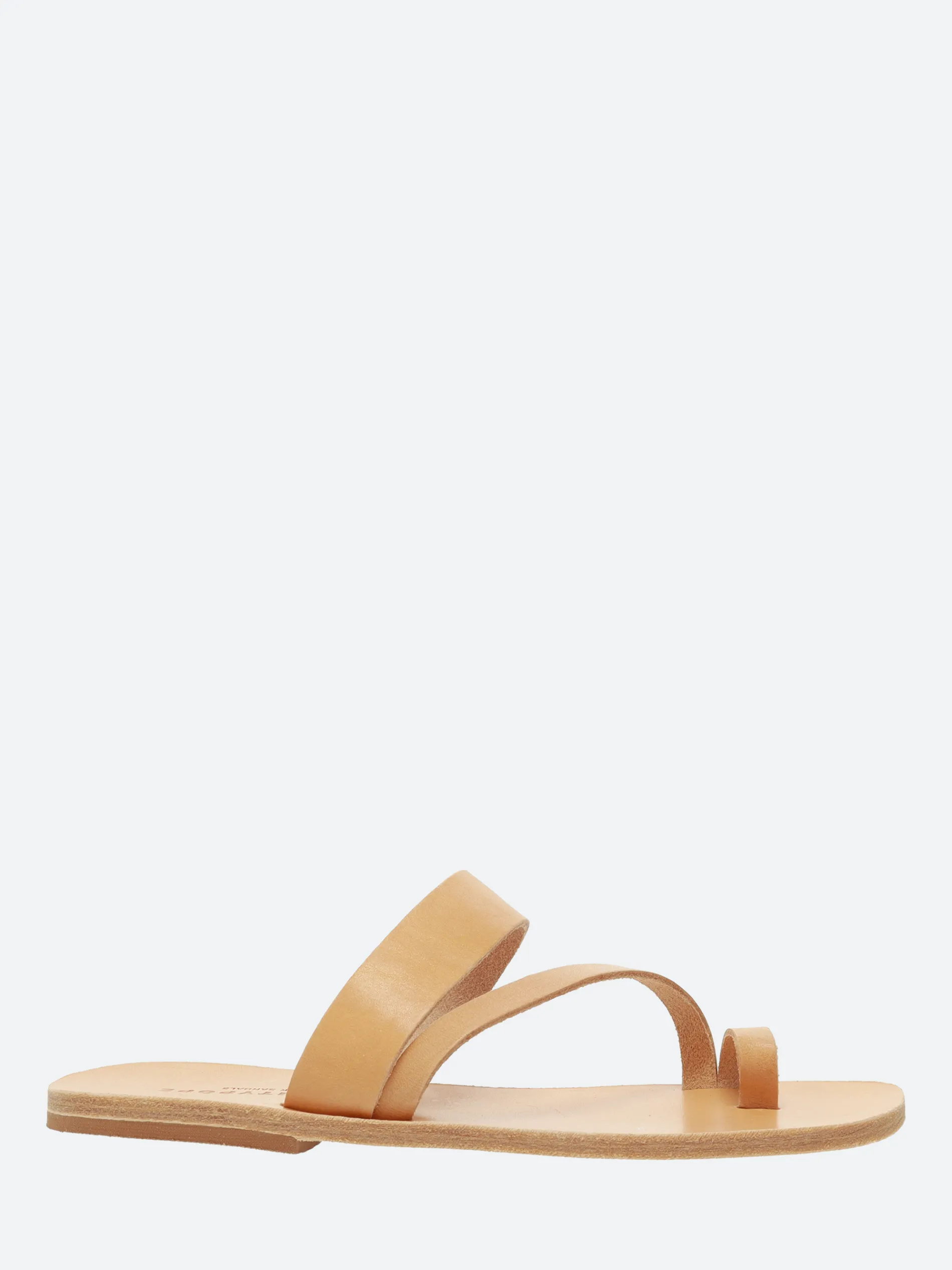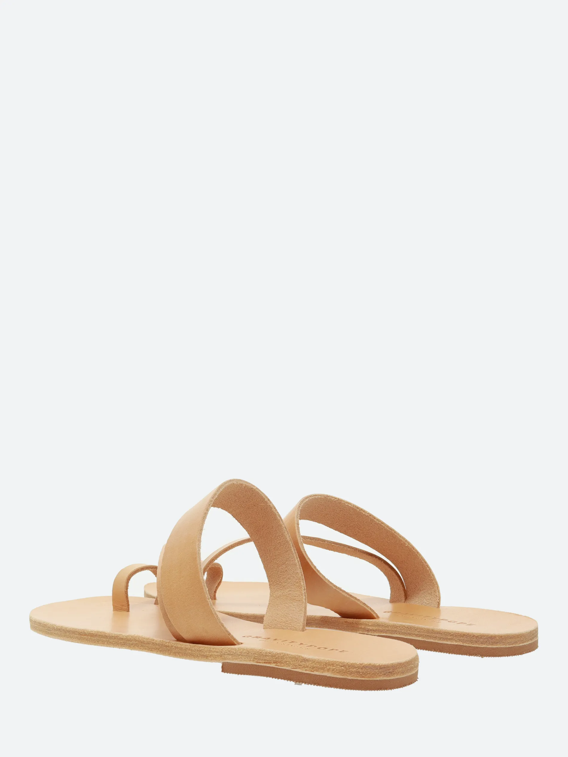 A slip-on thong sandal, with a fixed cross-strap at the vamp, made from an elegant smooth leather.