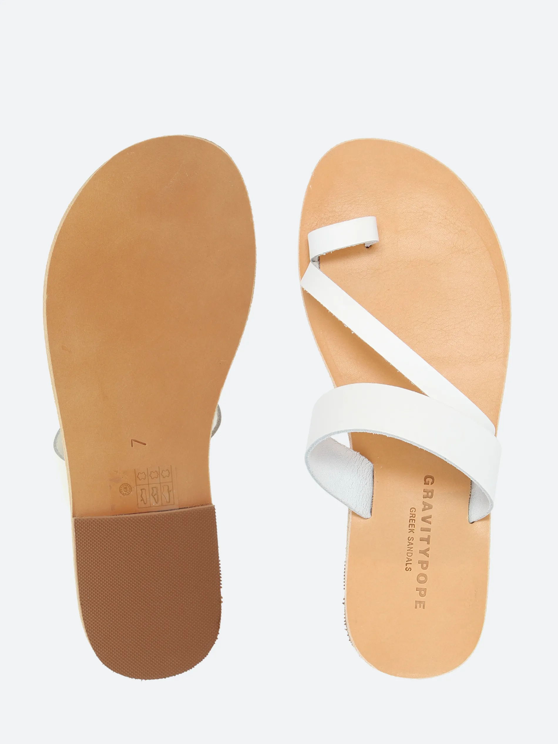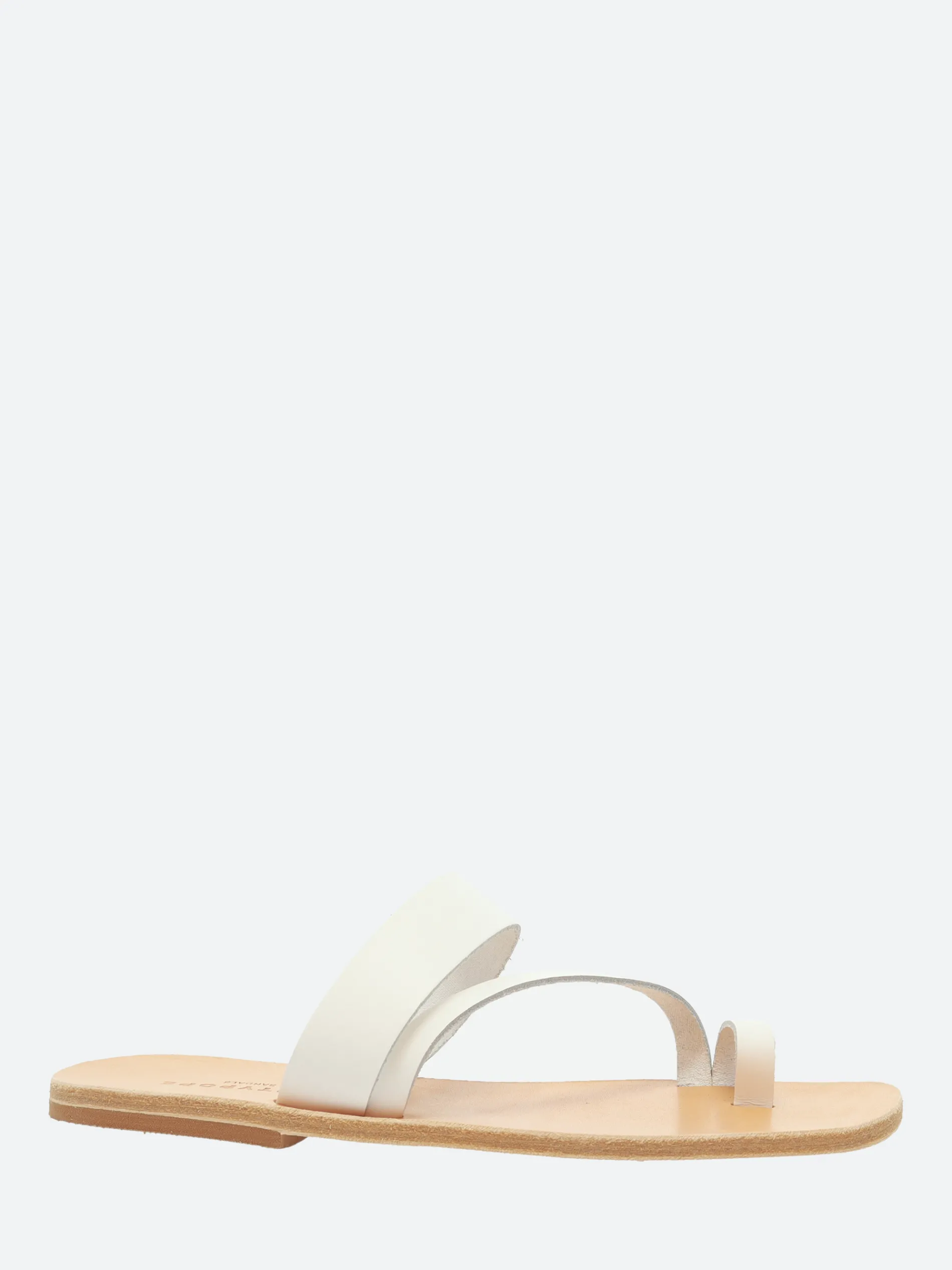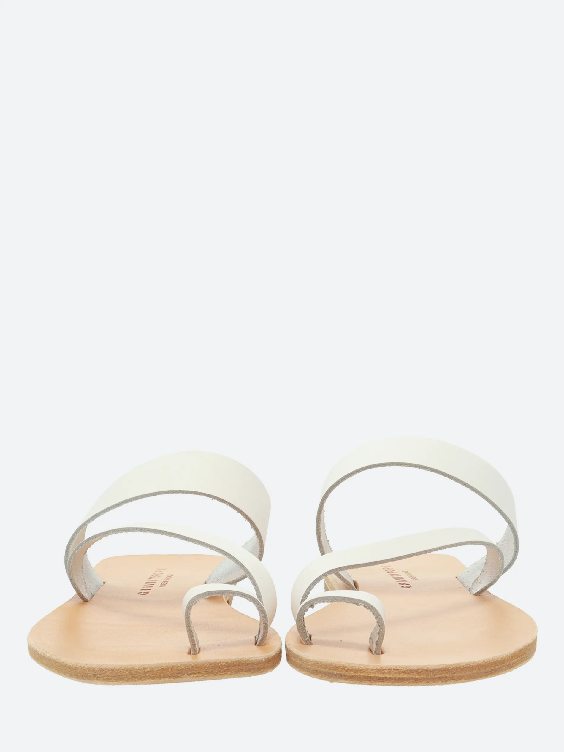 A slip-on thong sandal, with a fixed cross-strap at the vamp, made from an elegant smooth leather.