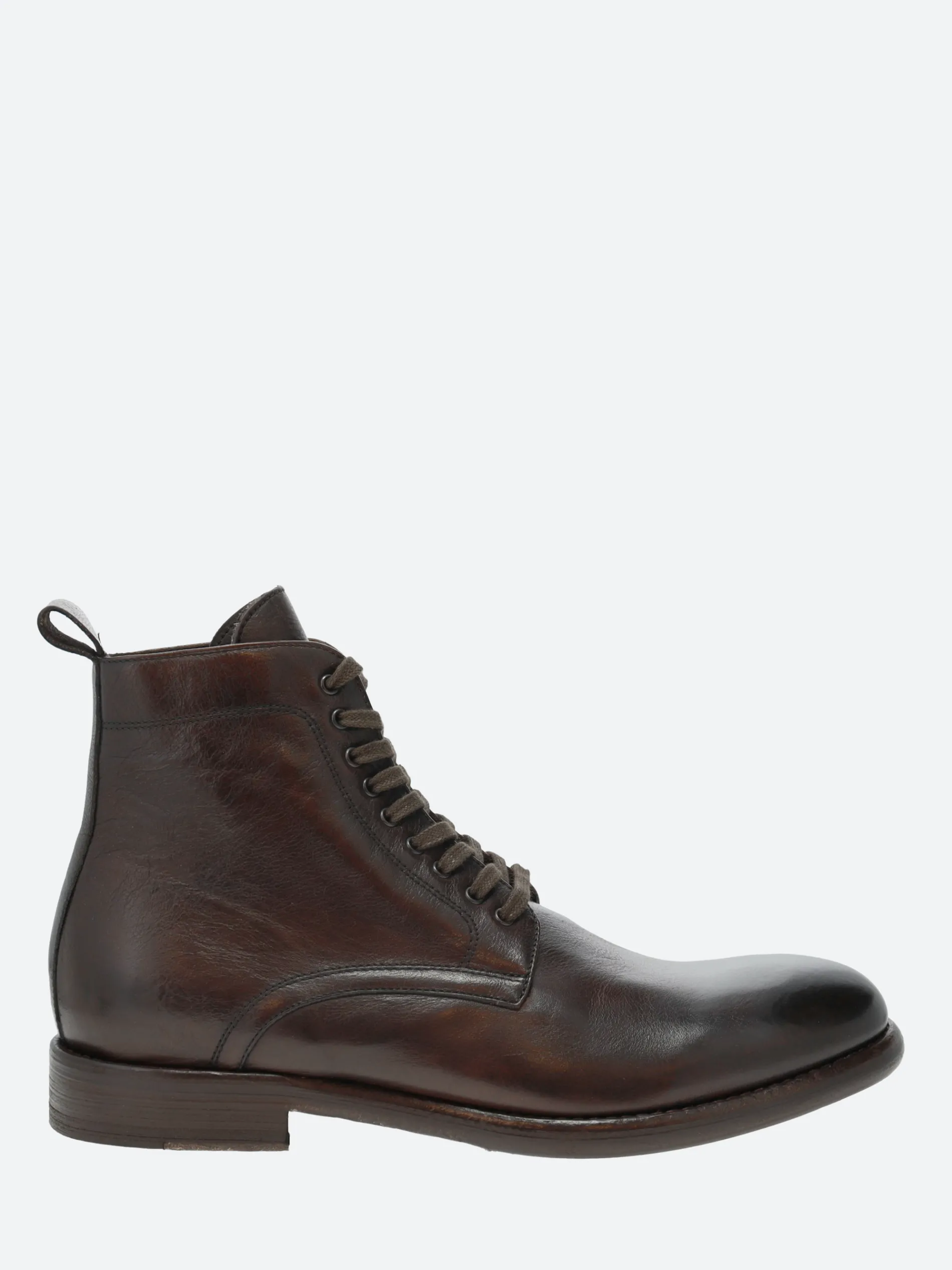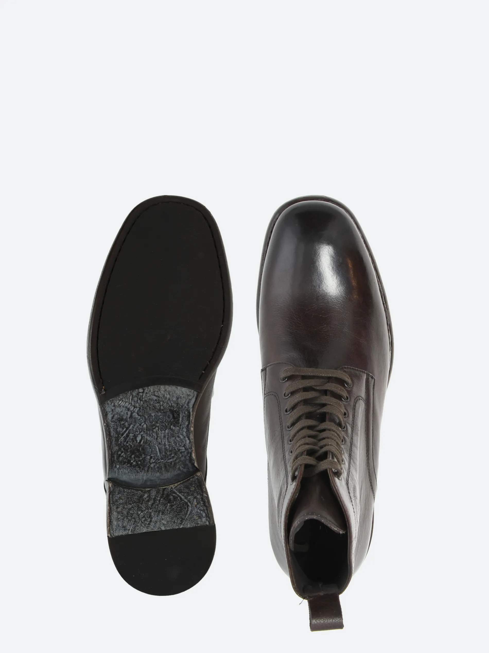 gravitypope Marco lace-up derby boots in polished brown leather. Stitched leather sole with rubber pad. Handcrafted in Italy.