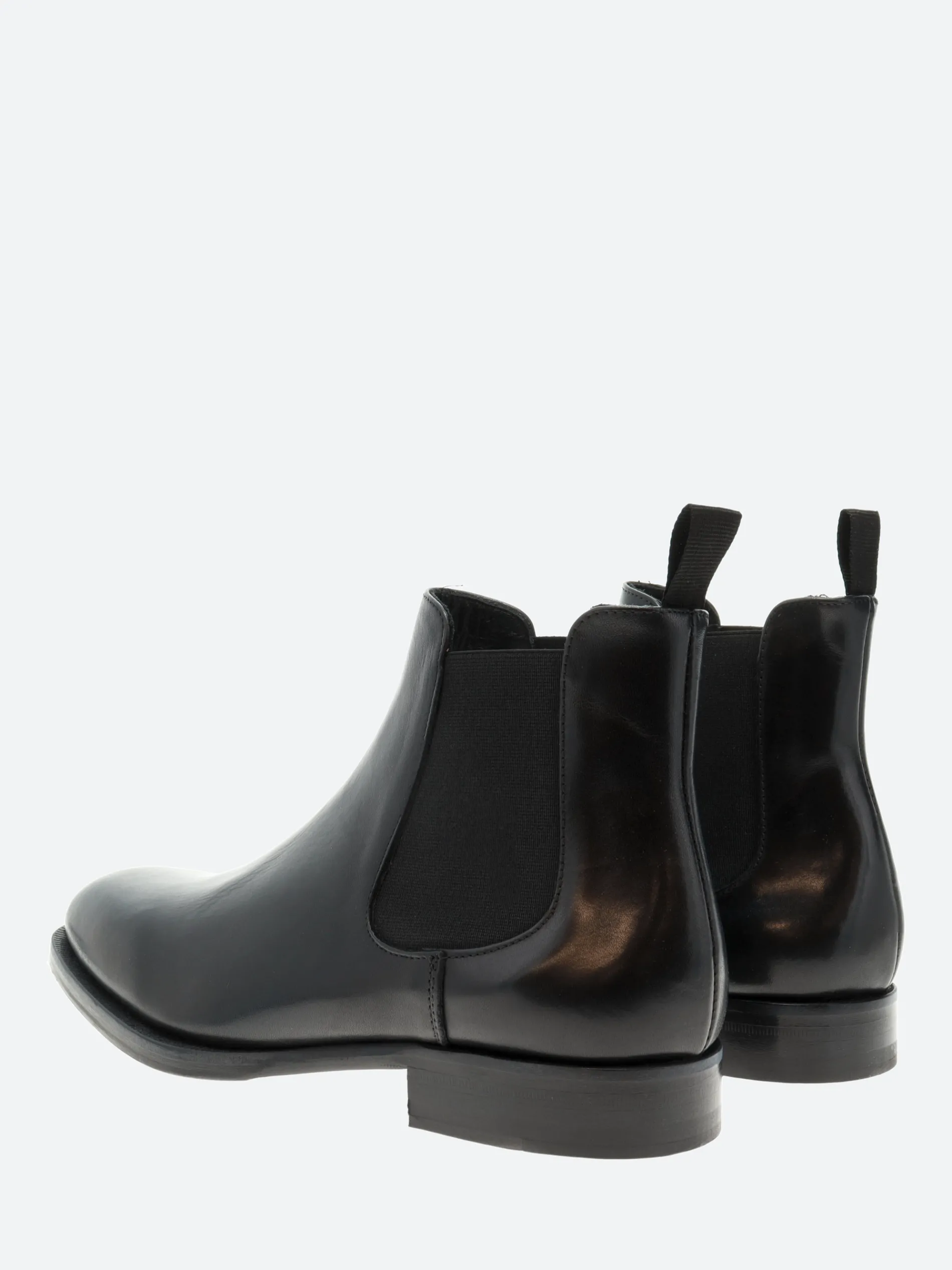 The gravitypope Chelsea boot features a long, slightly square silhouette crafted in Italy from smooth Vitello leather and fully leather-lined for a luxurious feel. The leather sole is enhanced with a rubber toppy on the forefoot and heel, providing added comfort and durability. Minimalist detailing brings maximum versatility to this design, making it ideal for various outfits and occasions. Traditional goring in the shaft ensures an easy fit, combining timeless style with practicality for an essential addition to any wardrobe.