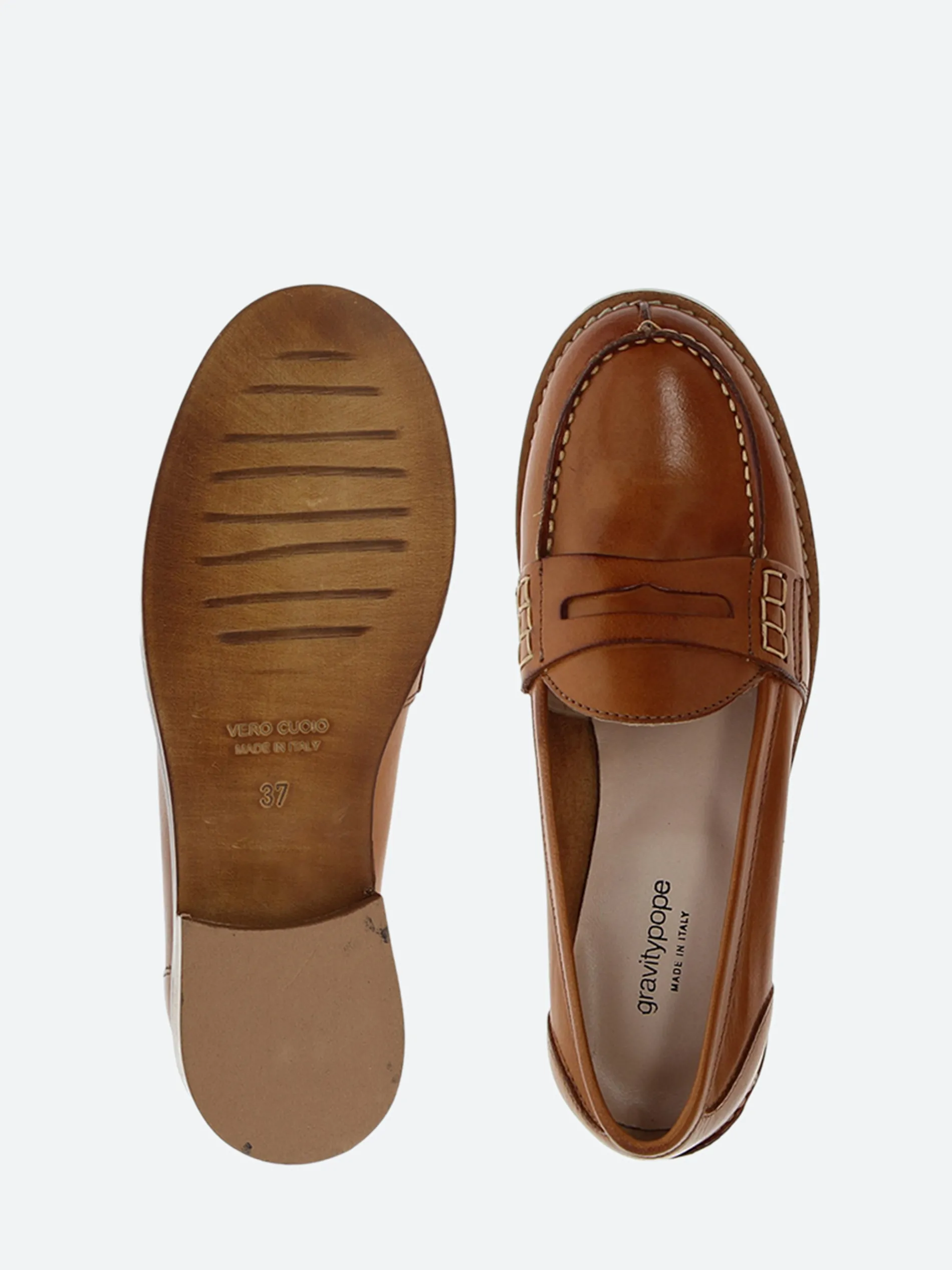 gravitypope Rae loafer has a classic style with a streamlined upper and minimal detailing. A traditional penny saddle strap maintains its classic look.