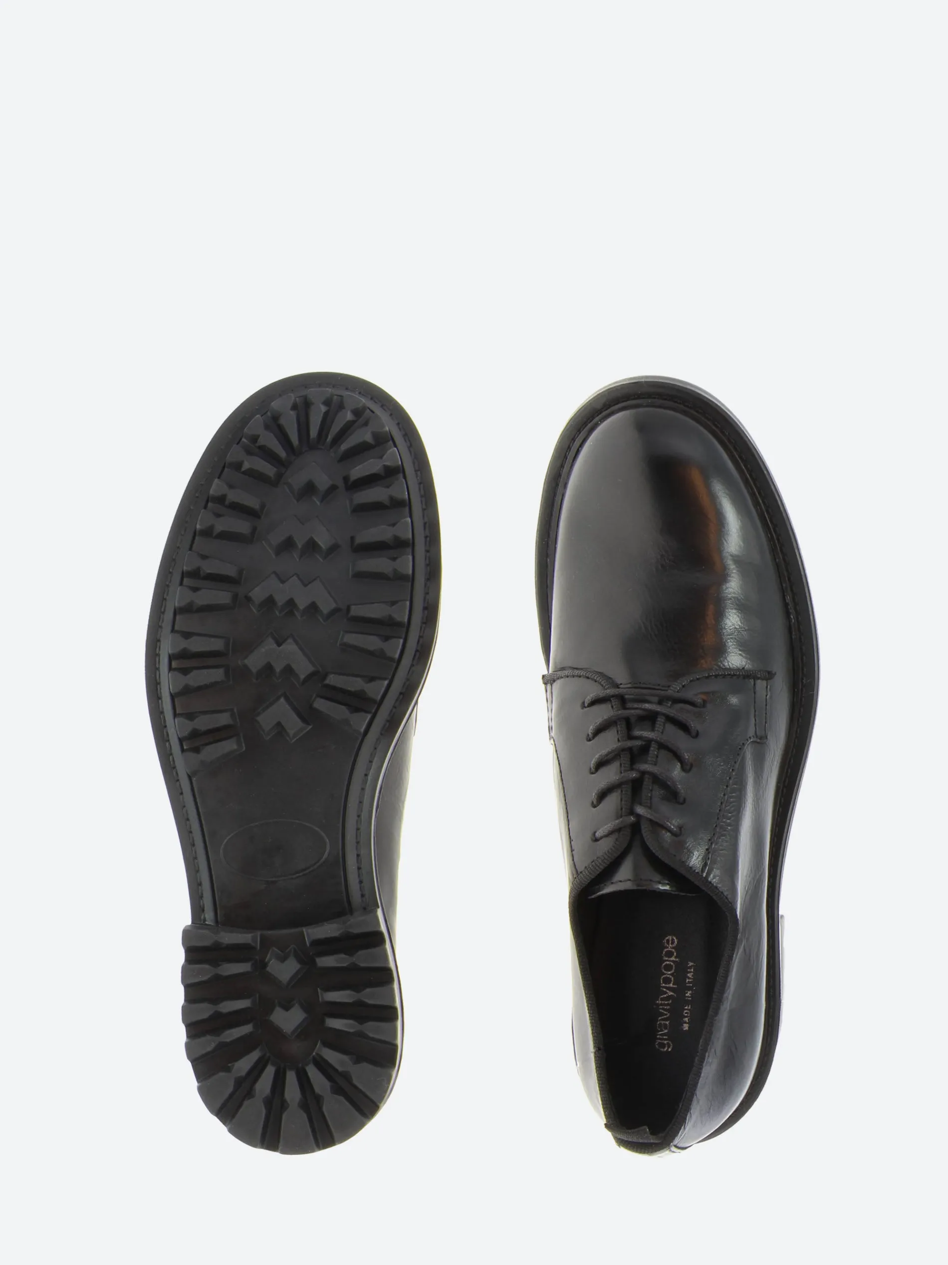 gravitypope Raida with a slight block heel. This almond toe lace-up blucher in a smooth leather upper is a timeless piece to be worn on any occasion.