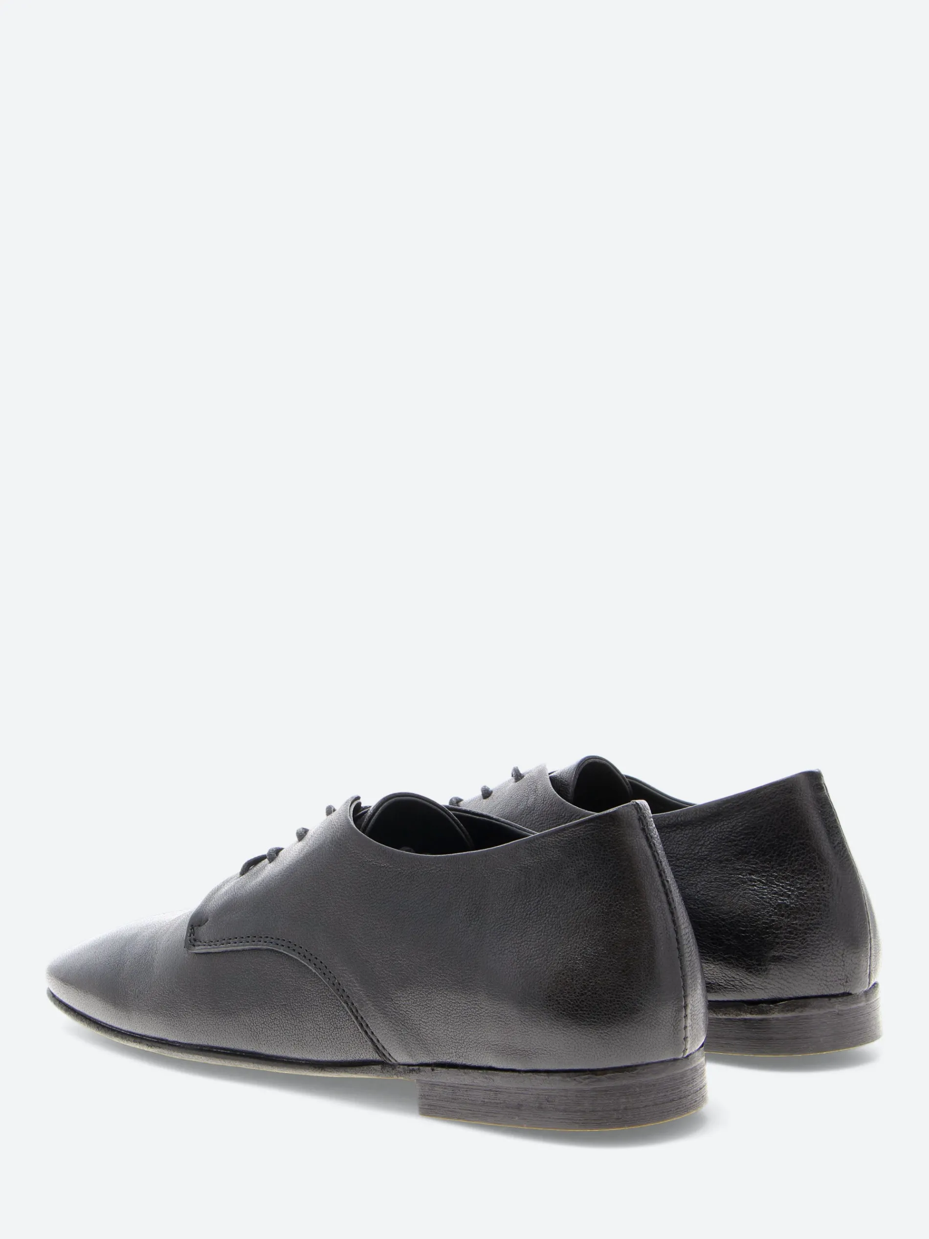 The gravitypope Rainor shoes are handmade in Italy from smooth yet shiny Nappa leather, offering a sleek and polished look. Inspired by dance shoes, they feature cotton laces and a contemporary square toe, blending comfort with style. Fully lined in smooth leather for added luxury, these shoes also feature a flat heel, providing all-day comfort and versatility.