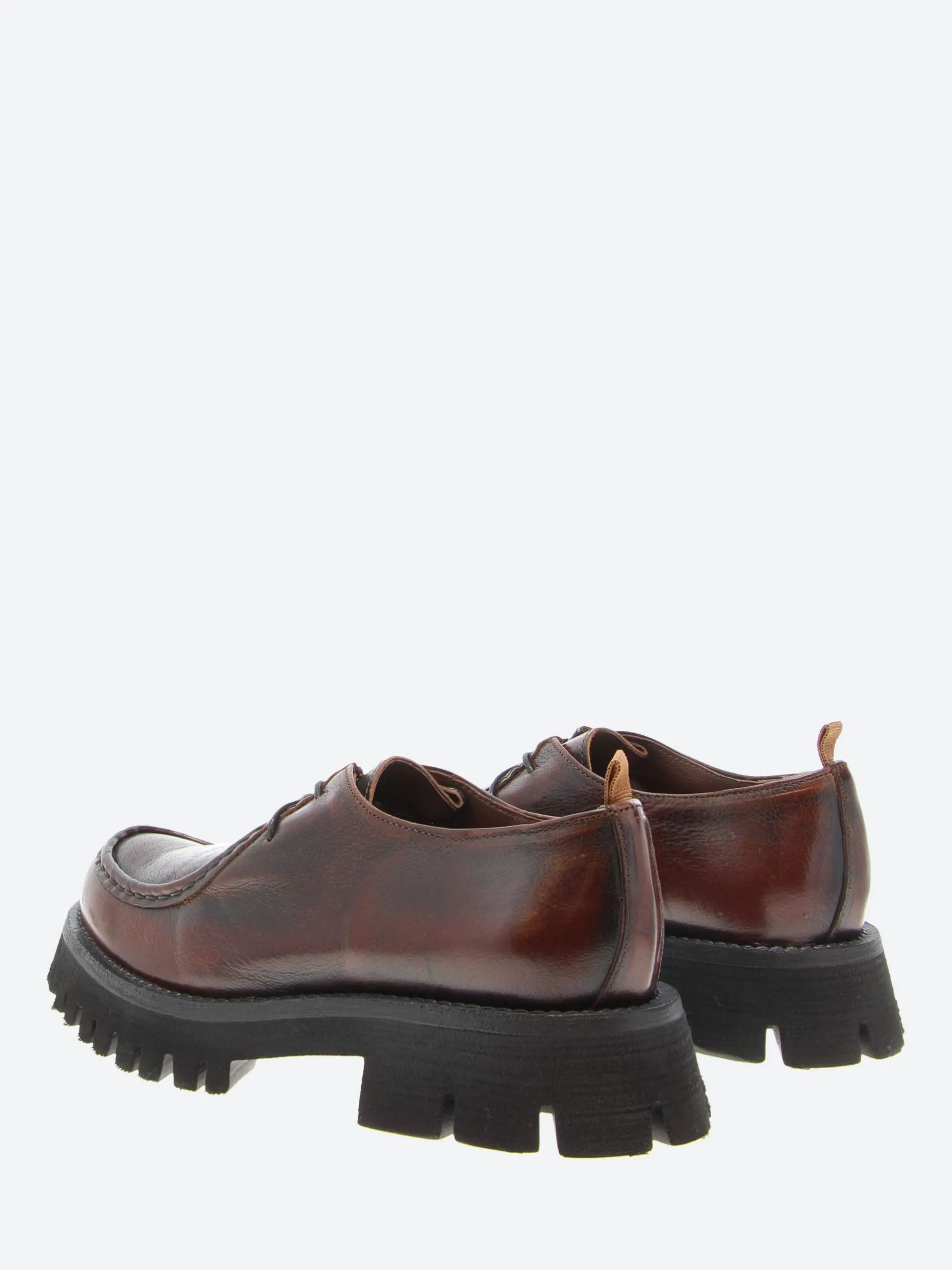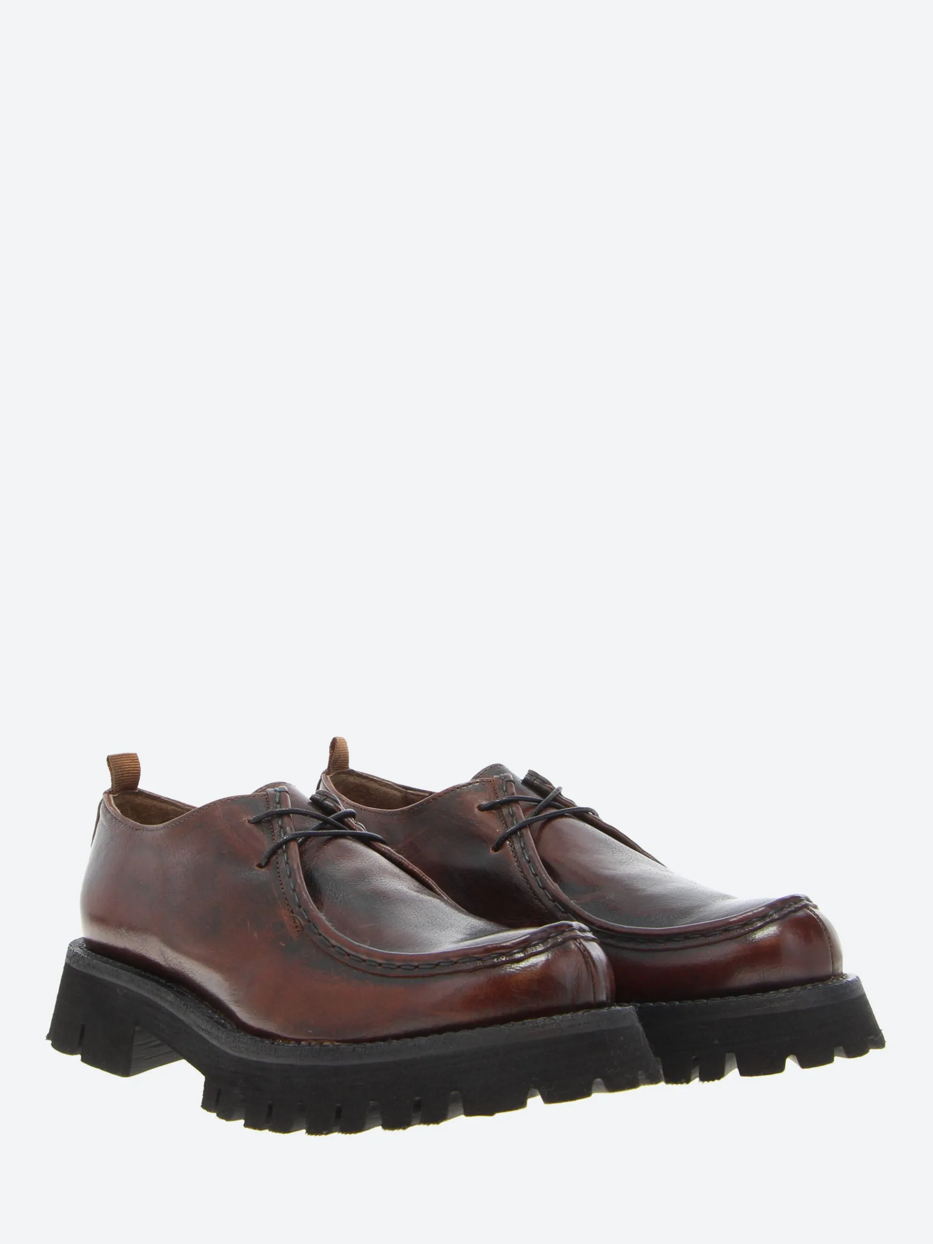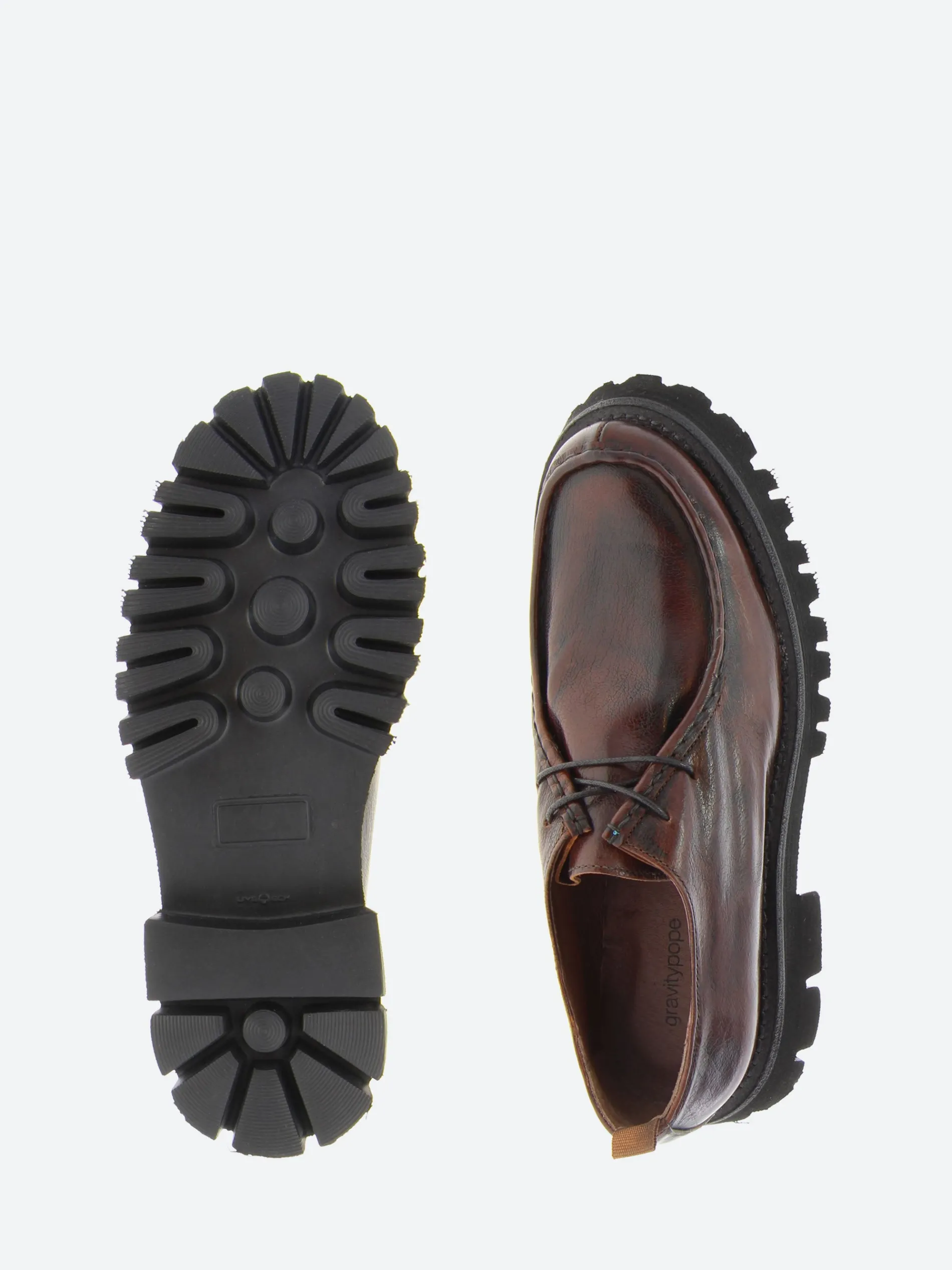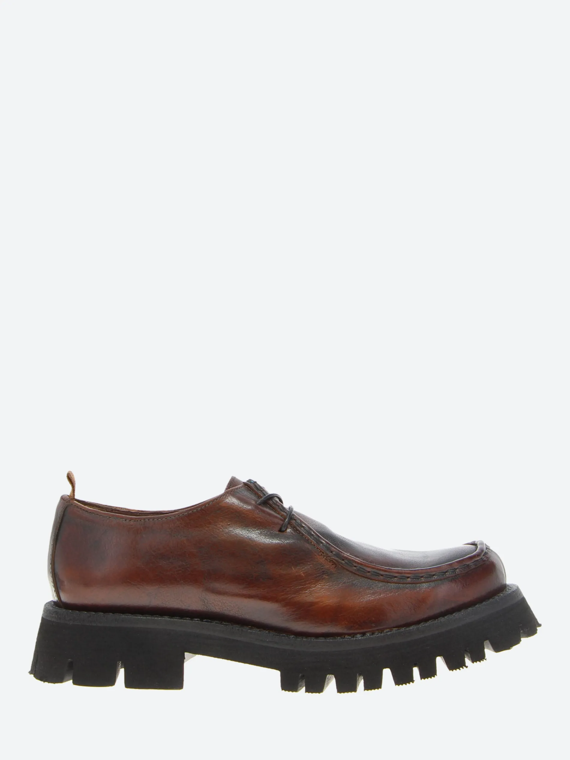gravitypope Raida with a chunky lug sole. This moc toe lace-up in a smooth leather upper is a timeless piece to be worn on any occasion.