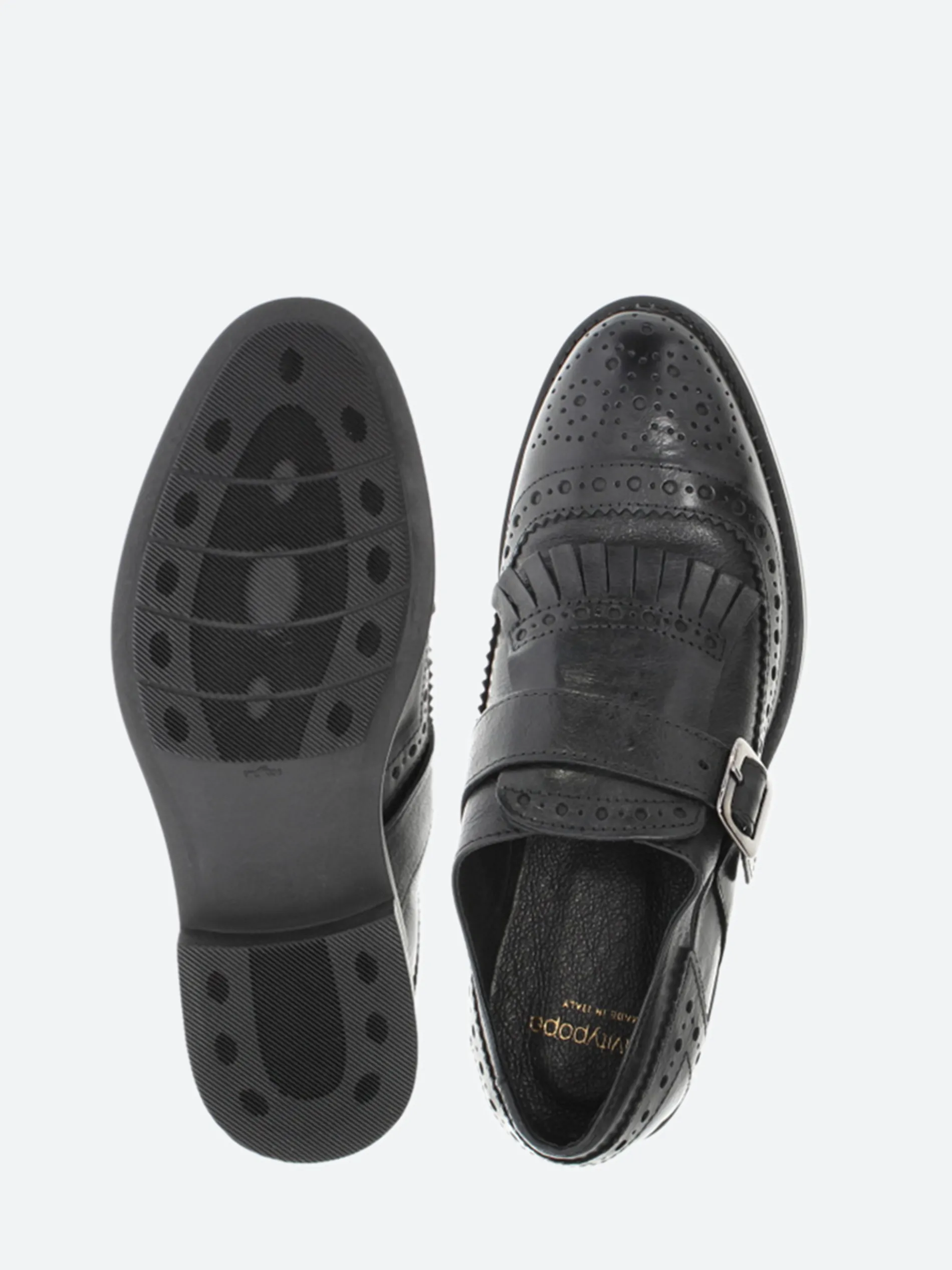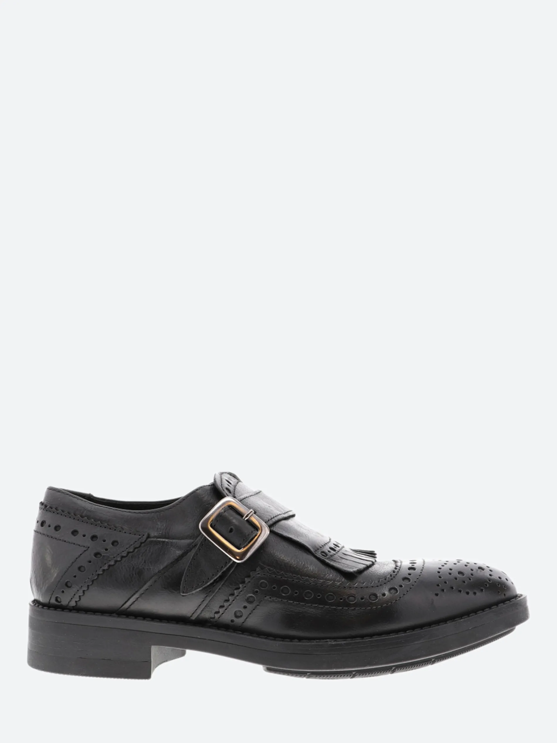 The Rime is a unique combination of brogue and monk strap. Finished with kiltie fringe trim, these shoes have an intentionally vintage look.