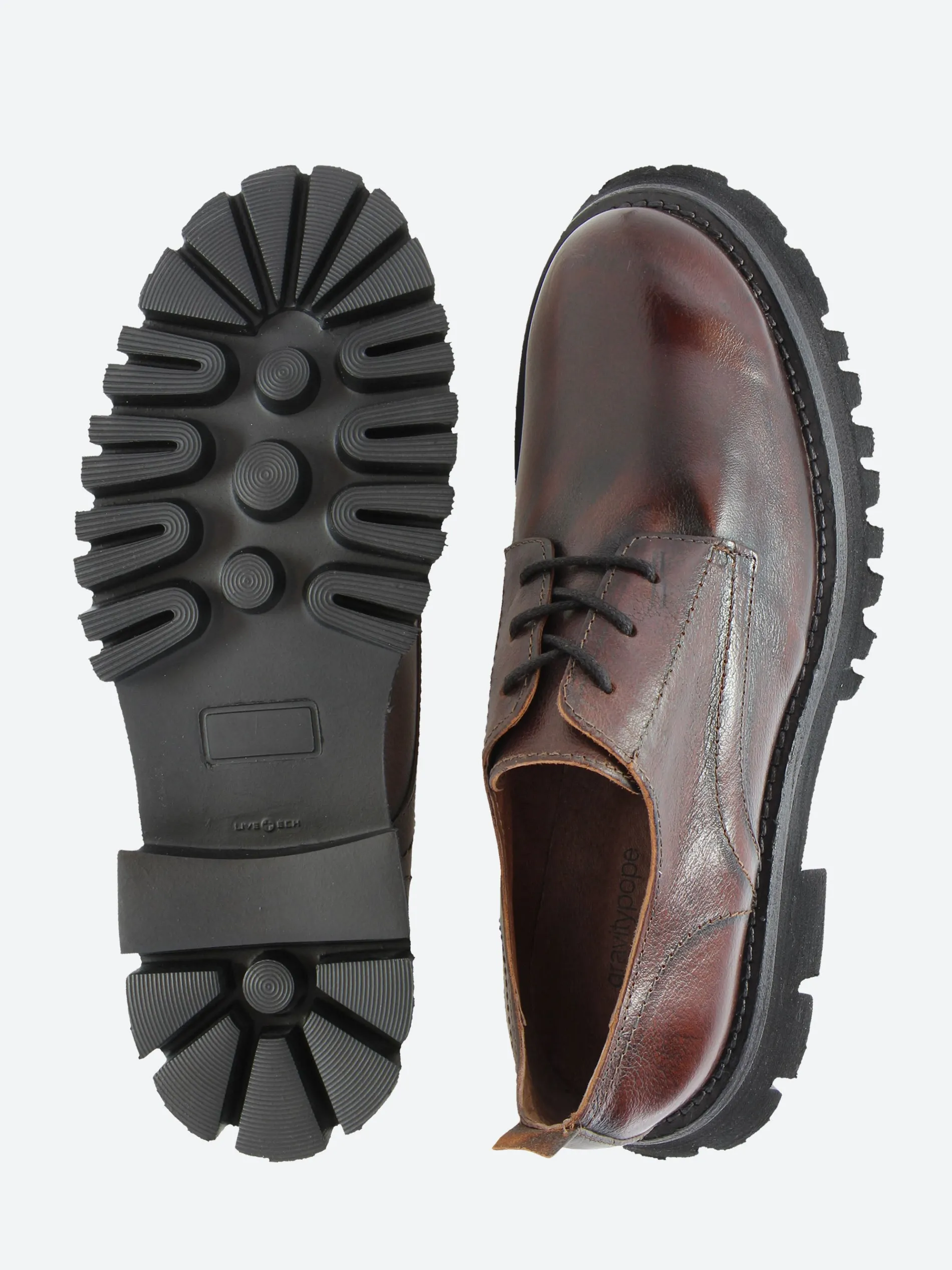 gravitypope Robena derby has a classic style with a streamlined upper and minimal detailing. Sits on a chunky lugged sole.