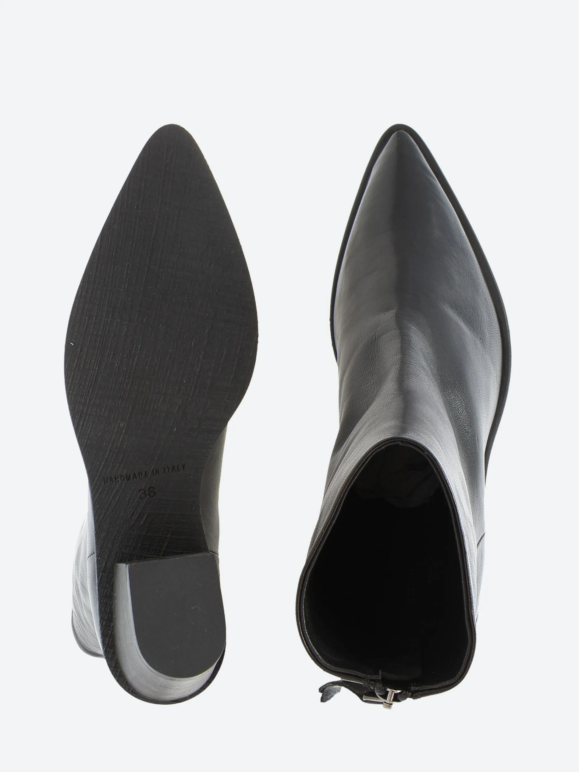 Classic slip-on boot with a Cuban heel made from sleek leather with pointed toe detailing.