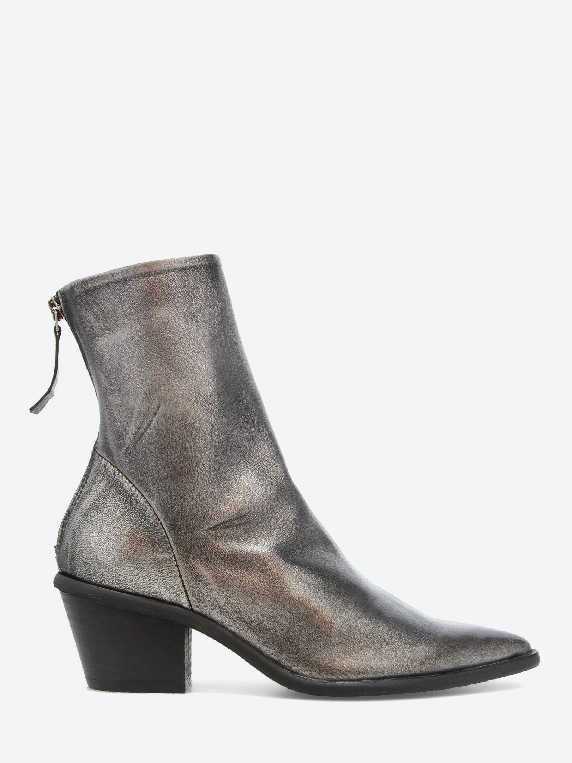 Classic slip-on boot with a Cuban heel made from sleek leather with pointed toe detailing.