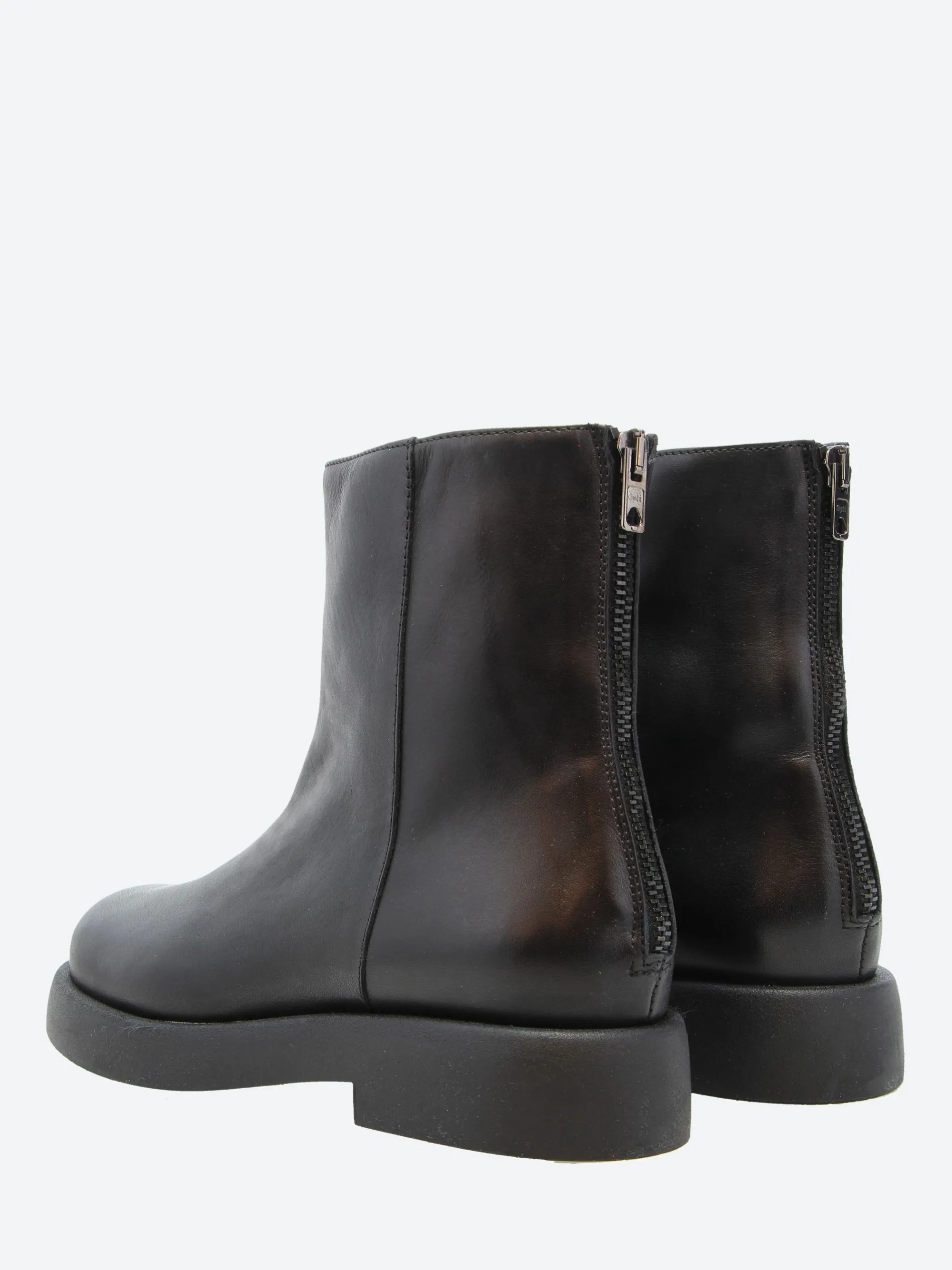 gravitypope Stefa with a slight block heel. This round toe bootie in a sleek leather upper is a timeless piece to be worn on any occasion.