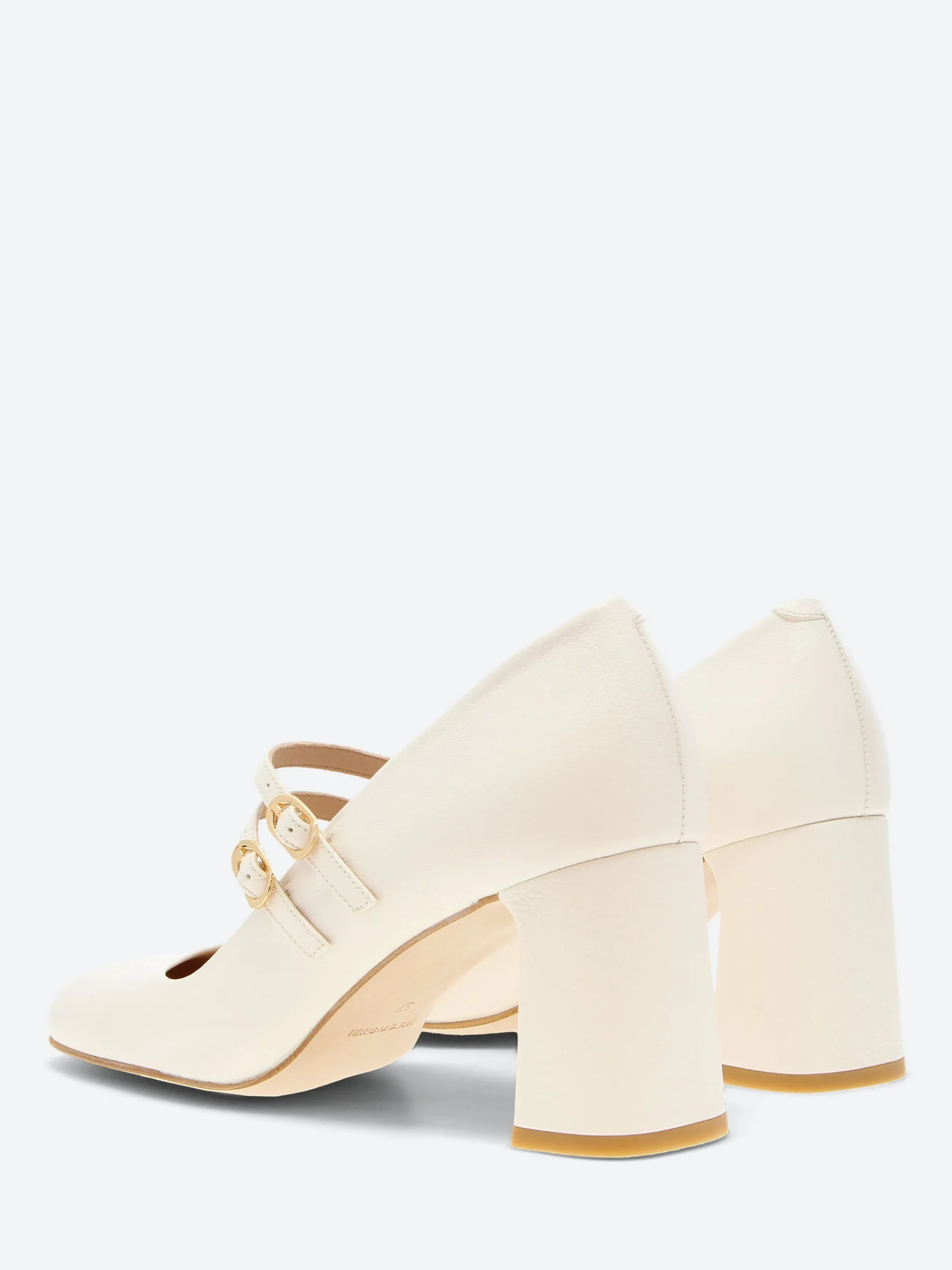 The gravitypope Zabi Mary Jane heel features a sturdy block heel and a chic square toe, offering a modern take on a classic style. With double straps and buckle details, it combines elegance and secure fit. The sleek, glossy finish adds a refined touch, making these heels the perfect choice for both day and evening wear.