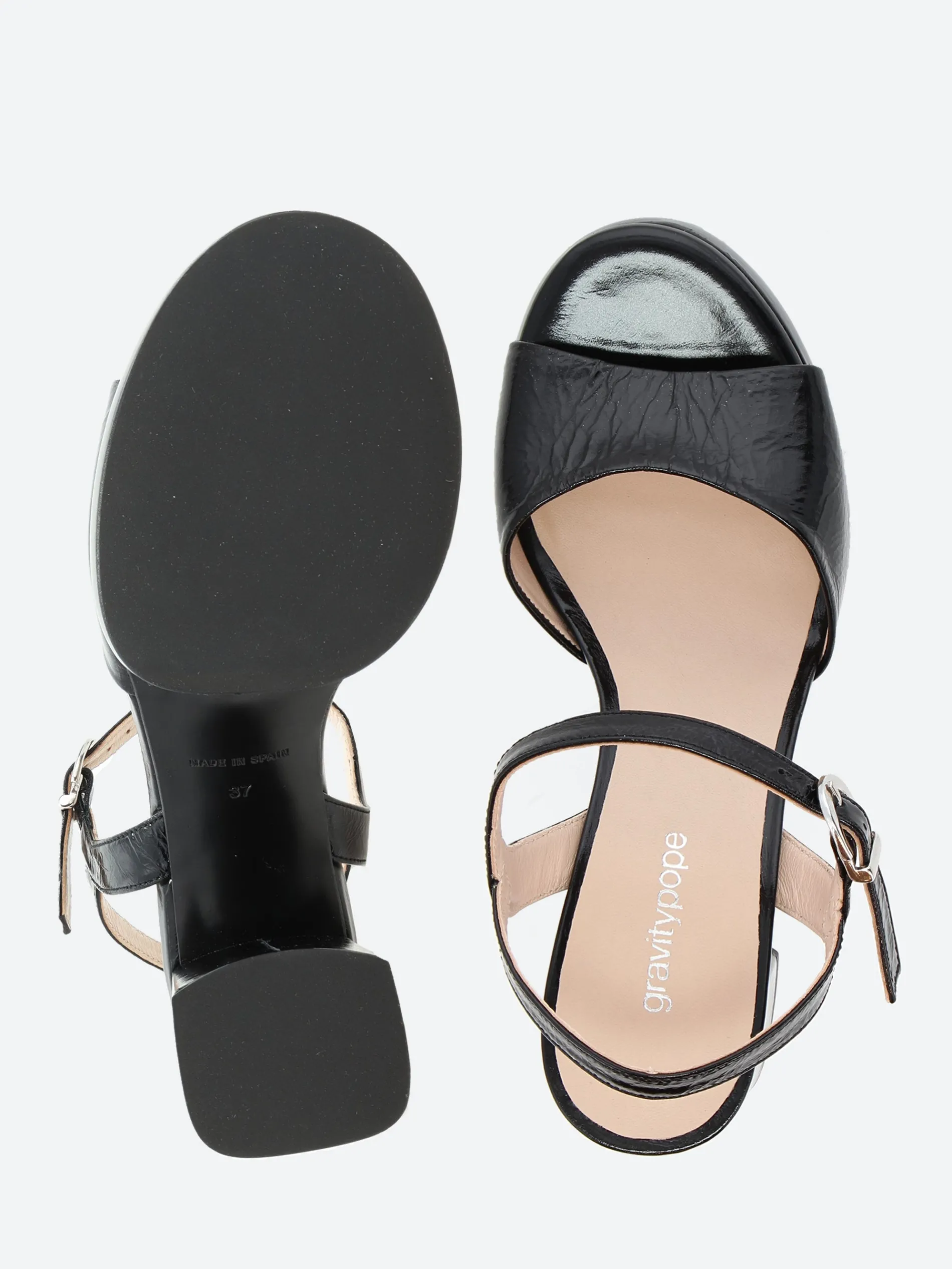 - Adjustable buckle strap at heel