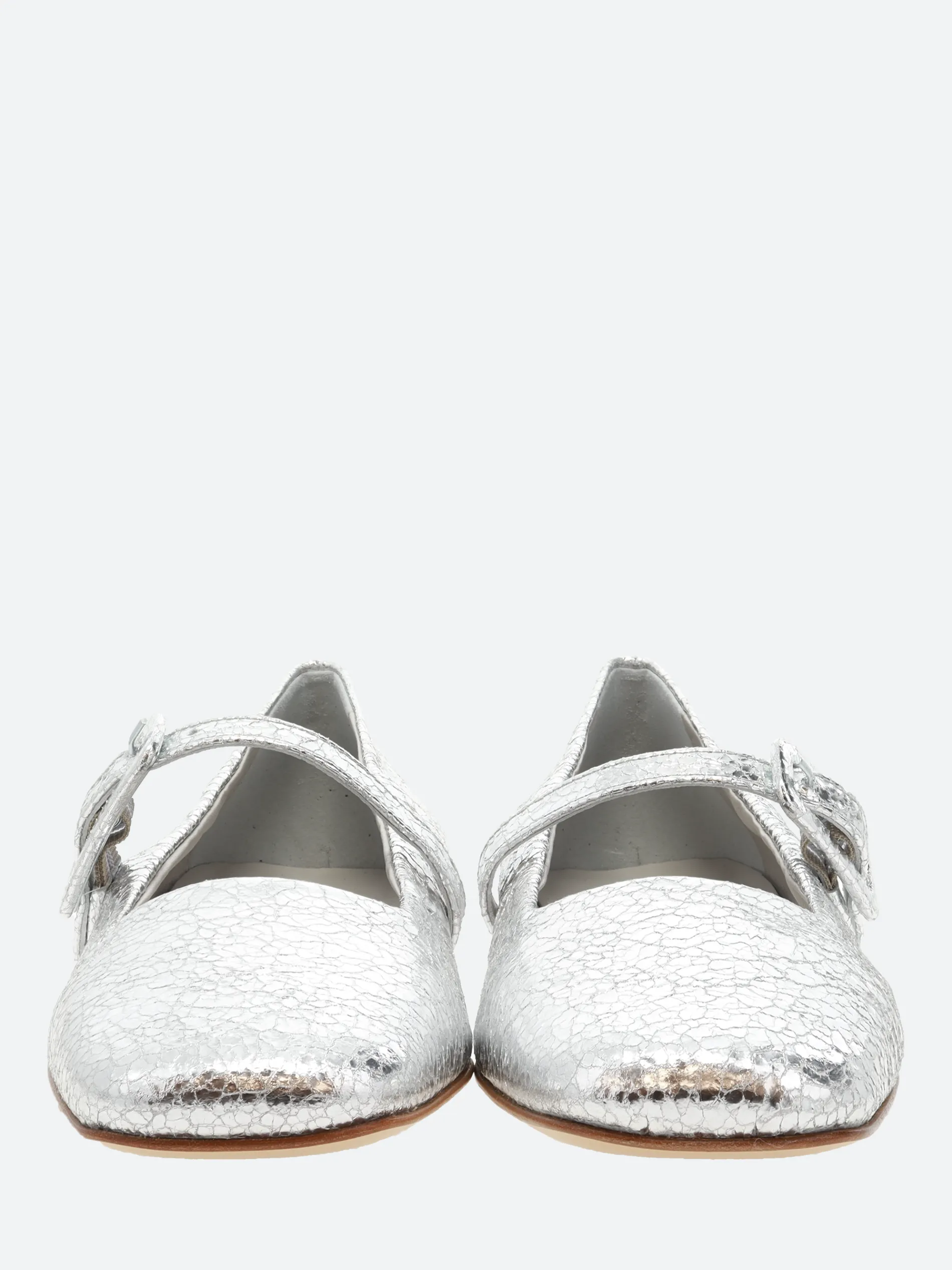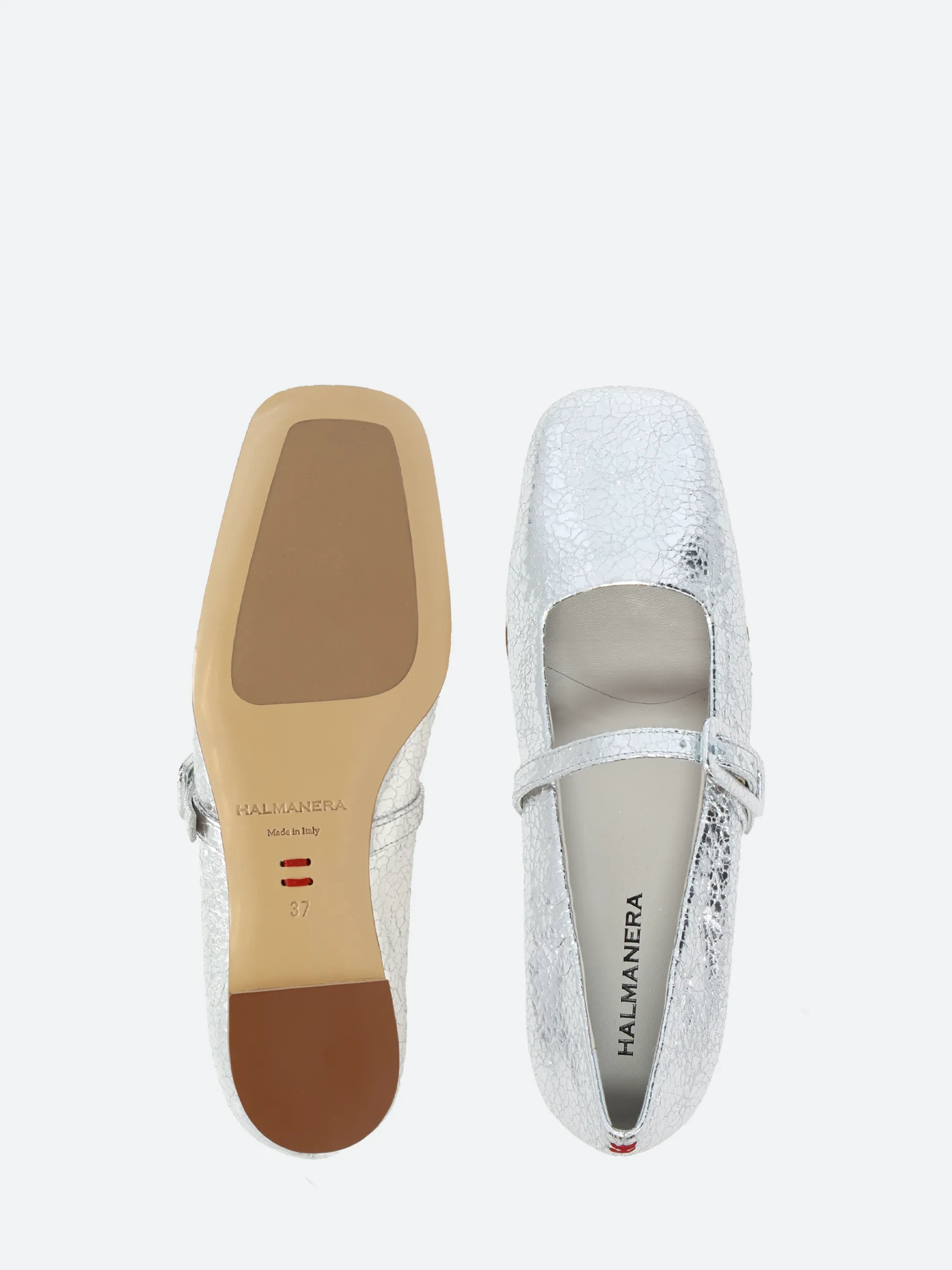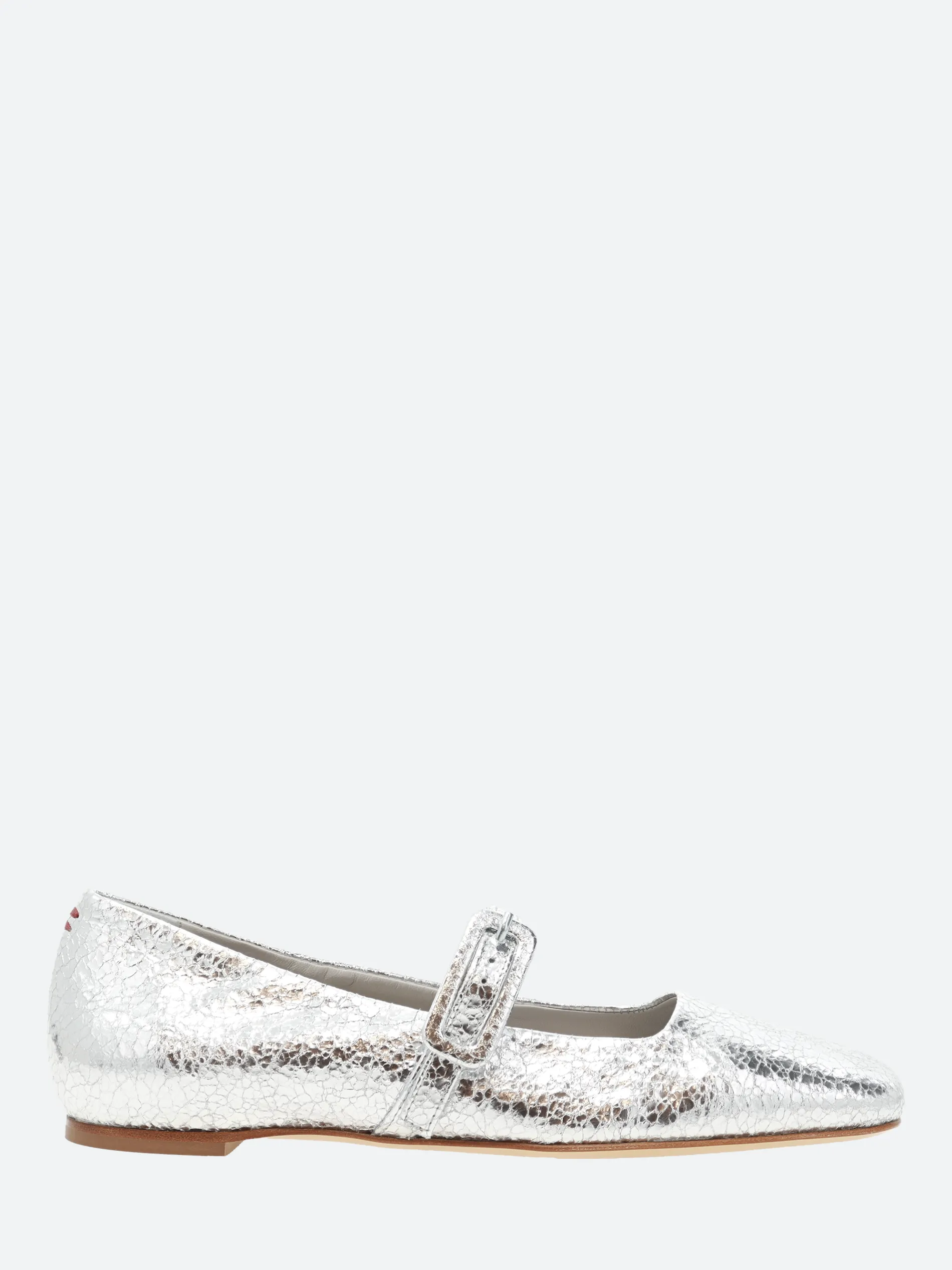 Halmanera Mary Jane ballet flat in a soft, crinkle-finish metallic leather.