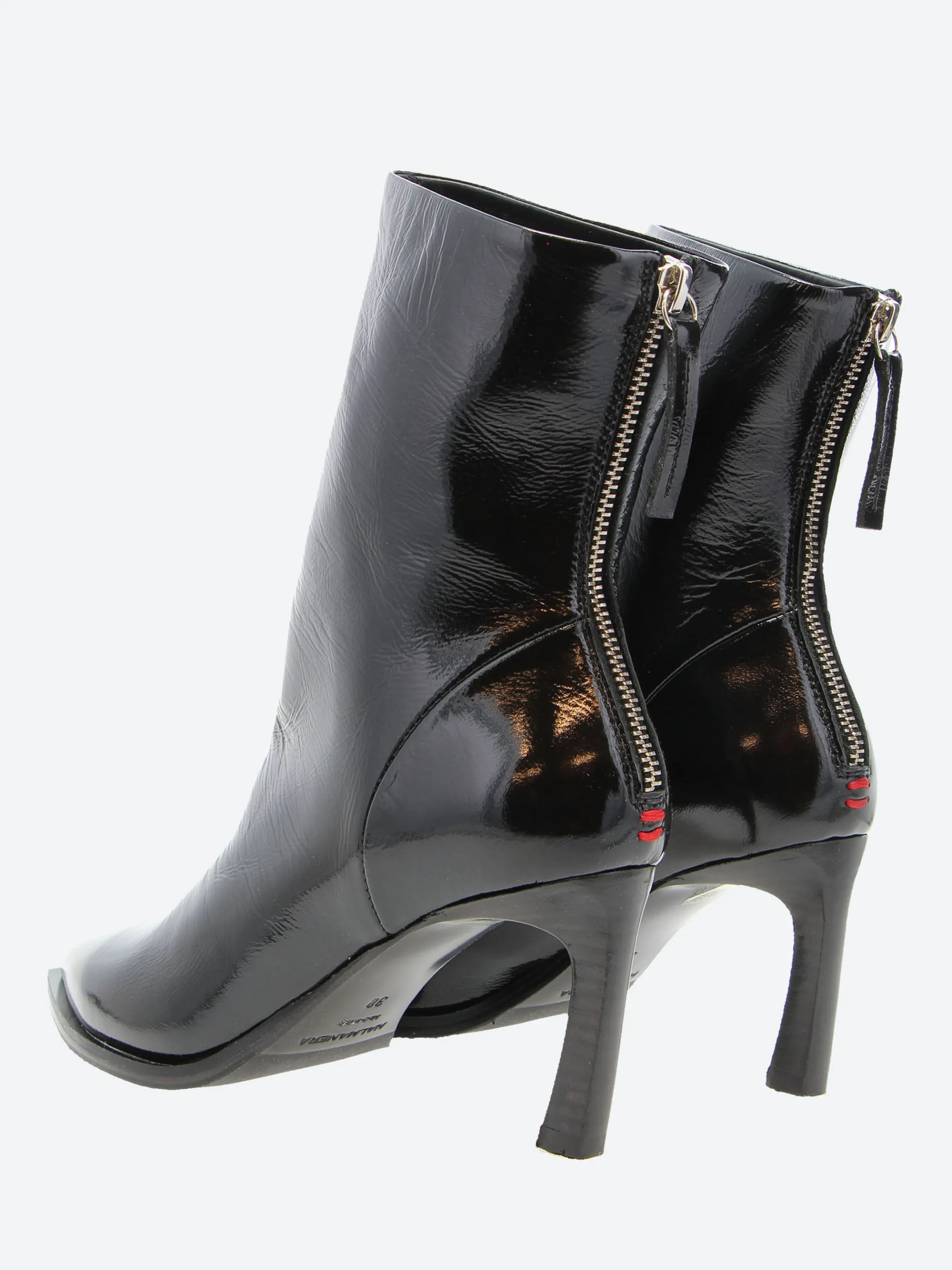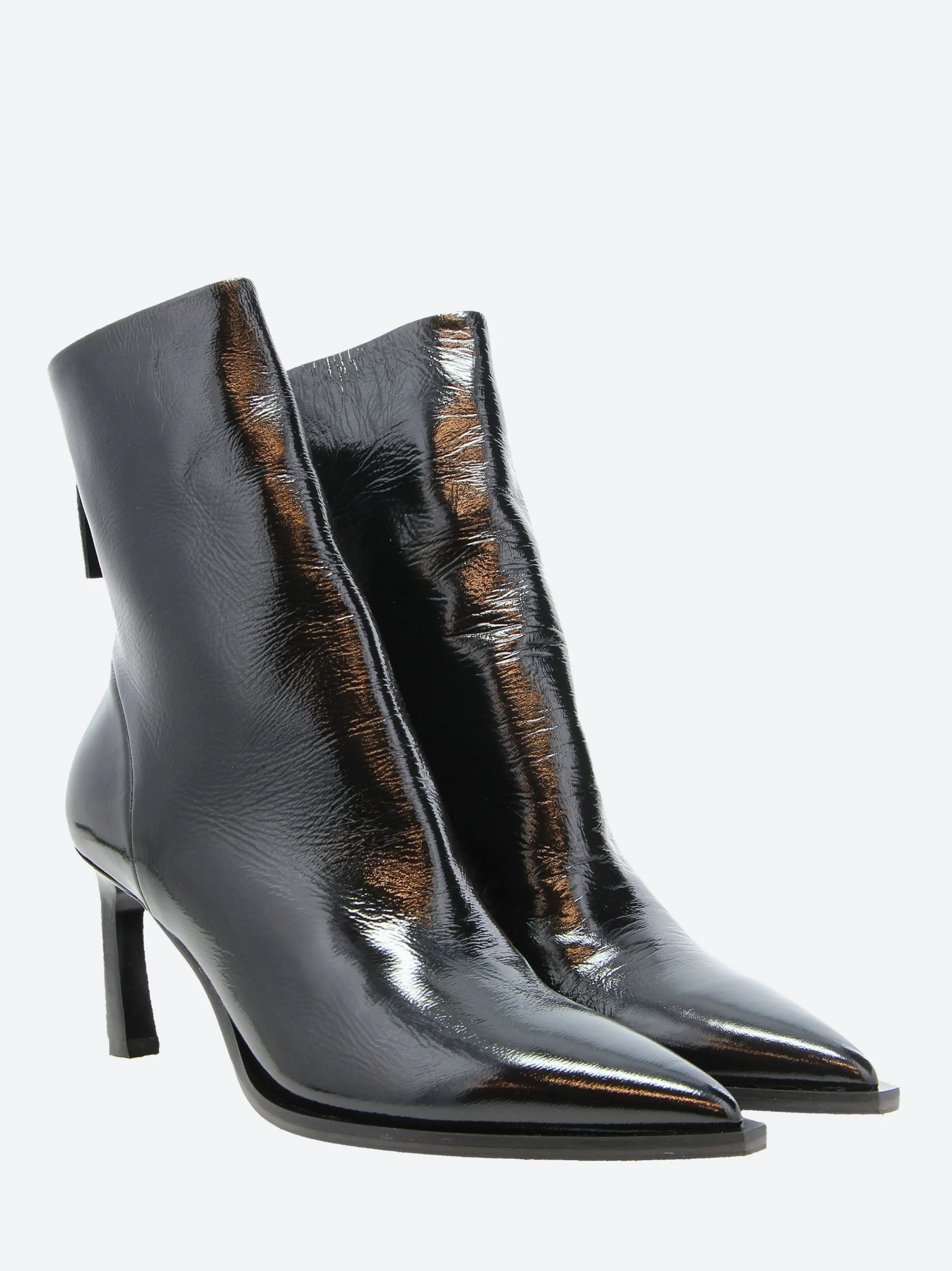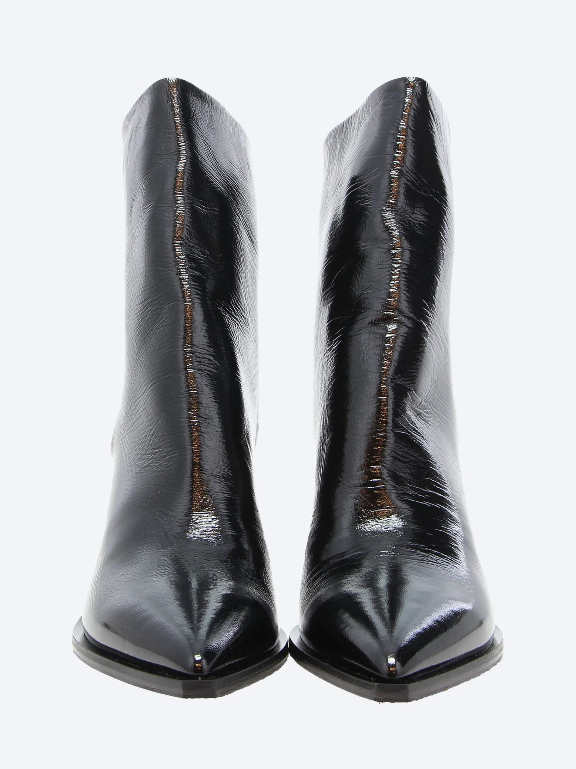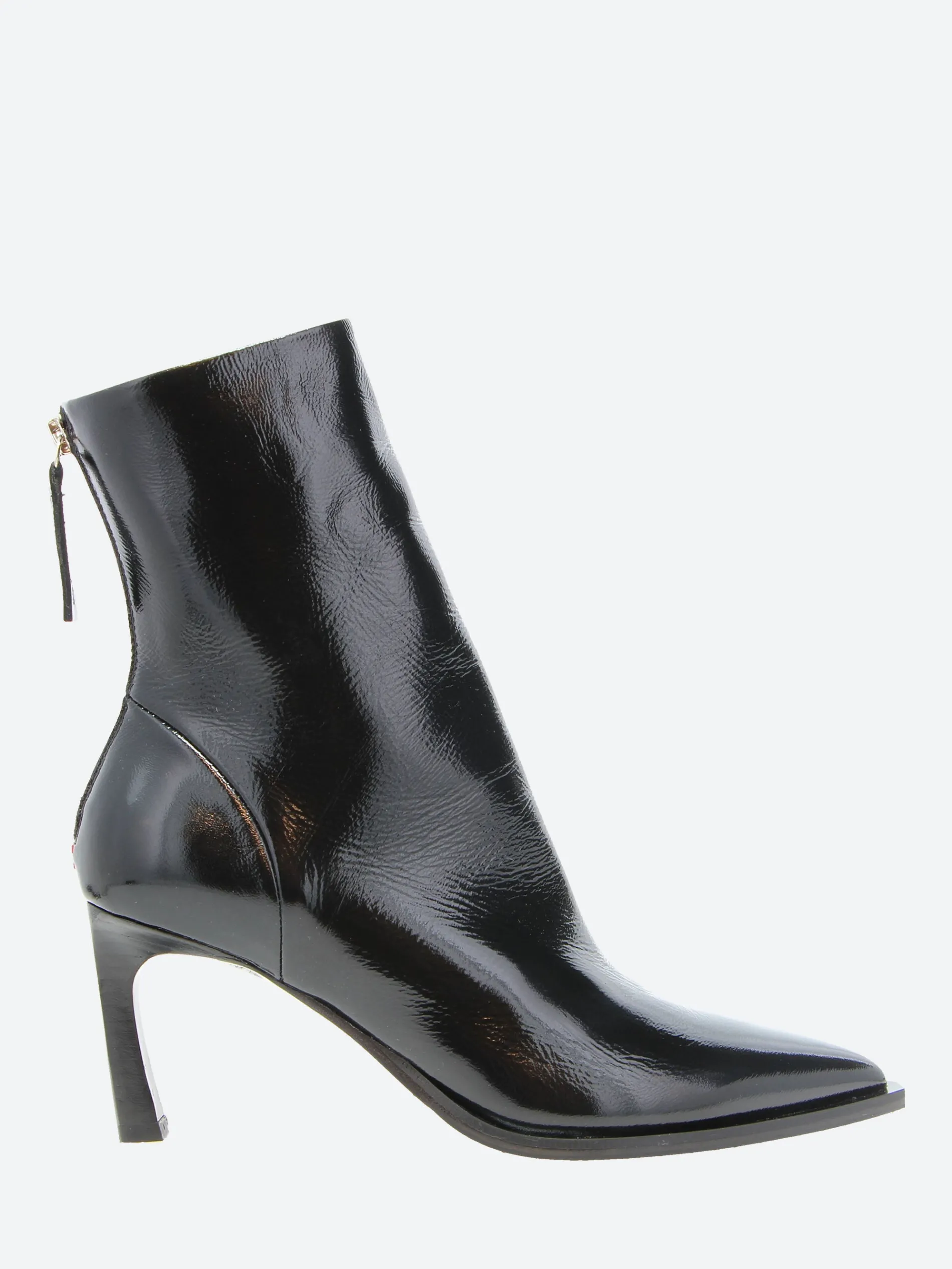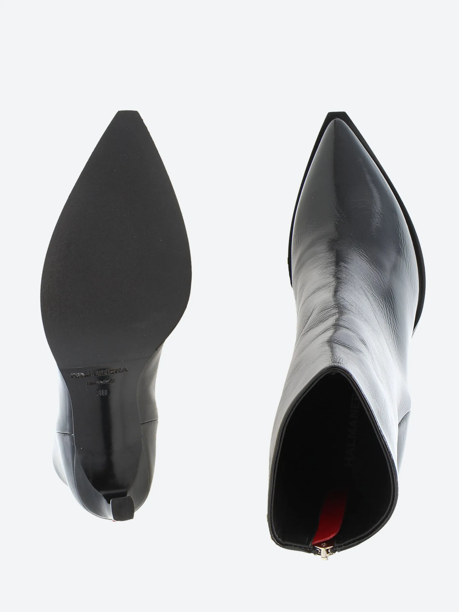 Classic slip-on boot with a high-heel made from sleek leather with pointed toe detailing.