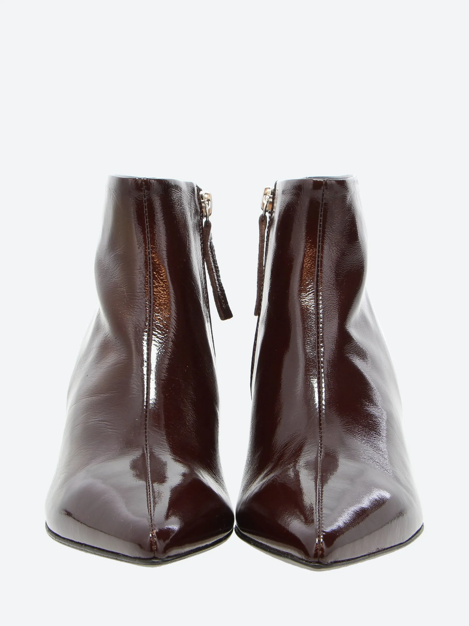 Ankle boots constructed with a paneled upper set on a sculptural kitten heel. Fitted with a side zipper for easy entry.