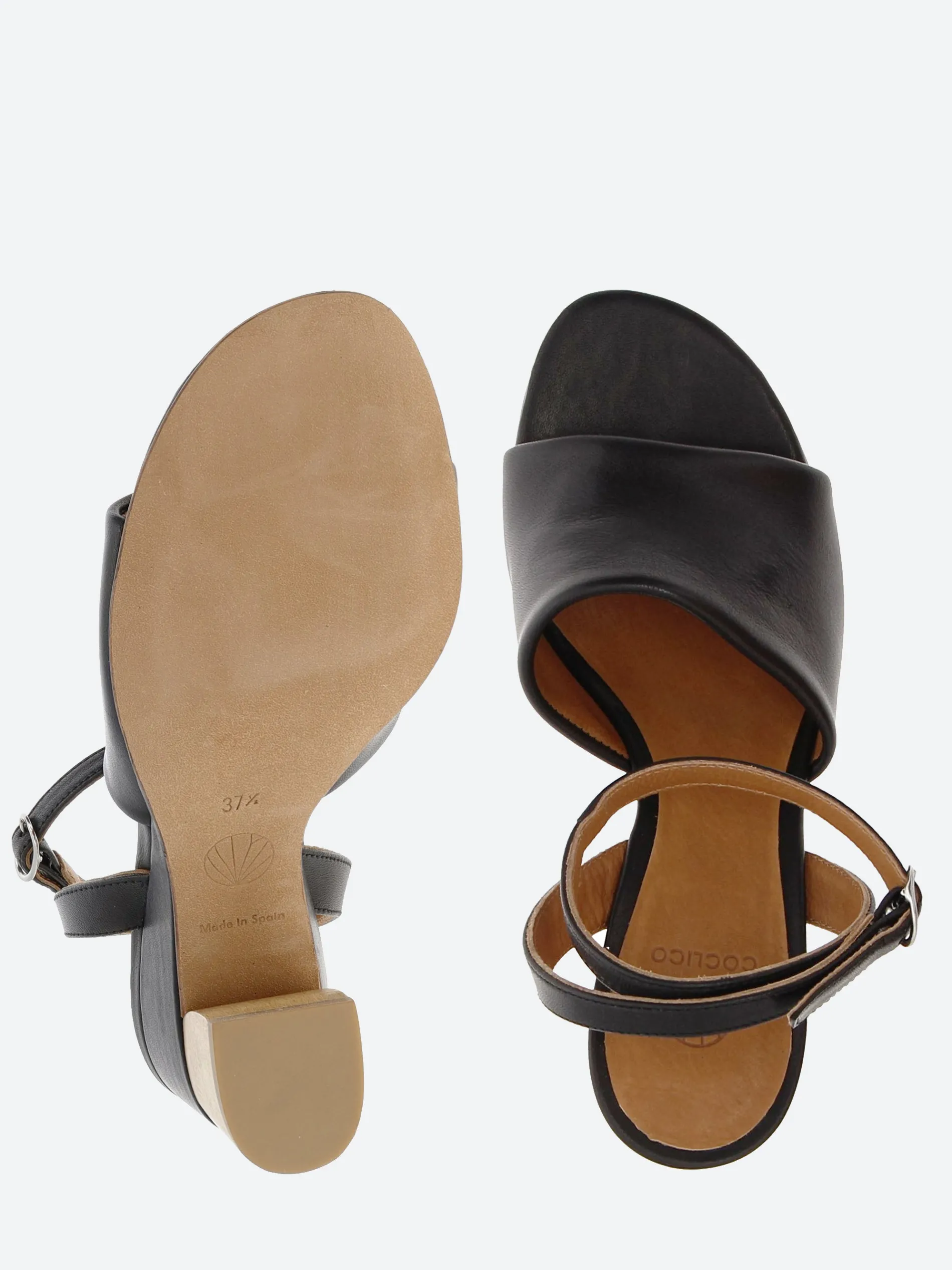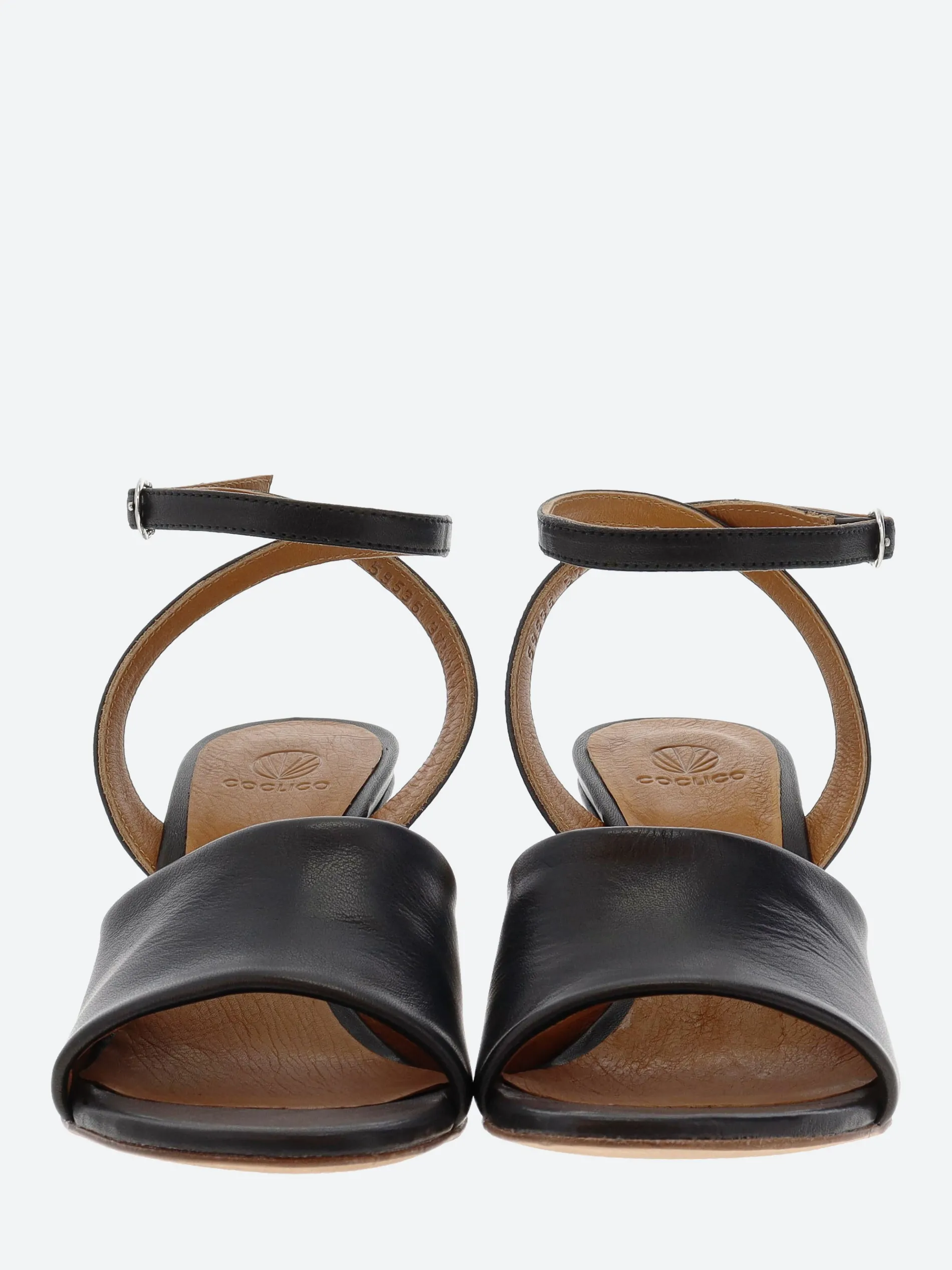 Coclico Iiwi sandal offers generous coverage over the vamp with its wide, supple leather front band. The leather-wrapped demi-wedge insert is capped off by a gently curved walnut wood heel.