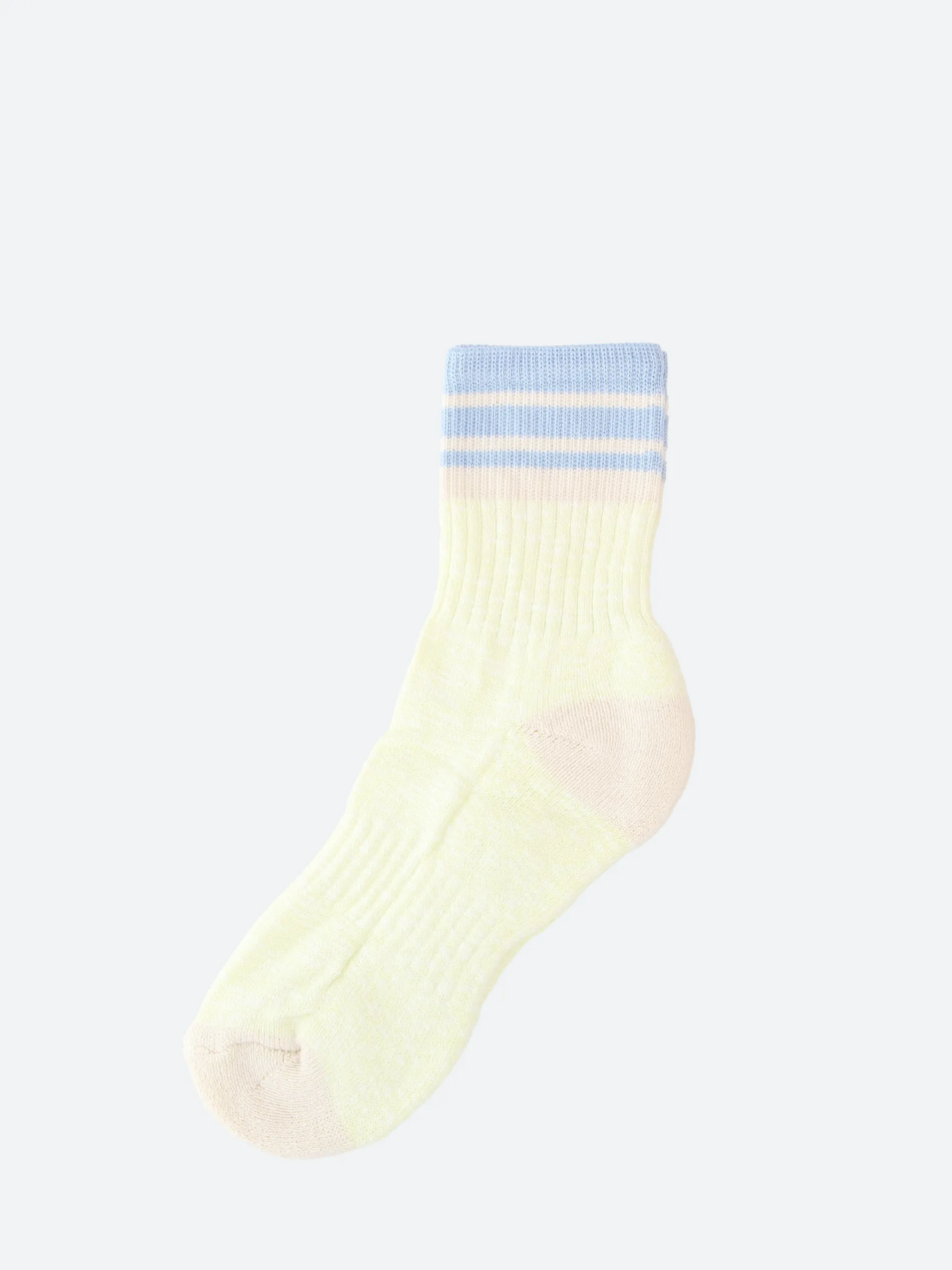 The Embo – named after one of the Scottish Highland coastlines. Made in soft yellow slub yarn with signature vintage cream heel and toe.