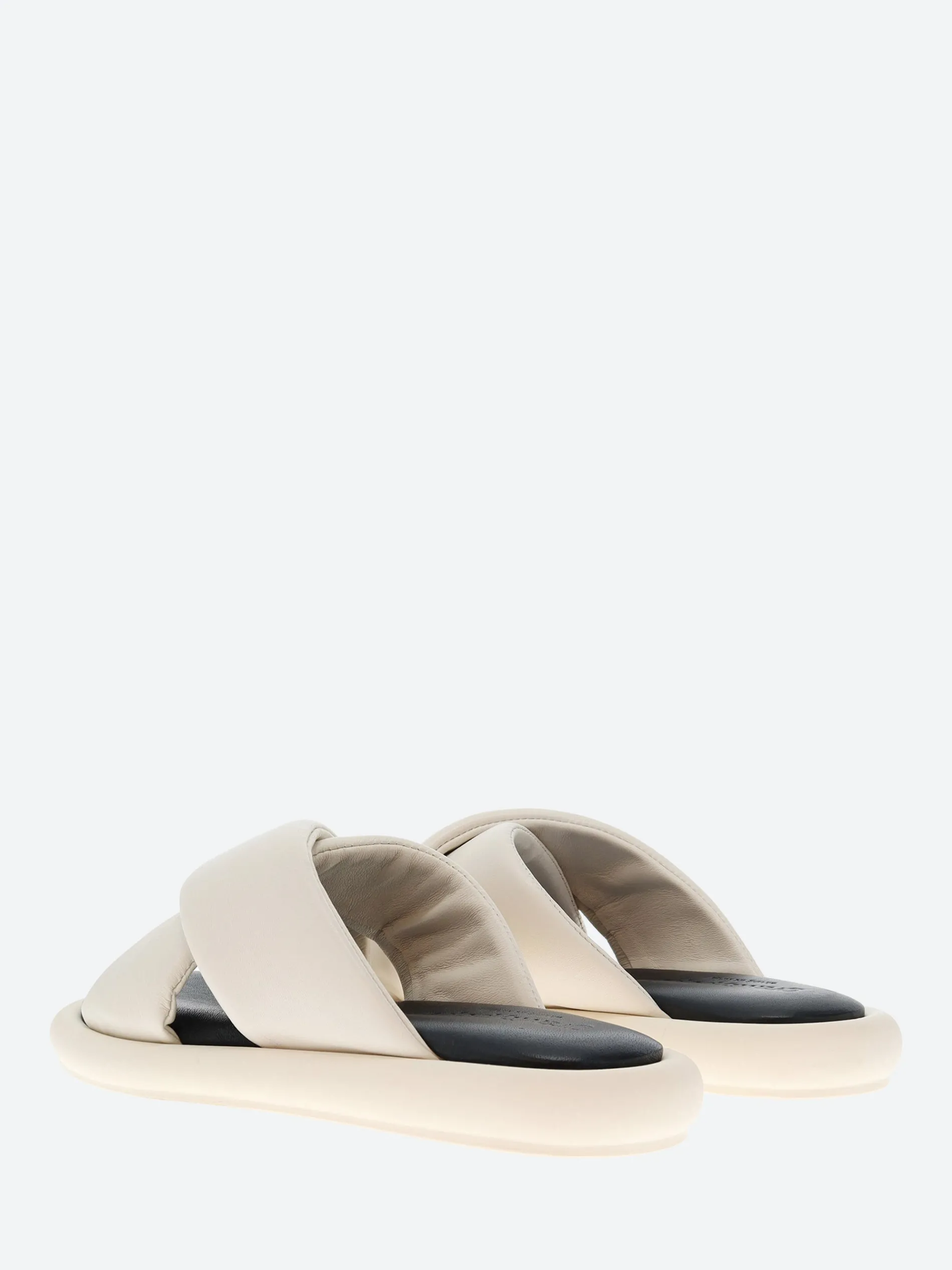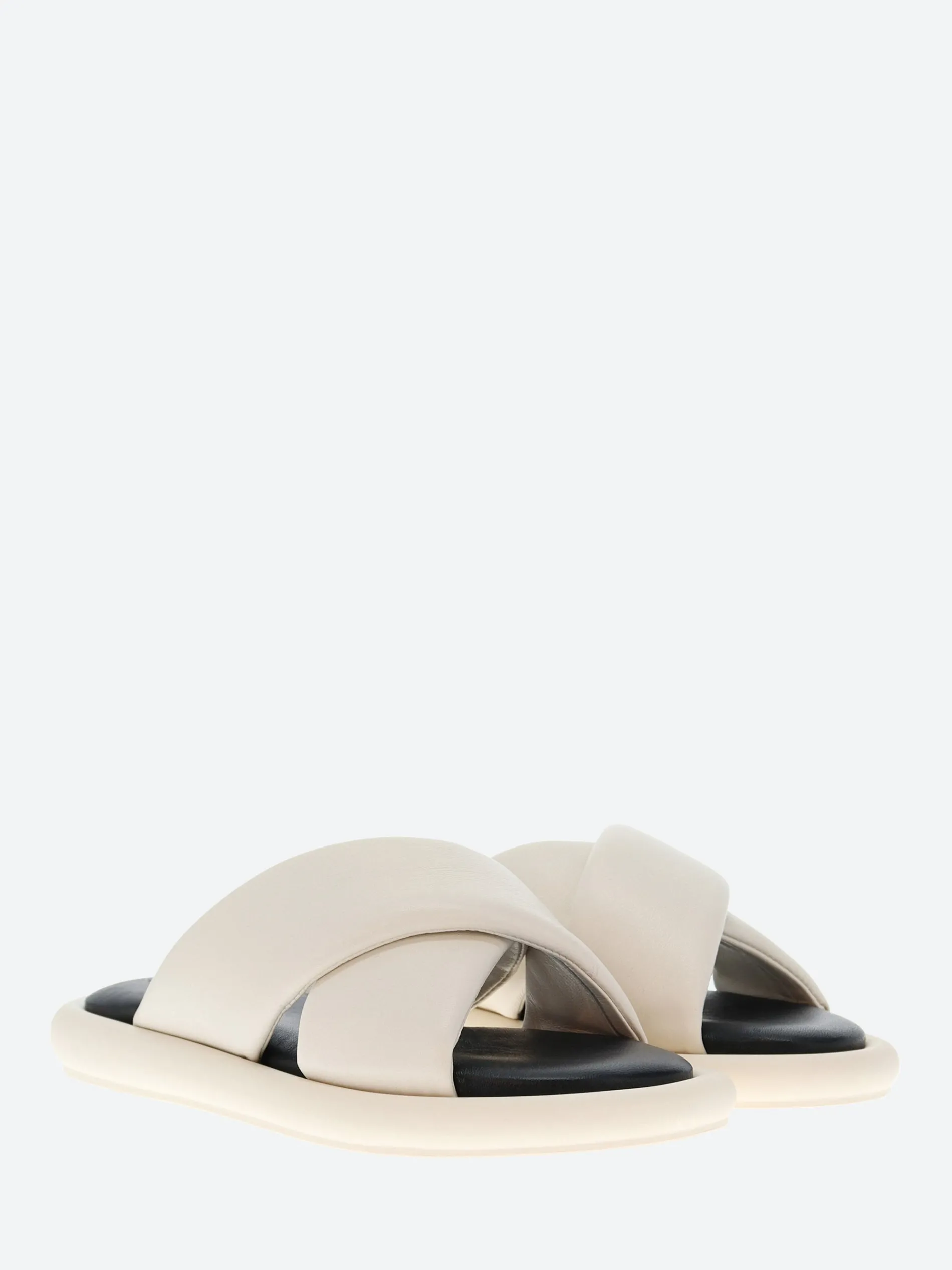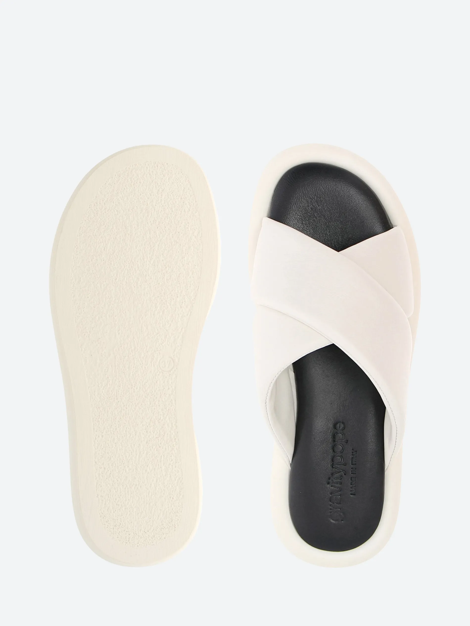 gravitypope wide crisscross straps at the vamp with a cushioned leather footbed for added comfort.