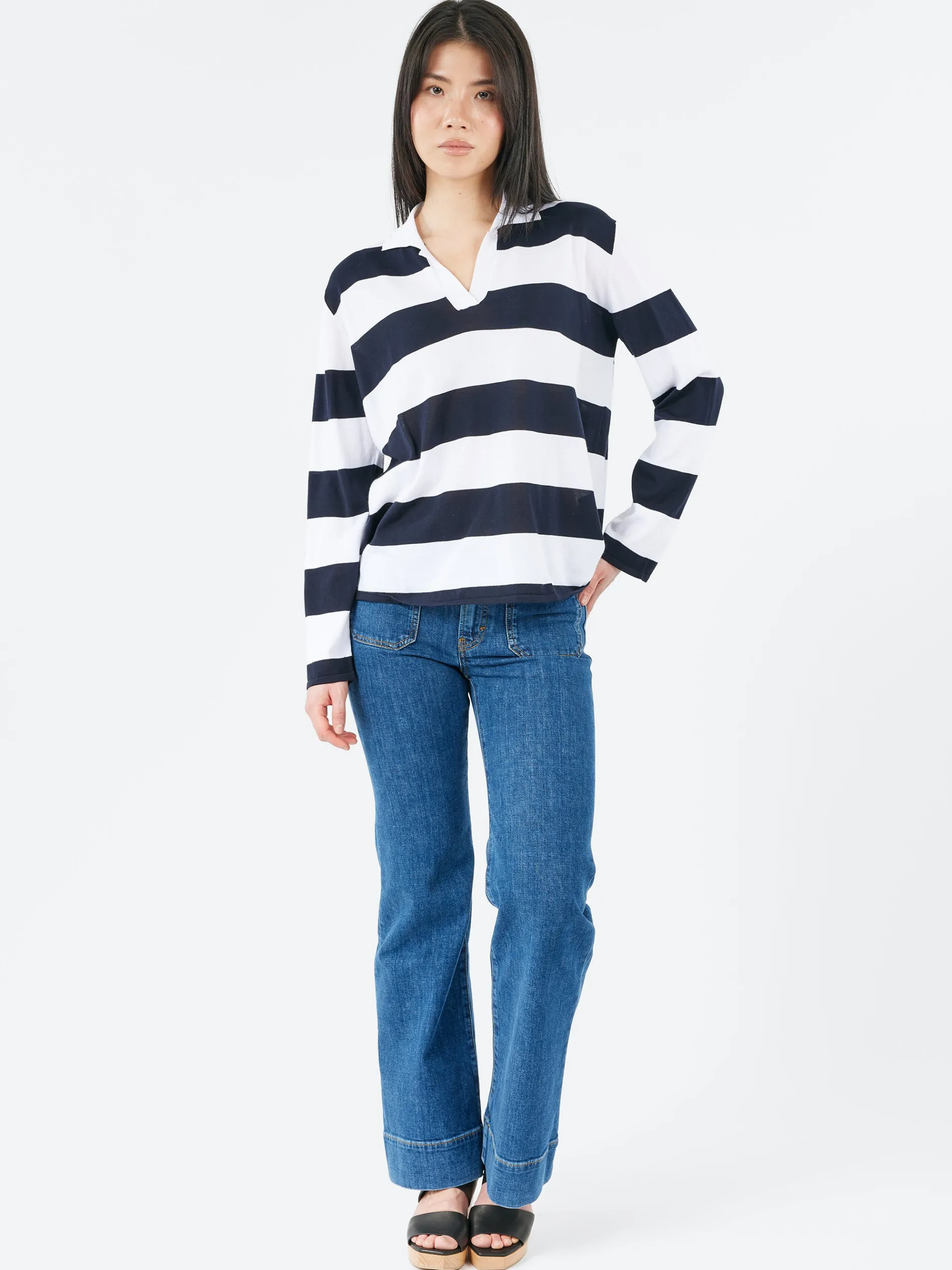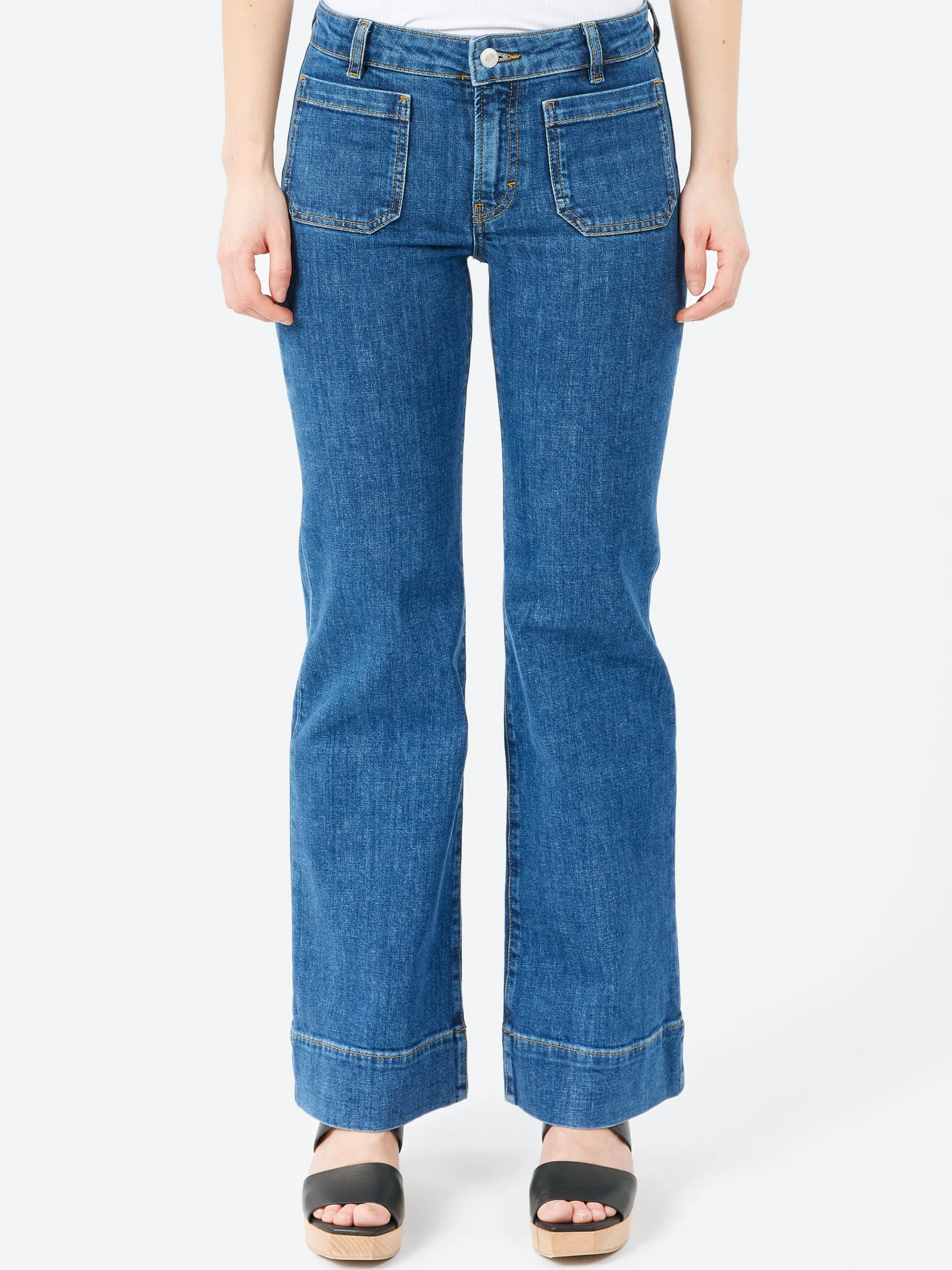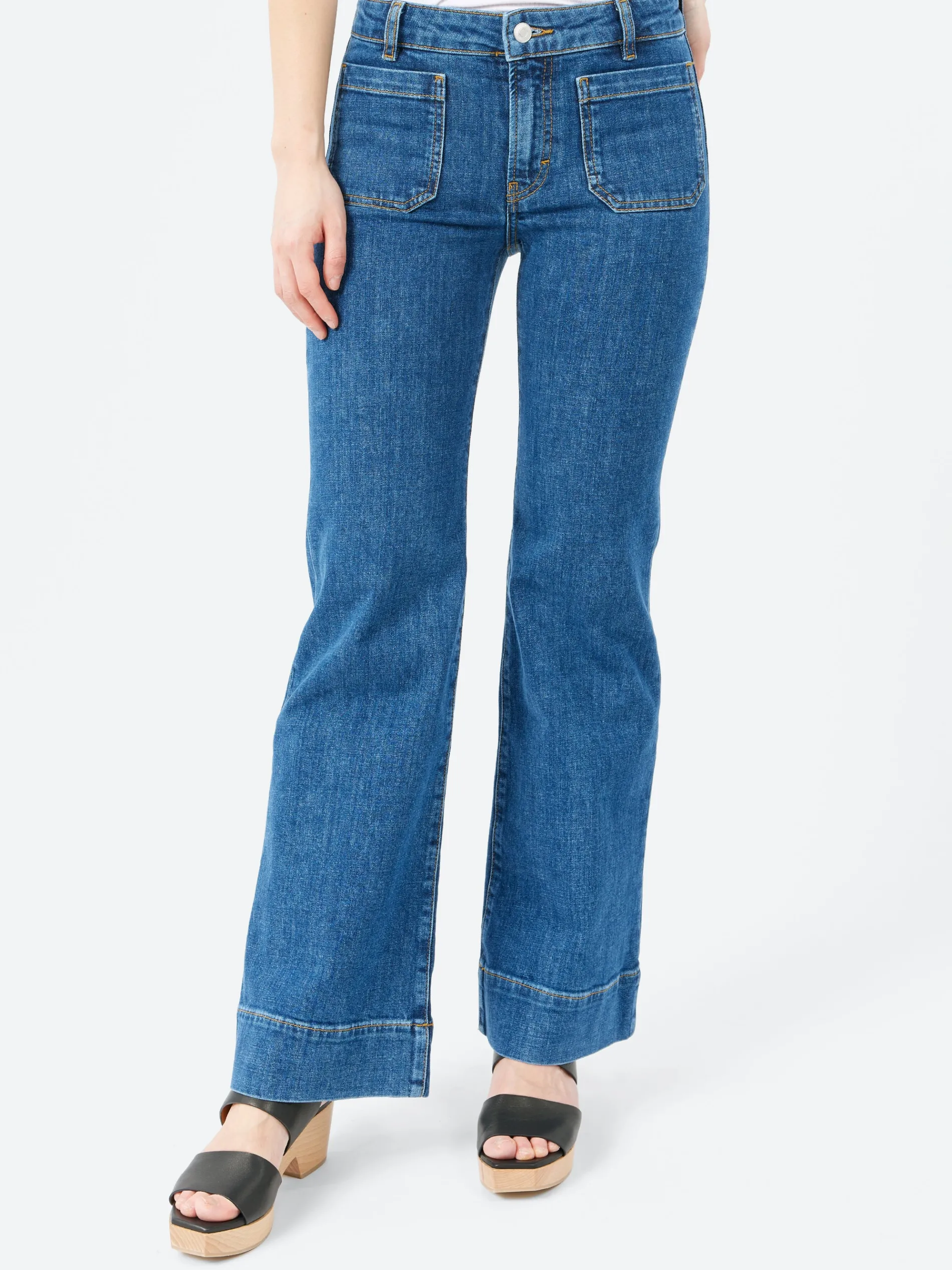 St Monica Low is a low-rise version of Jeanerica’s iconic fit, which look to sailor archives of the late 1960s with its patch pockets, flares and wide hemlines.